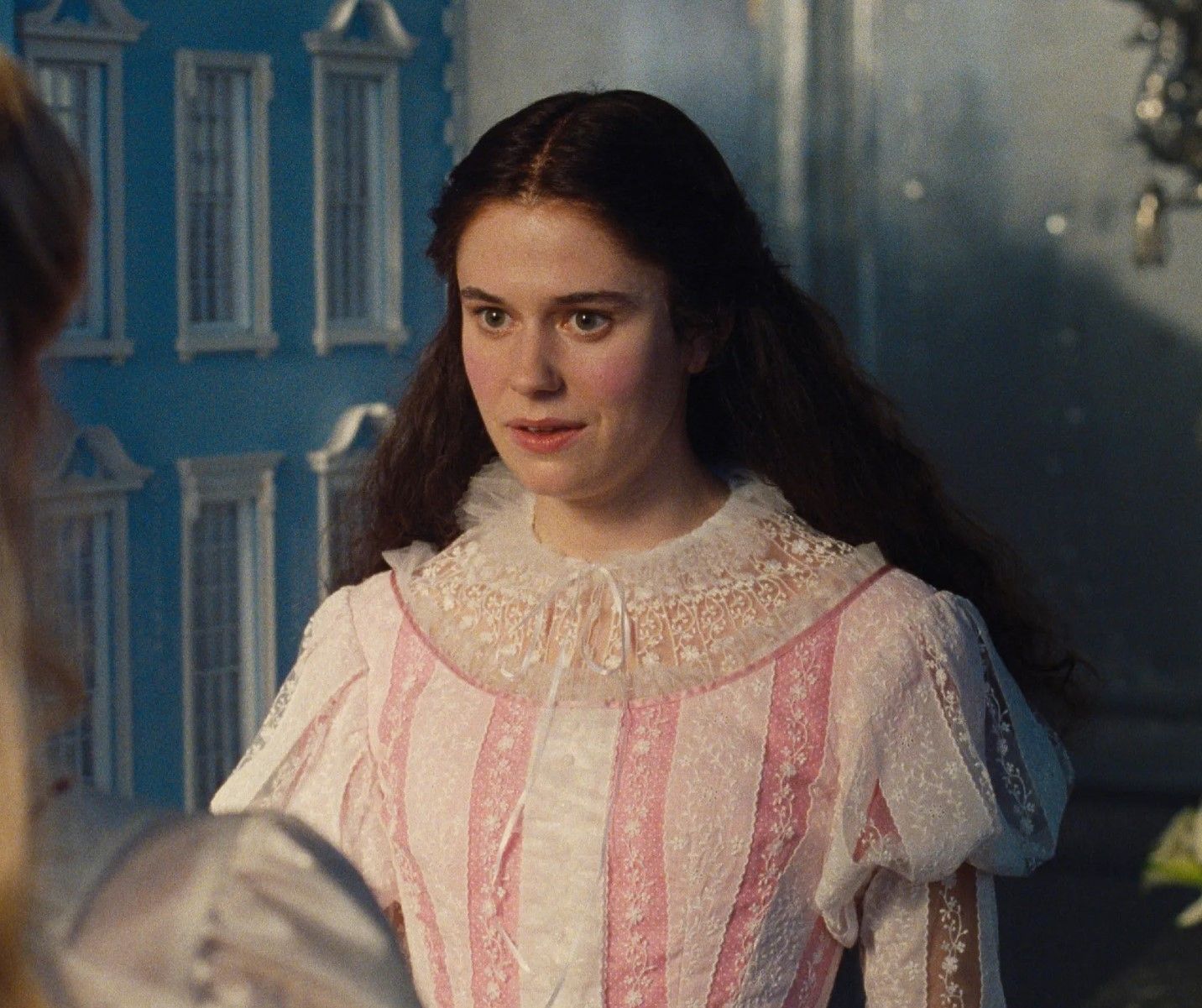 Oltre a Cathy, anche il blush di Isabella ha fatto parlare di sé. Il team make‑up ha scelto un effetto completamente diverso da quello di Margot Robbie: niente stratificazioni complesse o rossore intenso, ma un baby pink delicato, quasi da bambola, innocente e leggermente naïf. Il prodotto scelto per ottenere questo risultato è stato l’Hybrid Blush in Winter Kissed di Kylie Cosmetics.