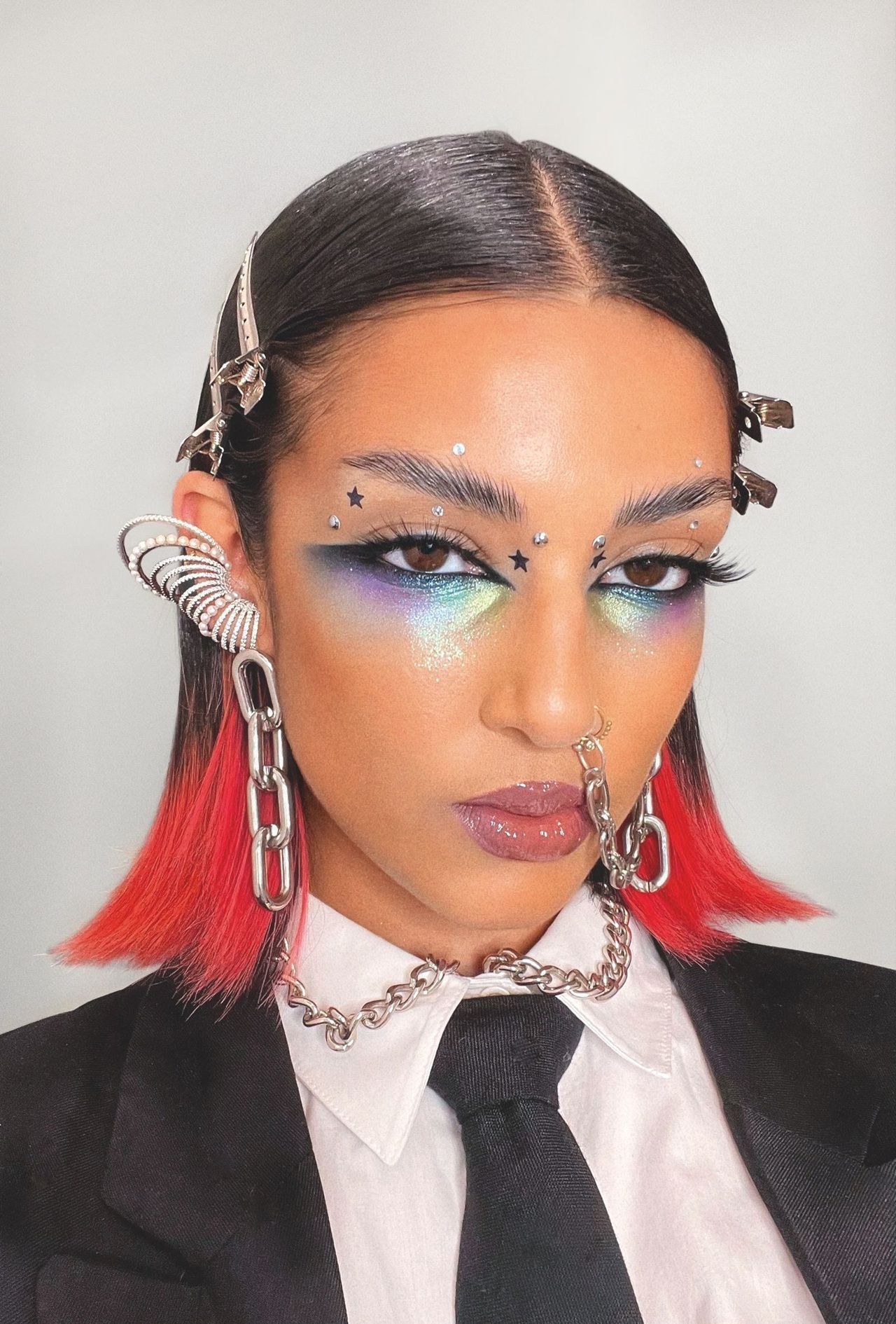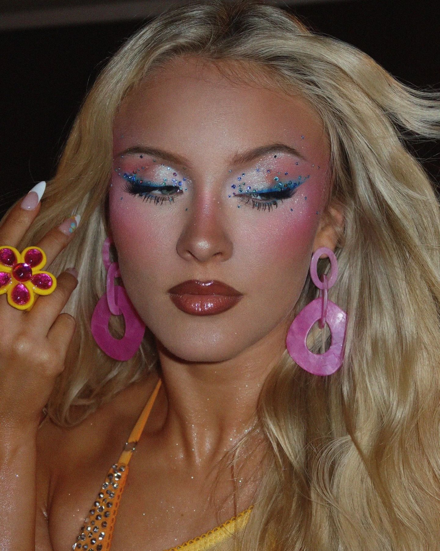 Il make-up da festival è una disciplina autonoma, con regole diverse da tutto il resto. Qui non si tratta di perfezione, ma di resistenza perché ore di caldo, sudore, movimento, anche qualche lacrima emotiva sotto il palco e zero specchi decenti mettono alla prova anche il miglior beauty look. Bisogna costruirne uno che evolva con noi, che regga e, al tempo stesso, rispecchi la nostra estetica. La base ideale abbandona il fondotinta pesante per abbracciare texture leggere, glow e traspiranti. Il toasty make-up è perfetto, con incarnato sunkissed, bronzer cremosi su zigomi e palpebre e blush caldi, visibili ma naturali. Il risultato deve essere fresco, quasi spontaneo, come se il sole avesse fatto tutto il lavoro. Da qui si biforcano le possibilità narrative. Il filone indie sleaze/grunge recupera l’estetica imperfetta degli anni ’90 e dei primi anni 2000, fatta di eyeliner nero leggermente sbavato, mascara waterproof, smokey eyes e incarnato non troppo corretto. È un trucco che accetta il caos, lo incorpora. Più si rovina, più diventa autentico. Per chi ama l’estetica più audace, il festival è il momento perfetto per osare col massimalismo, con glitter, strass, eyeliner grafici, colori neon, tinsel hair. Un principio fondamentale, spesso ignorato, è la selettività. Concentrarsi su un elemento, sugli occhi, sulle labbra o sulle guance, semplifica la gestione durante la giornata. Ritoccare tutto è impossibile. Un consiglio fondamentale? Stratificare. Primer, base, primo spray, trucco occhi, altro spray, cipria mirata e alla fine fissare tutto con spray a prova di apocalisse. Sì, sembra eccessivo, ma è l’unico modo per arrivare viva (esteticamente) al bis. Infine, il trucco più intelligente è quello che dialoga con il contesto. Se sappiamo che passeremo ore sotto il sole, riduciamo le texture pesanti. Se prevediamo pioggia o sudore, privilegiamo formule waterproof. Senza dimenticare il kit di sopravvivenza beauty: lip balm, salviette opacizzanti, deodorante e SPF da riapplicare. Perché nessun glow vale una scottatura.