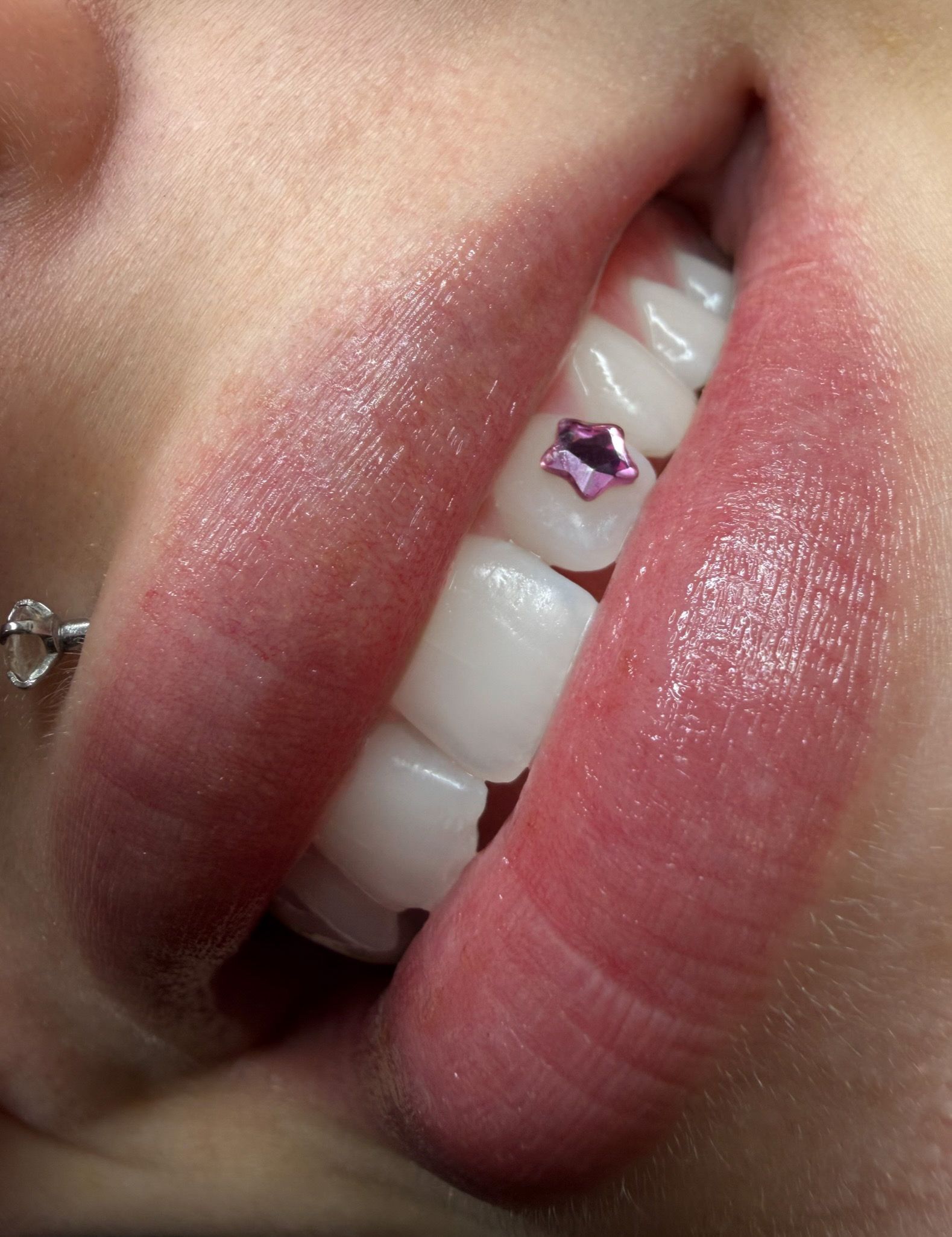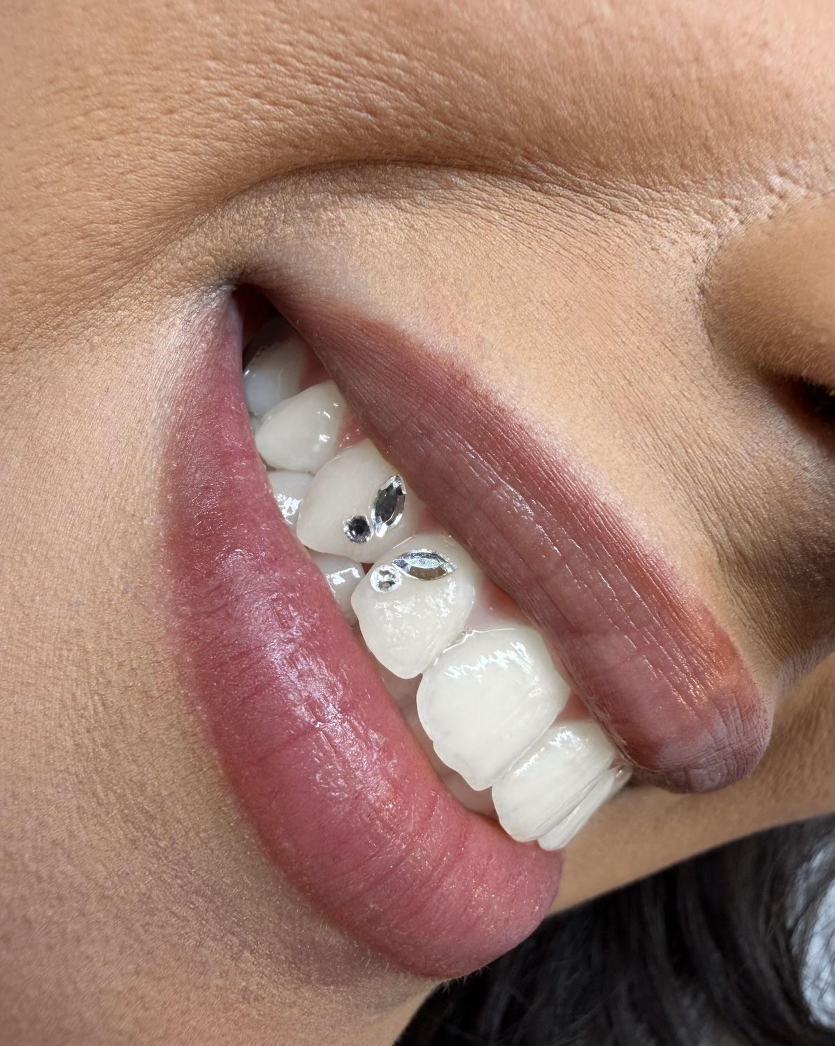 La passione è nata guardando alla cultura hip-hop degli anni ‘90 e 2000, ma volevo elevarla, portandola in un contesto più editoriale e sofisticato. Ho capito che poteva essere il mio lavoro quando ho visto l’emozione dei primi clienti allo specchio. Lì ho compreso che le tooth gems sono un atto di ‘self-care’ decorativo, un modo per riappropriarsi del proprio sorriso.