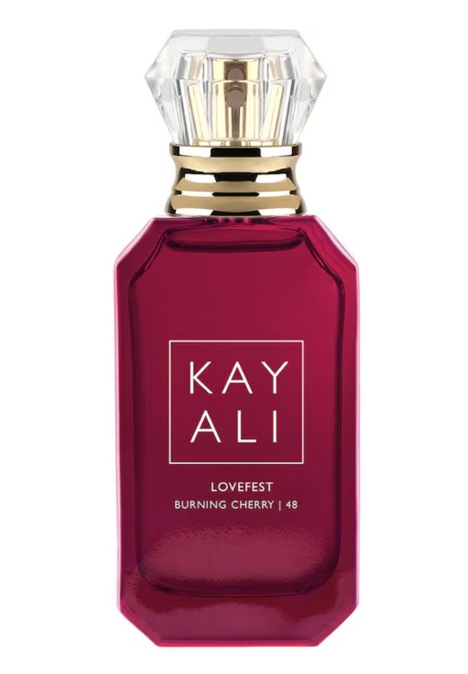Dimentica la ciliegia da caramellina: in Lovefest Burning Cherry 48 di Kayali si fa subito più scura, liquorosa e leggermente bruciata. L’apertura è un mix di ciliegia nera, lampone e bergamotto. Nel cuore entrano rosa di Damasco, gelsomino sambac, eliotropio e un accenno gourmand di pralina, che aggiunge una cremosità in più. Nel fondo troviamo palo santo, legno di guaiaco e patchouli che danno una sfumatura legnosa, mentre fava tonka, balsamo del Perù, vetiver e ambertolide una scia più calda e ambrata.