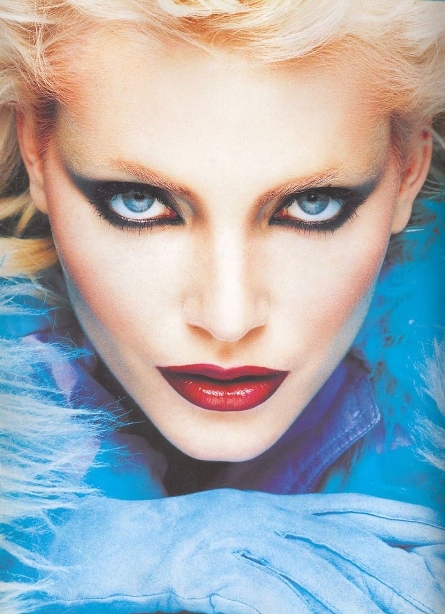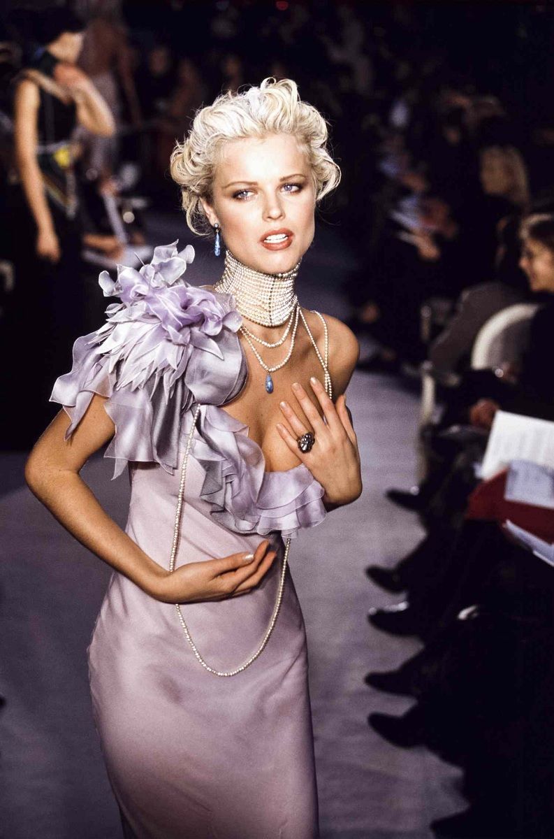 Nadja Auermann entra nella storia della moda per le lunghissime gambe (112 cm dal femore al tallone) e per gli indimenticabili servizi fotografici realizzati da Helmut Newton, di cui è musa, nei quali compare sensualmente disordinata, vittima di un omicidio o disabile. Berlinese pura, nata nella capitale tedesca il 17 marzo del 1971, da due impiegati bancari, viene notata da un talent scout in una birreria dove lavora come cameriera e a 19 anni si trasferirsi a Parigi per diventare modella. 180 cm di altezza, bionda, magrissima, con due occhi da gatta e la pelle diafana arriva mentre l’estetica grunge sta scemando, pronta ad incarnare una femminilità sexy, glamour, algida che ricorda Marlene Dietrich, Jean Harlow e le misteriose dive degli anni d’oro di Hollywood. Lavora per Chanel, Christian Dior, Dolce & Gabbana, Valentino, Prada, Armani, Versace, George Michael la vuole nel videoclip della canzone Too Funky, nel 1994 è fra le prime 50 donne più belle del mondo della classifica di People e fra le prime dieci della classifica del Time, per lo show di Louis Vuitton nel 2008 è una delle inquietanti infermiere ispirate ai quadri di Richard Prince. Così commenta la sua versatilità:
