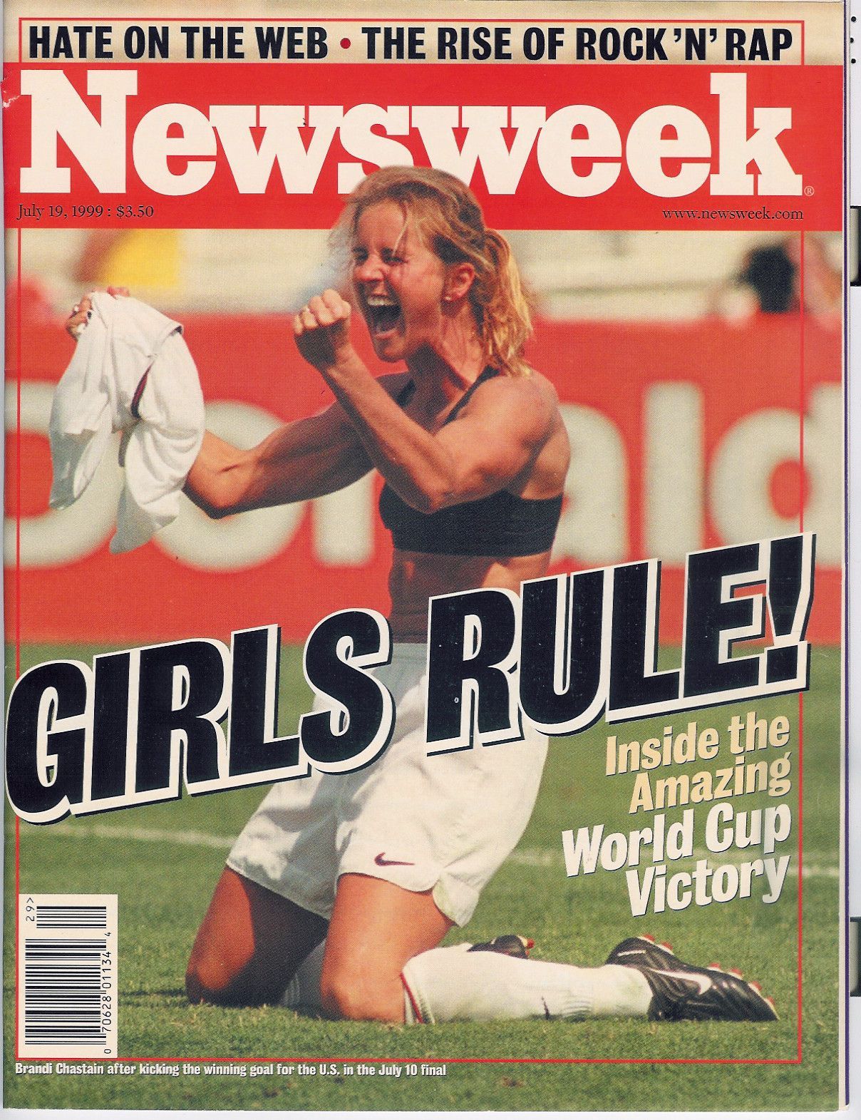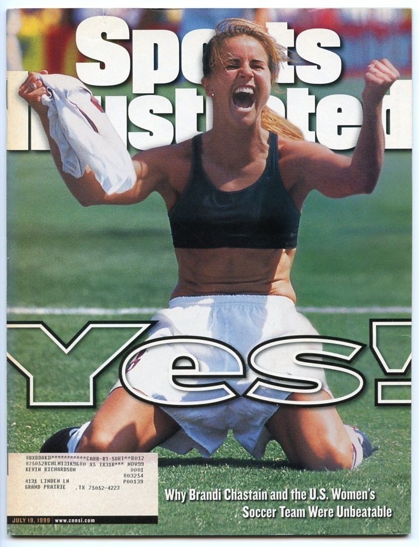 L’immagine di Brandi Chastain inginocchiata a terra senza maglietta entra immediatamente nell’immaginario collettivo, quello che è stato il momento più bello della sua vita su un campo da calcio, secondo le sue stesse parole, conquista la cover di magazine come Newsweek, Sports Illustrated e Time Magazine, corredati da titoli come Girls Rule!, Yes!, What a Kick!.