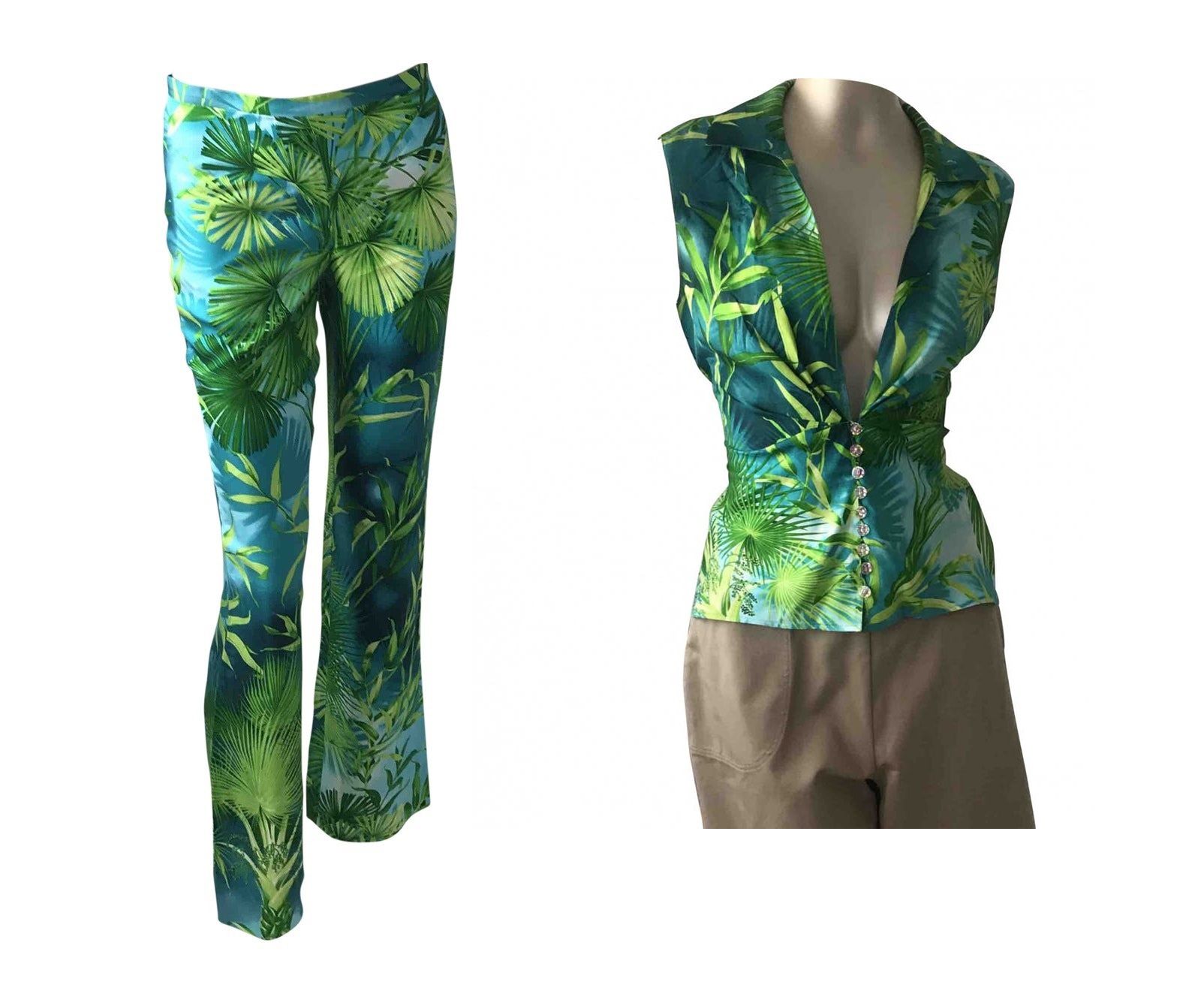 Se anche voi sognate di sfoggiare uno di quei bellissimi capi originali caratterizzati dall’ormai famosissima stampa verde smeraldo, ora finalmente sapete dove trovarli. Vestiaire Collective, piattaforma leader nella rivendita globale di articoli di lusso, ha da poco reso disponibili alcuni capi caratterizzati dalla stessa leggendaria Jungle Print: ci sono pantaloni dalla linea skinny, un top senza maniche e un abito midi dalla profonda scollatura e una cintura in stoffa in vita che ricorda molto quello di JLo ai Grammy Awards del 2000. Tutti gli articoli sono in seta e in ottime condizioni.