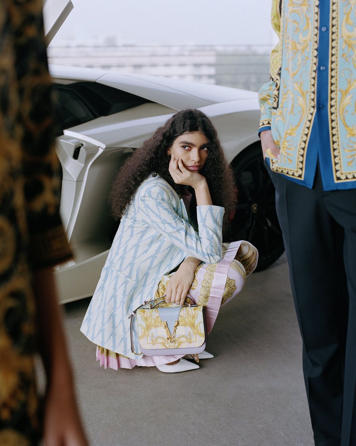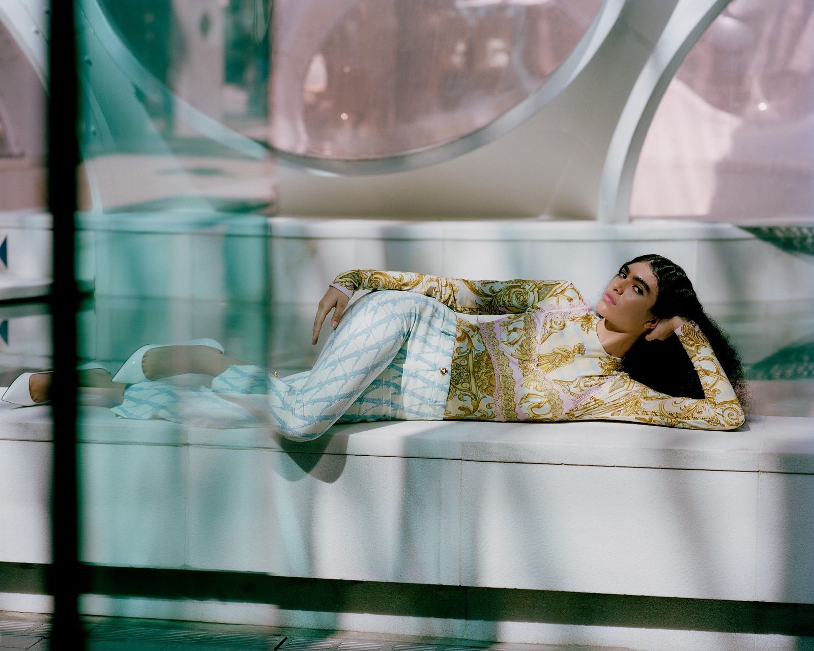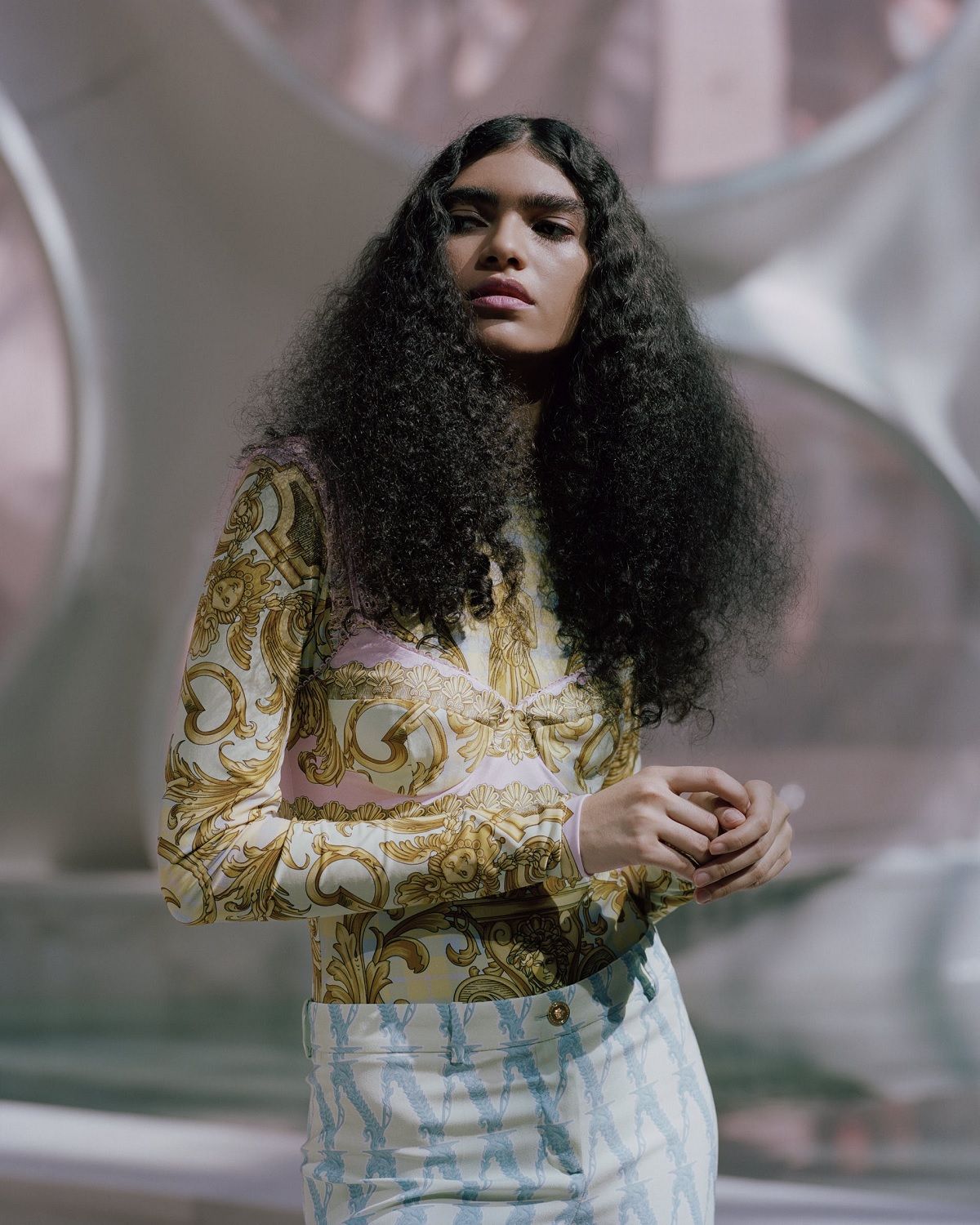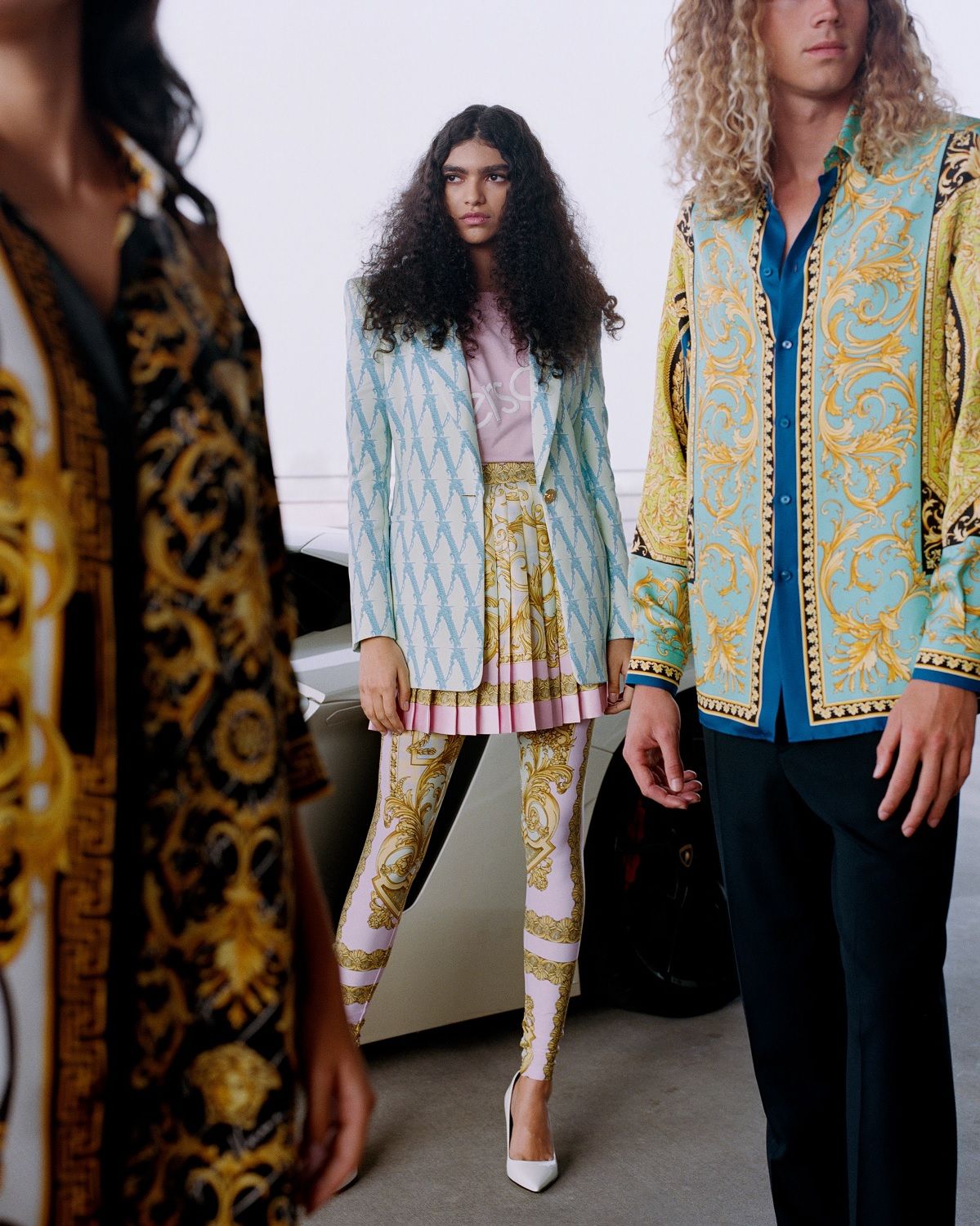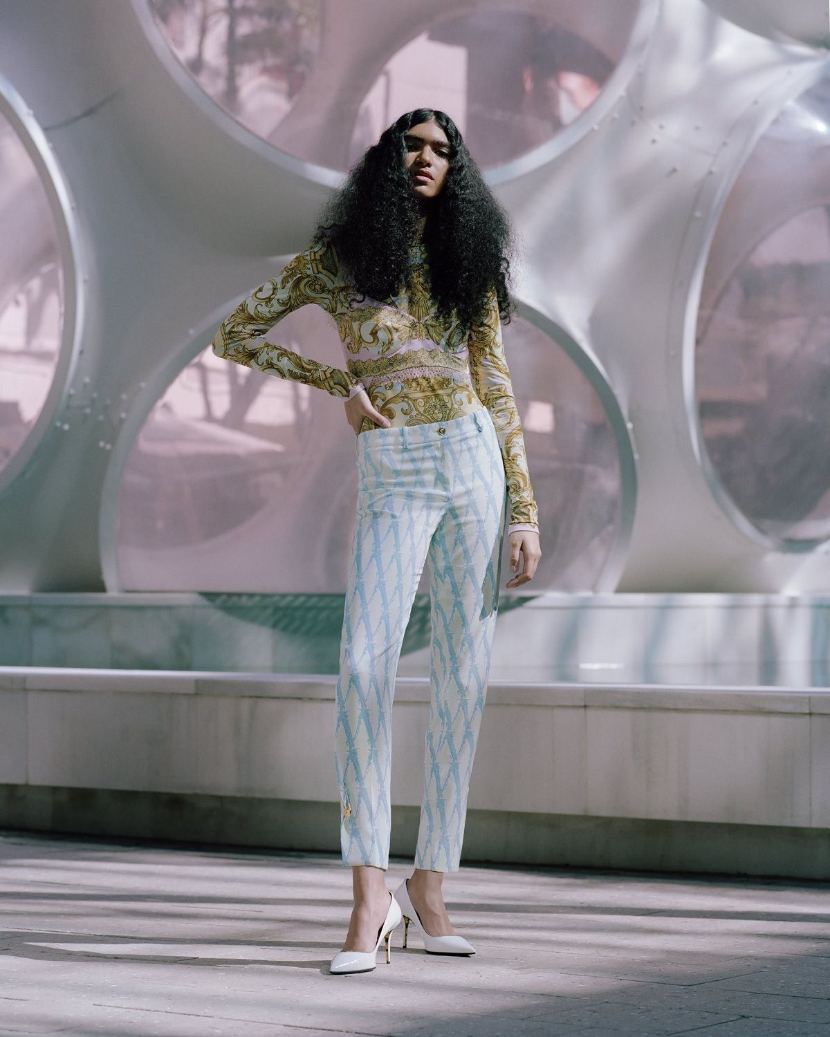 Volevo creare qualcosa per Mytheresa che fosse allo stesso tempo iconico e apparisse nuovo, fresco, interessante, racconta Donatella Versace. I codici Versace sono tutti presenti: le silhouette inconfondibili, la stampa all over e il nuovo Barocco V, insieme alla nostra anima rock ‘n’ roll. L'idea era quella di creare una capsule collection che avesse, allo stesso tempo, un tocco di heritage ma sempre un 'now-feeling', se capite cosa intendo. La stampa, ad esempio, è presa dall'archivio, ma le silhouette sono quelle che usiamo oggi.