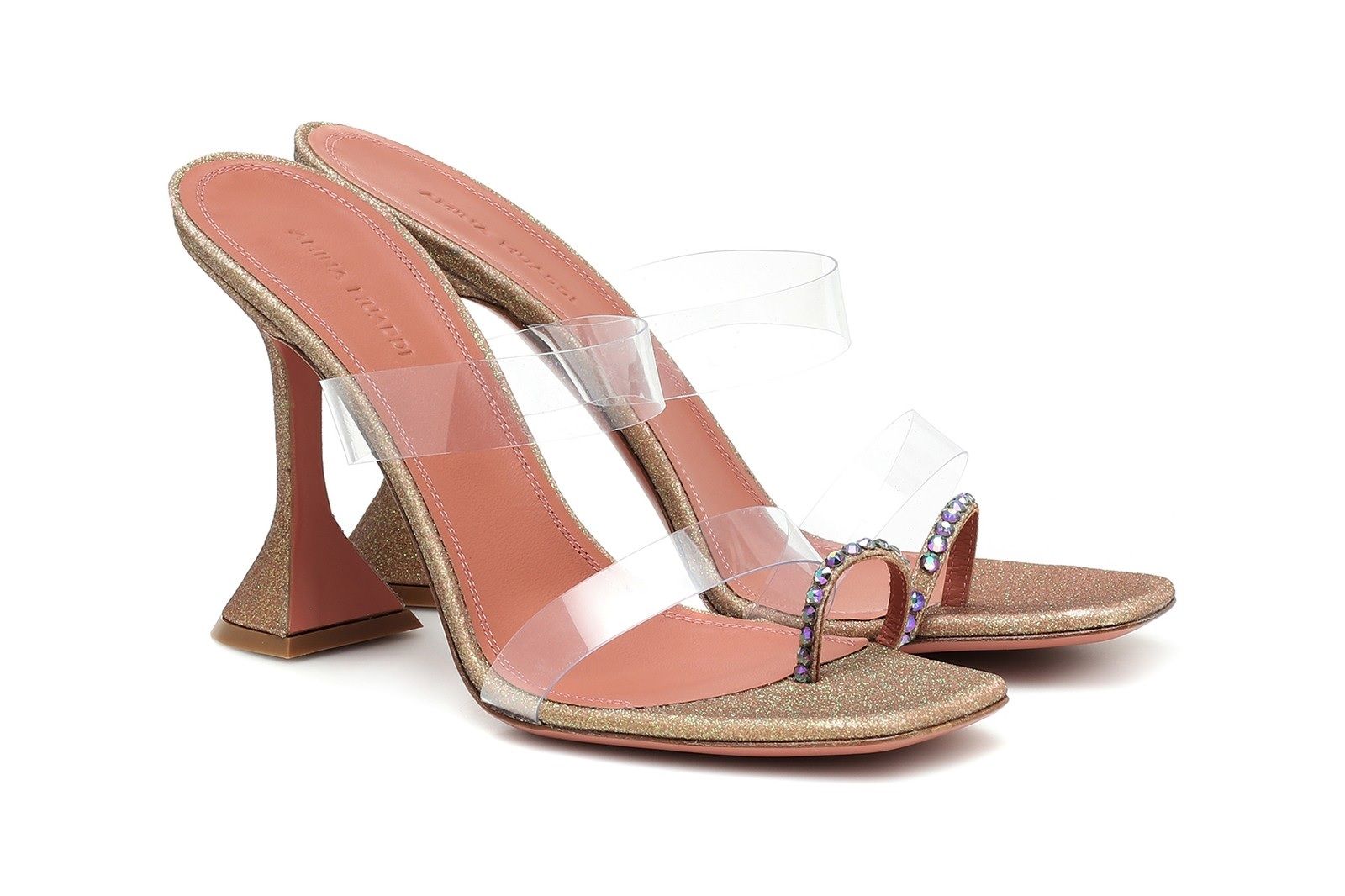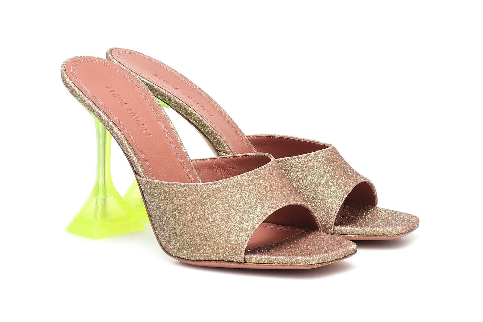 Amina Muaddi, shoe designer di Fenty e del suo omonimo brand, amatissima da celebrities come Kendall e Kylie Jenner o le sorelle Hadid, ha unito le forze con Mytheresa per una capsule esclusiva: 10 decolleté, sandali e mules caratterizzati da tacco geometrico - segno distintivo delle creazioni di Muaddi - glitter e dettagli in PVC.