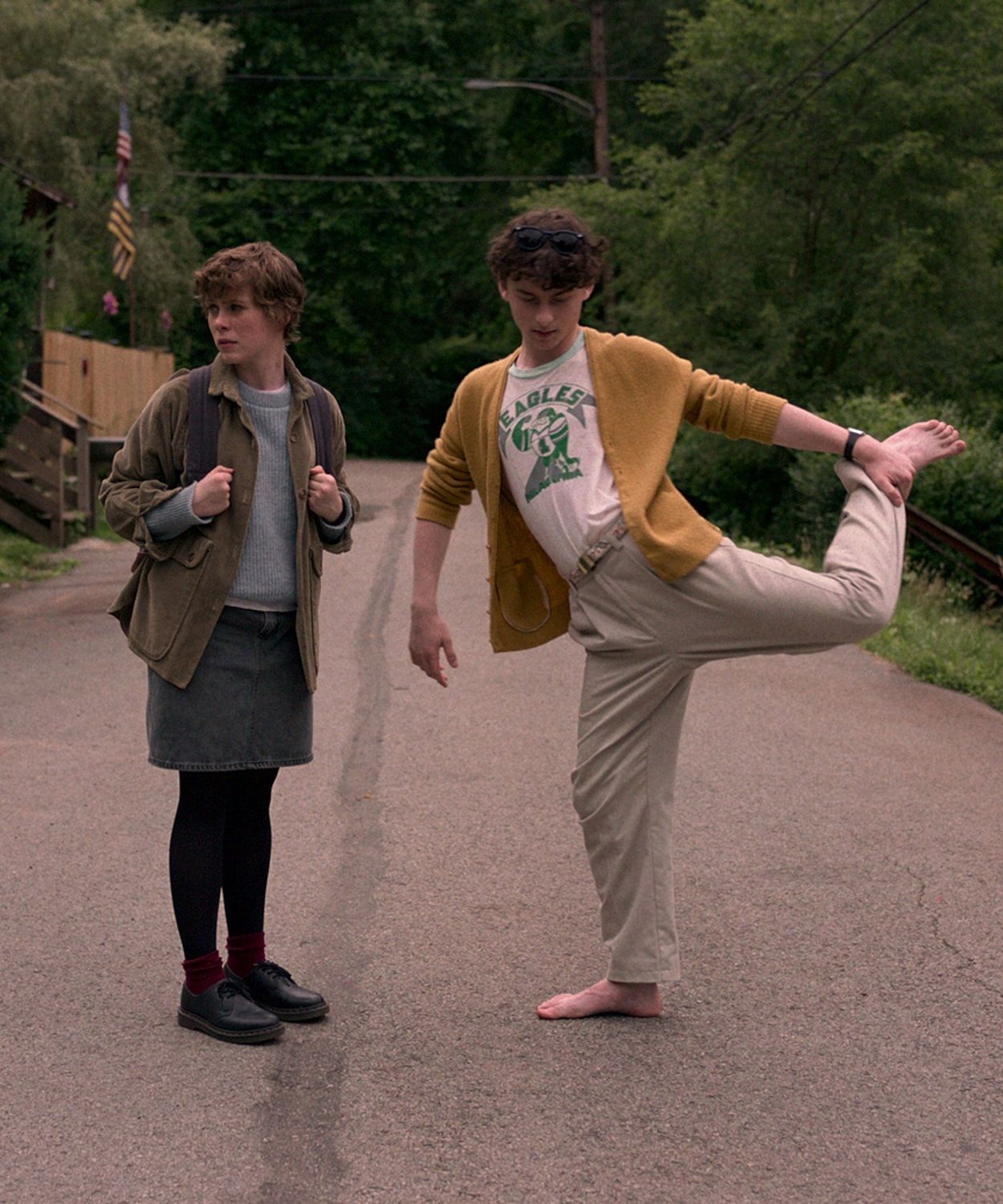Mood grunge reinterpretato in chiave British. James e Alyssa sono una sorta di Clarence ed Alabama (True Romance) in versione slavata. I look del ragazzo convinto di essere un killer e della ragazza scelta per essere la sua prima vittima sono simili, fatti di stampe floreali, colori sbiaditi (sfumature di marrone e giallo a profusione), giacche in pelle sformate, jeans, maglioni e tees oversized.