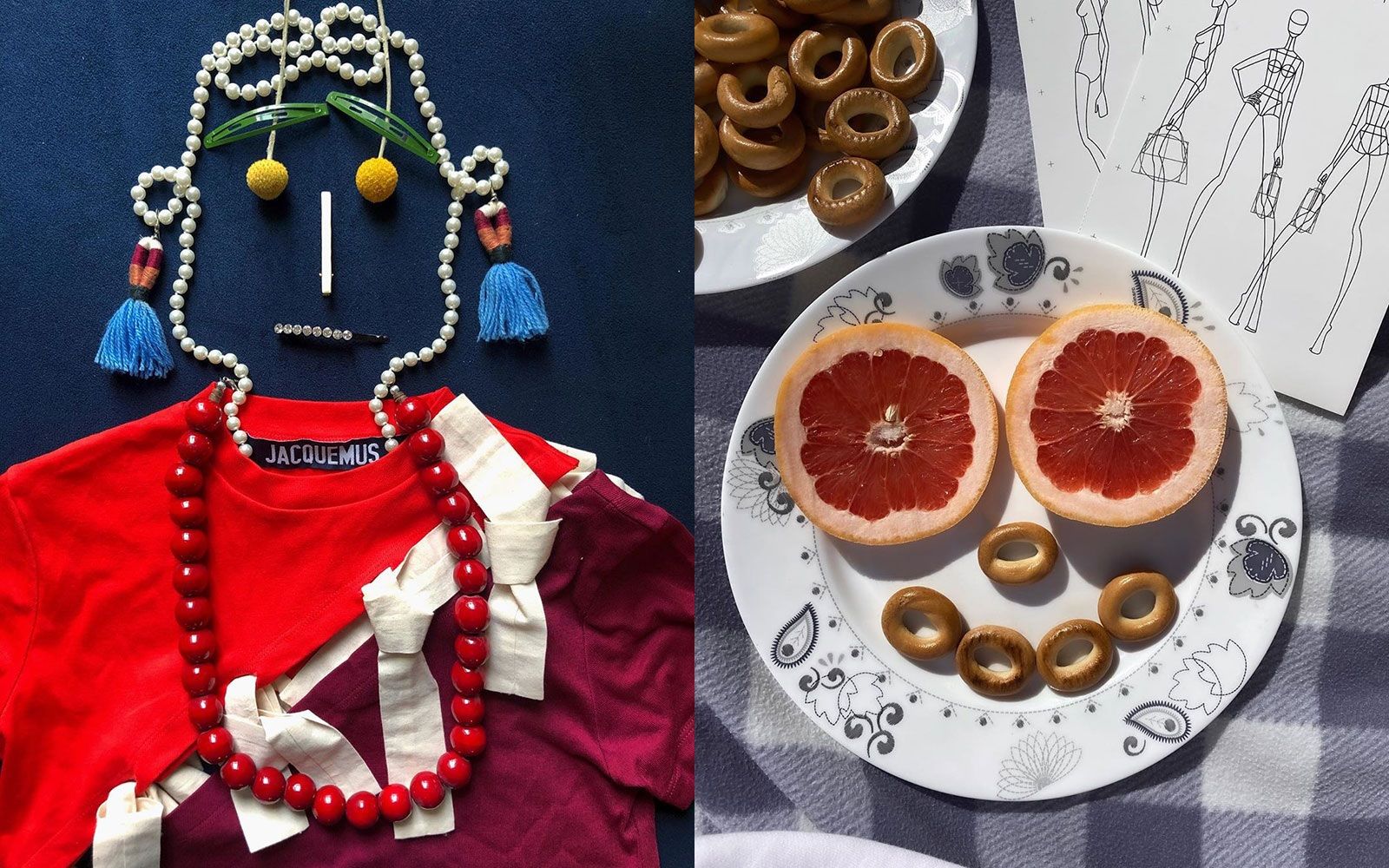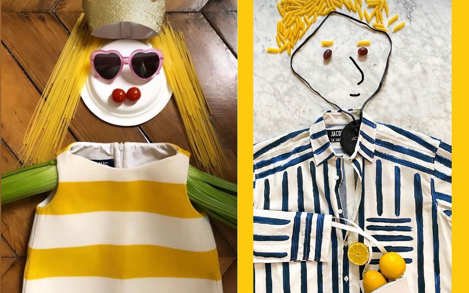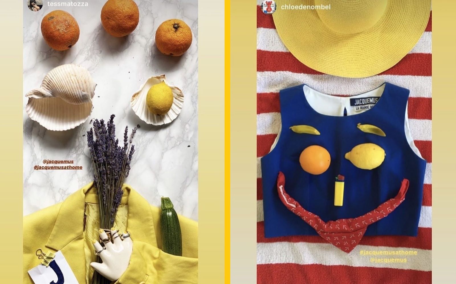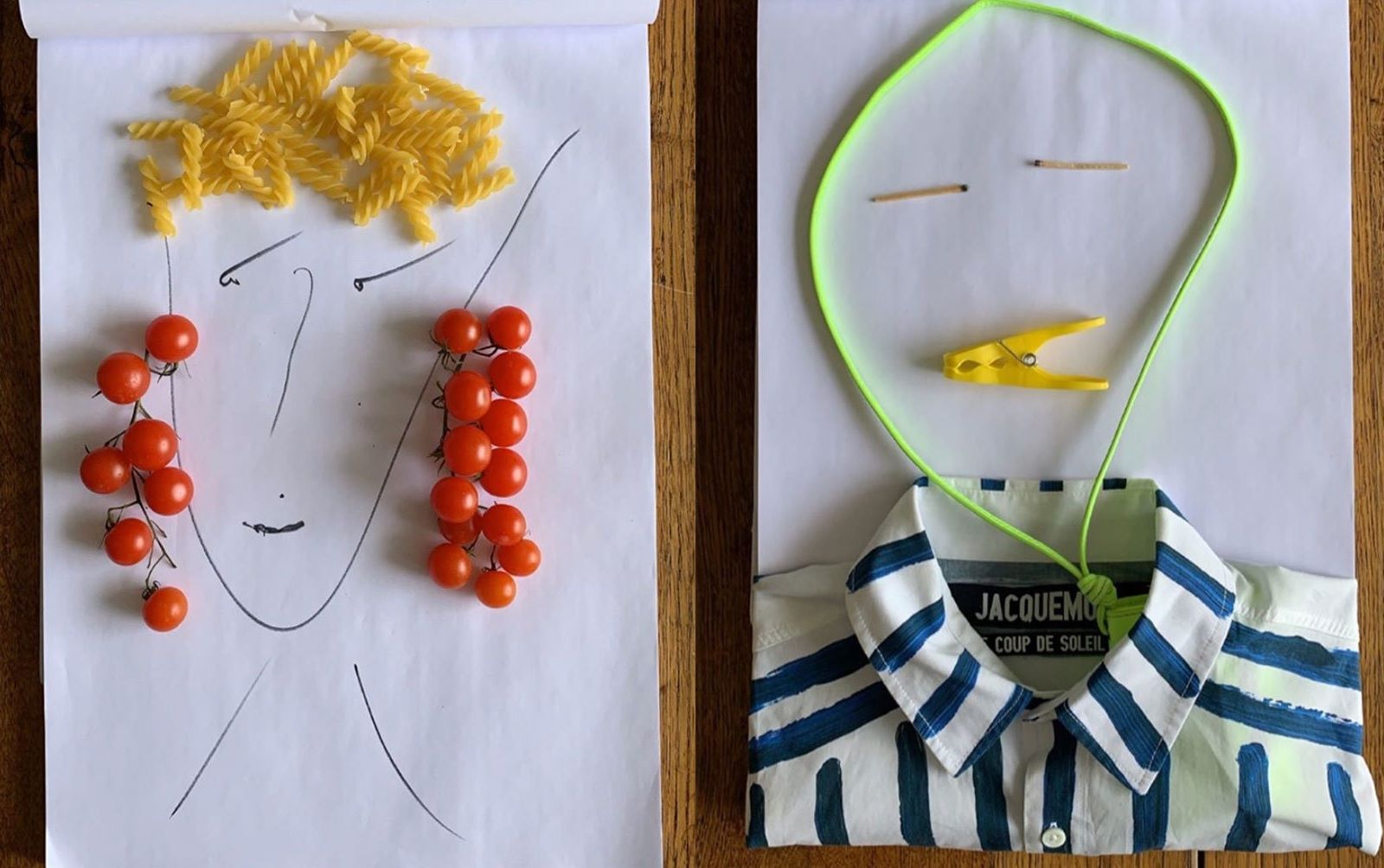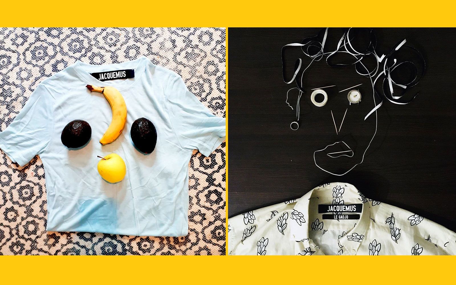 La più divertente è #jacquemusathome, lanciata in questi giorni da Simon Porte Jacquemus. Il designer di Jacquemus ha chiesto alla sua community di followers di creare un volto con gli elementi che hanno a disposizione in casa.