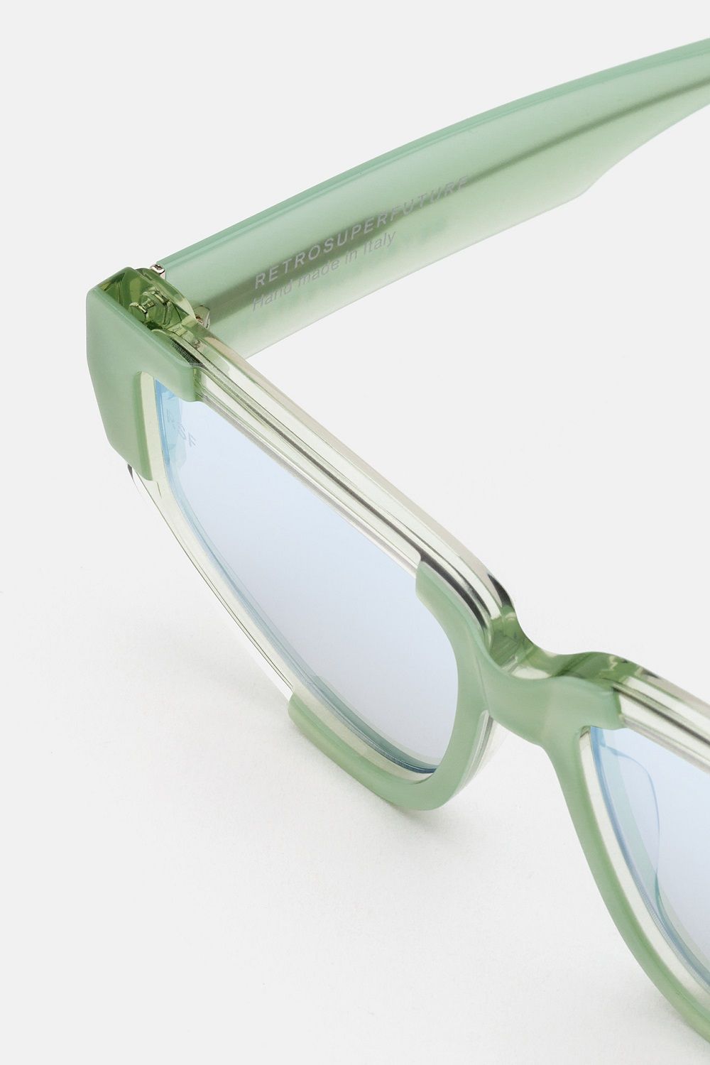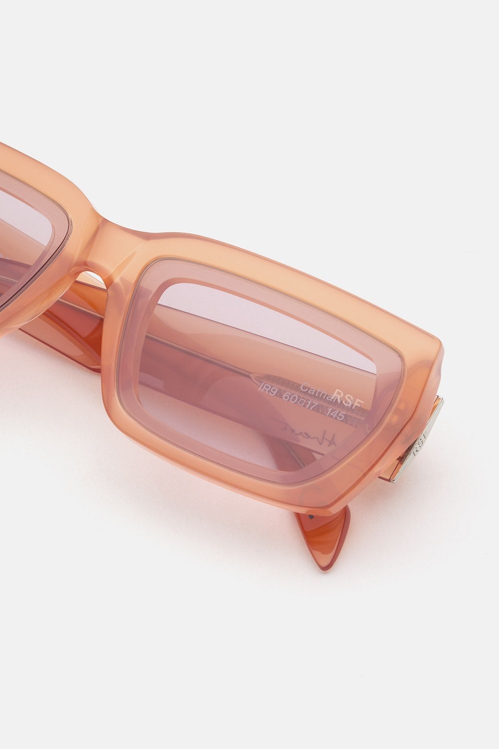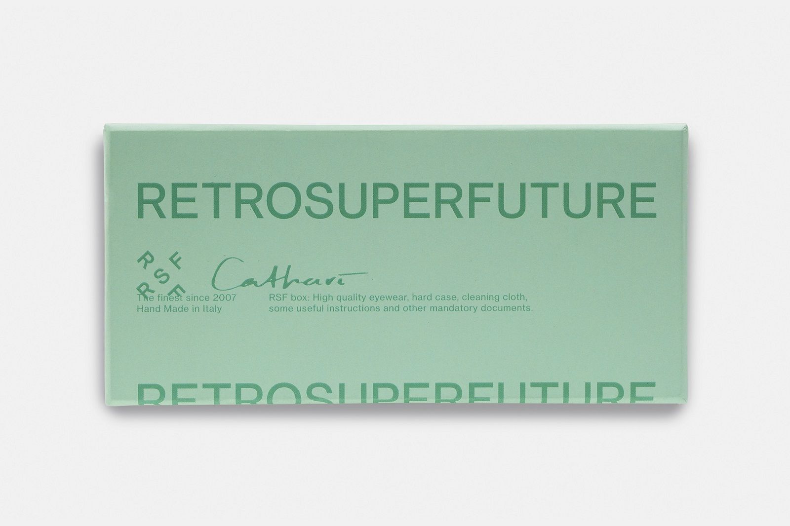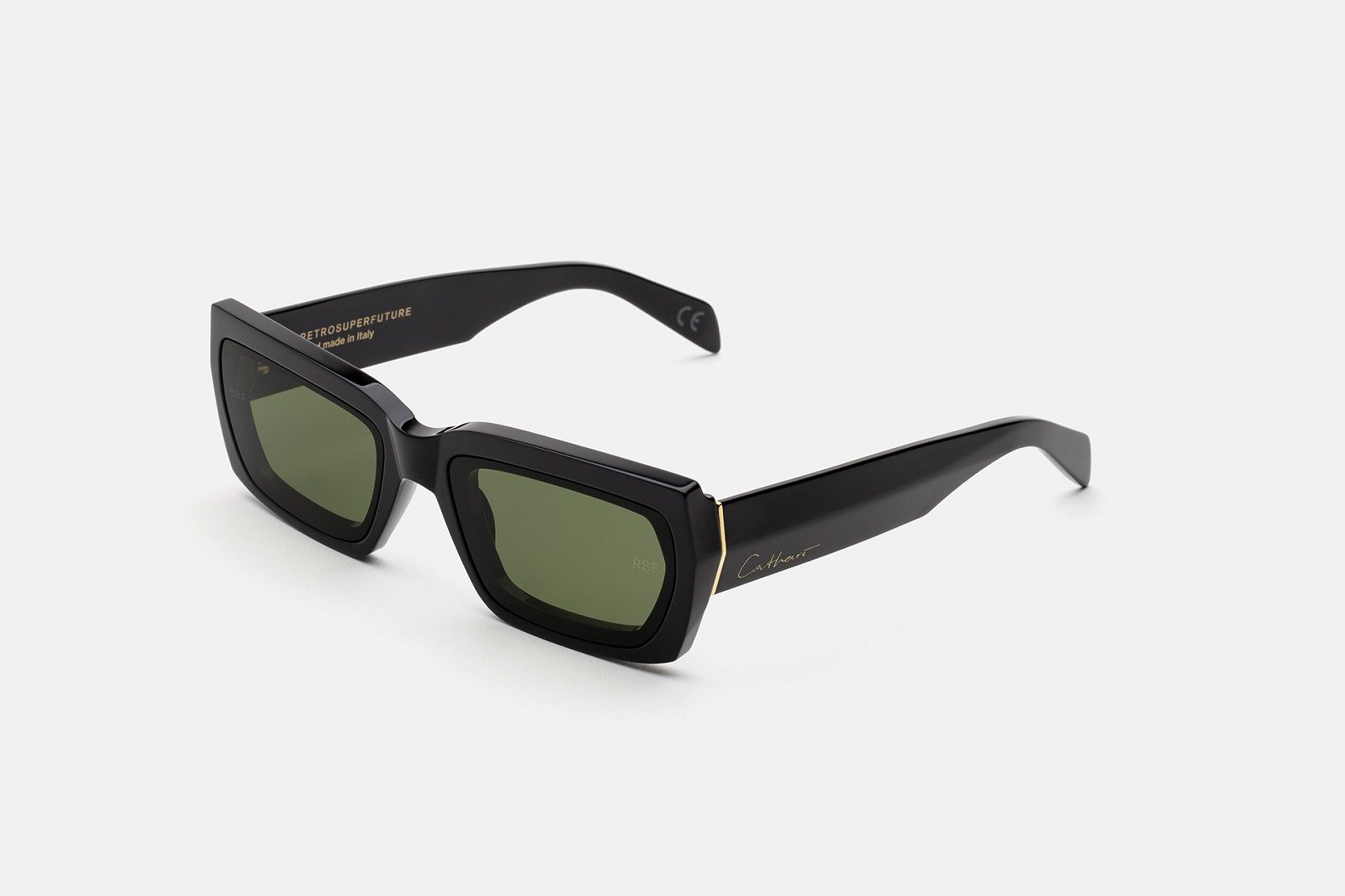 L’estetica sperimentale di Cathari ha influenzato le due silhouette degli occhiali da sole che hanno un design più audace, compatto e massiccio, fatto di spessi strati di acetato che scolpisce la montatura con una varietà di sfaccettature di angoli acuti e tagli geometrici. Oltre all’acetato nero senza tempo rivela la costruzione scultorea della montatura, gli occhiali sono disponibili in versione verde menta chiaro e arancione ruggine.