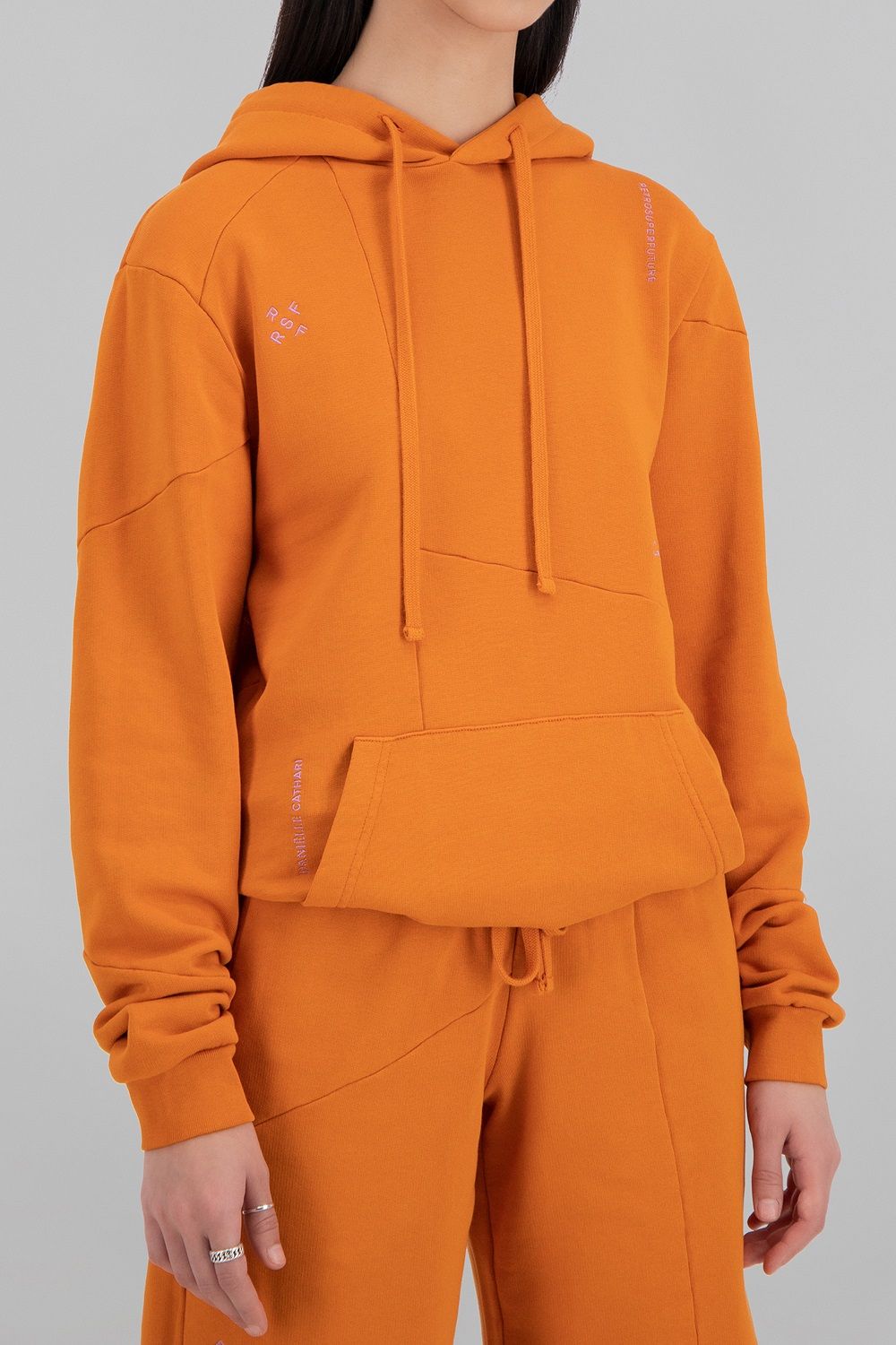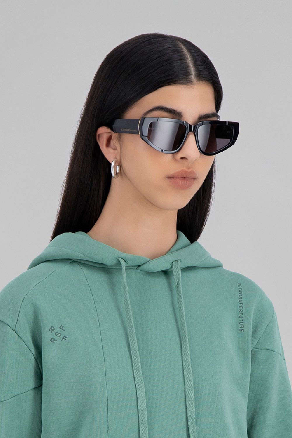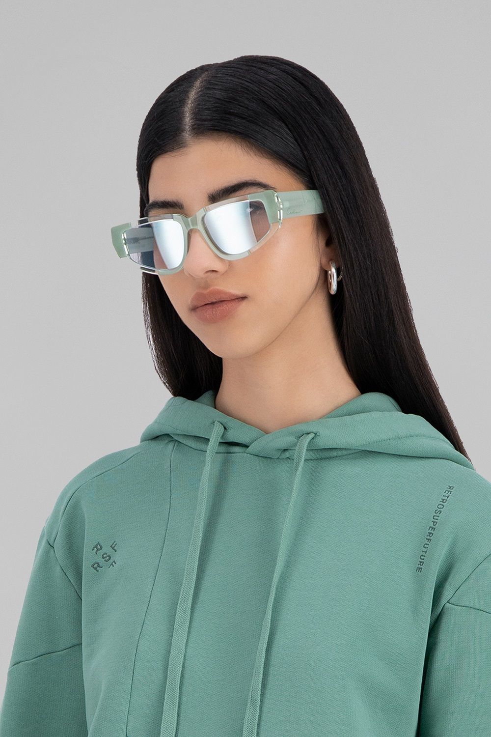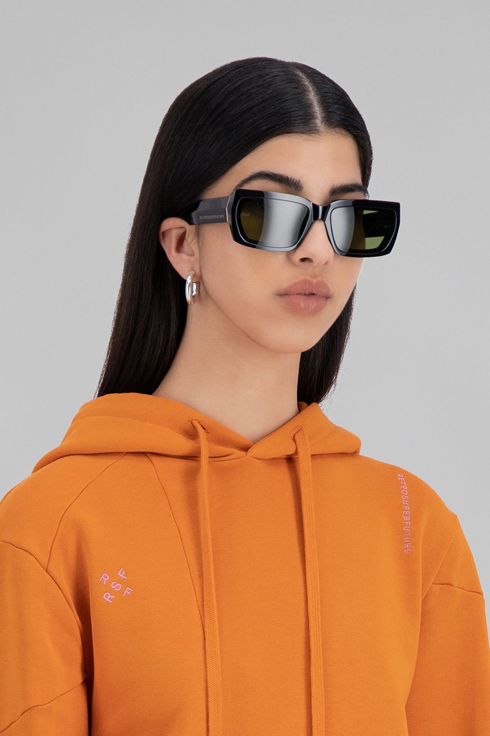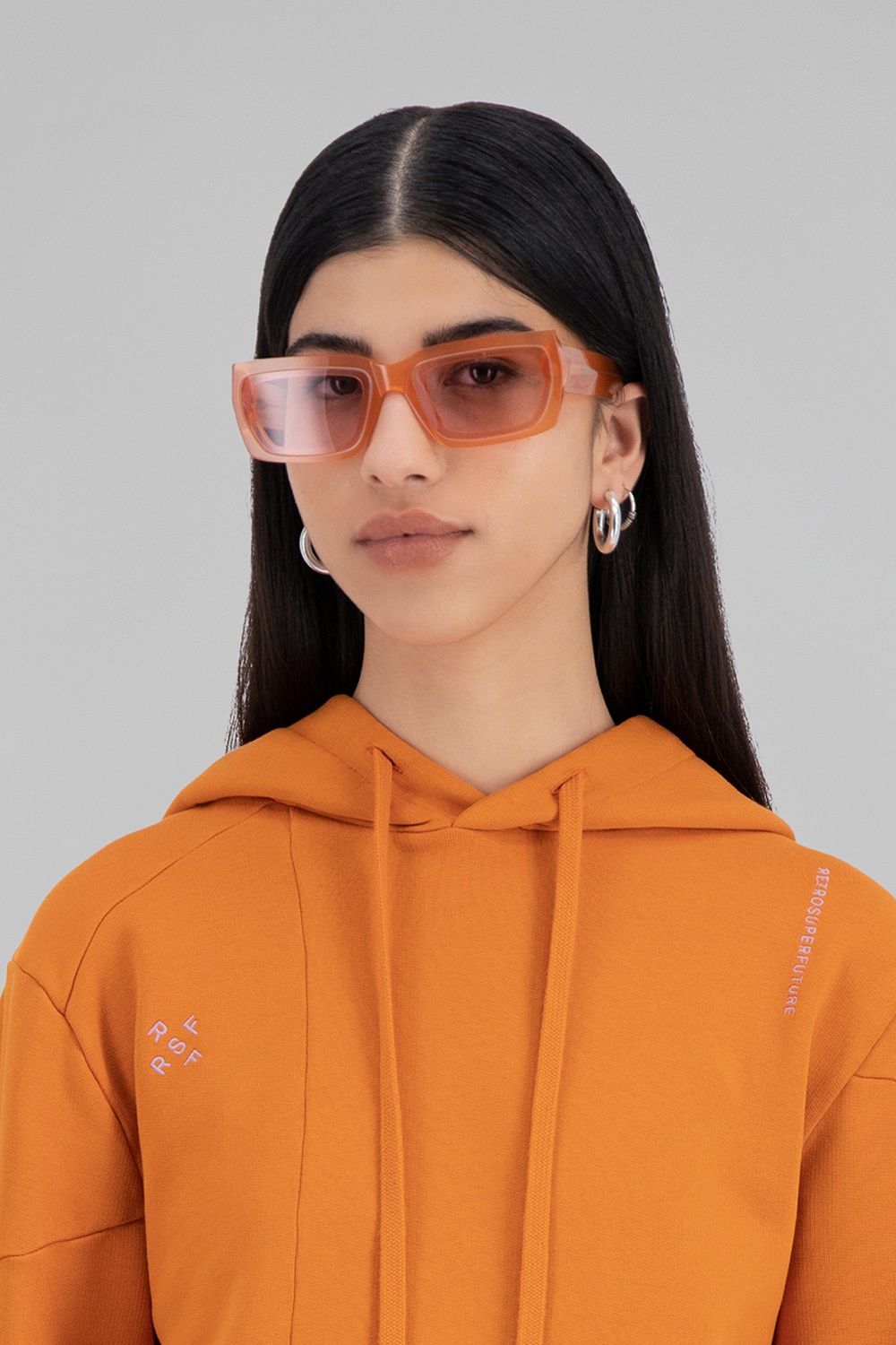 Diventata popolare grazie alla sua rivisitazione contemporanea dell'iconica tracksuit di adidas Originals, la giovane designer ha conquistato la Gen Z giocando con tagli, decostruzioni, sovrapposizioni, contrasti, mescolando codici femminili e maschili. Gli stessi elementi caratterizzano gli occhiali ed i capi della collezione realizzata con RSF.