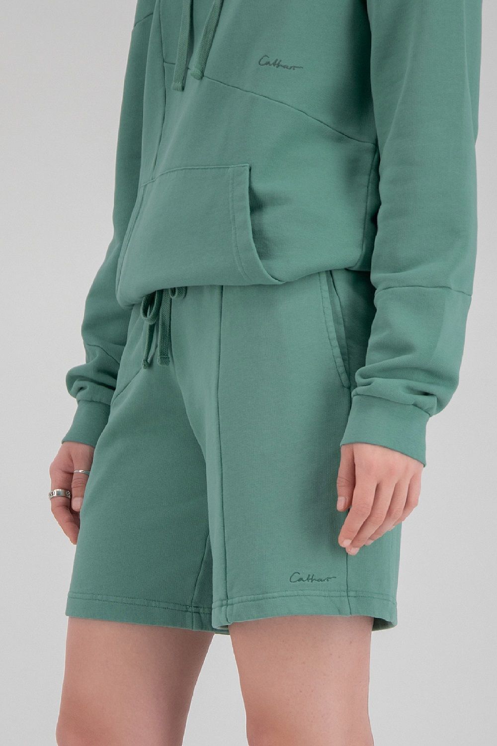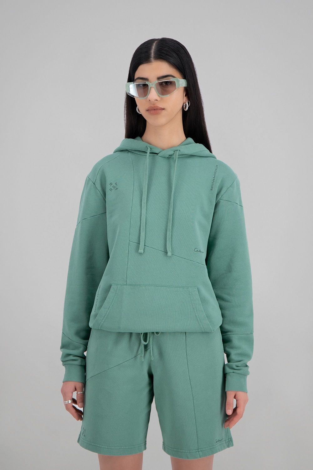 La capsule è completata da un esclusivo set di felpe e shorts, declinati nelle stesse sfumature degli occhiali, verde menta e color ruggine con entrambi i brand dei due partner ricamati.
