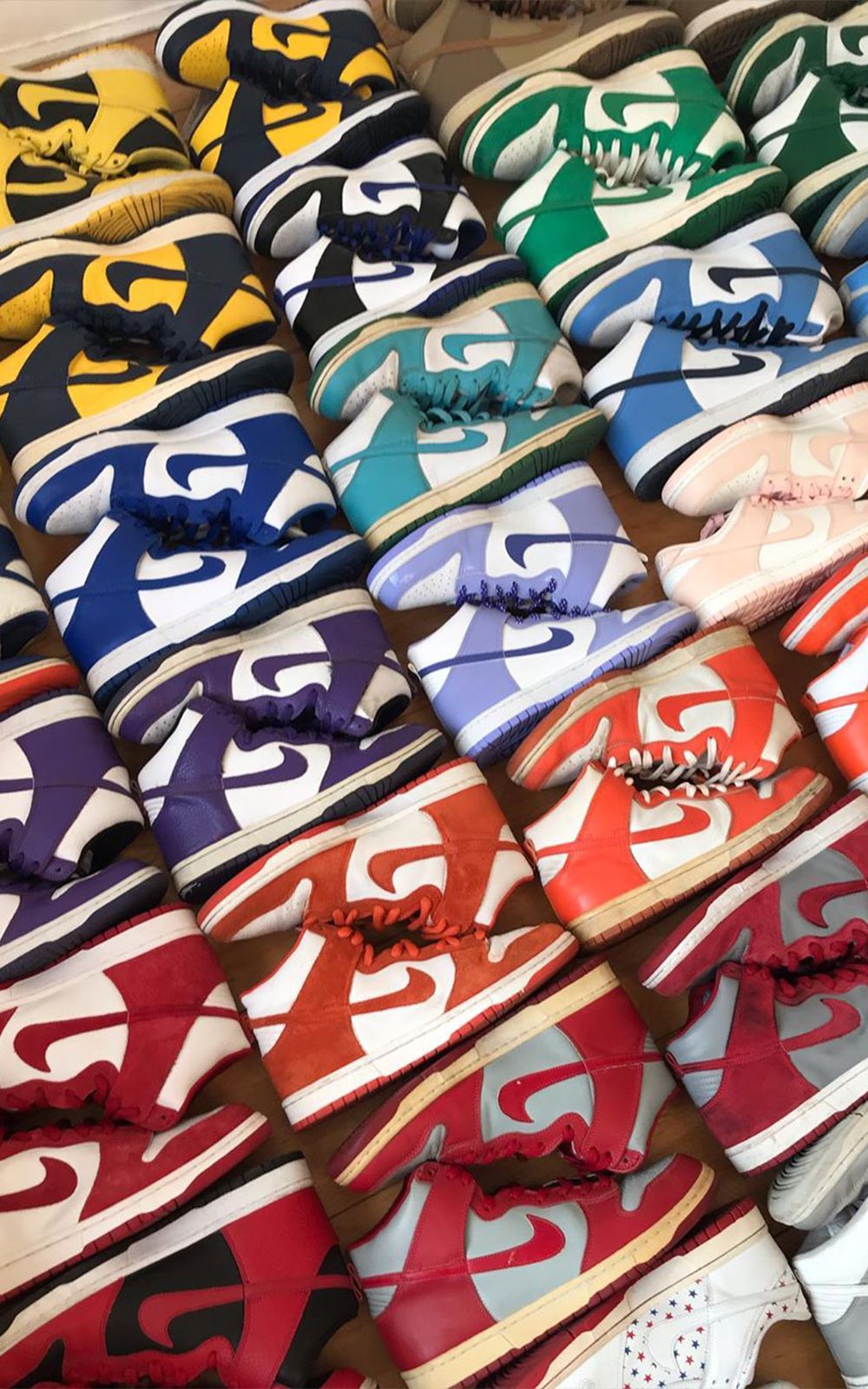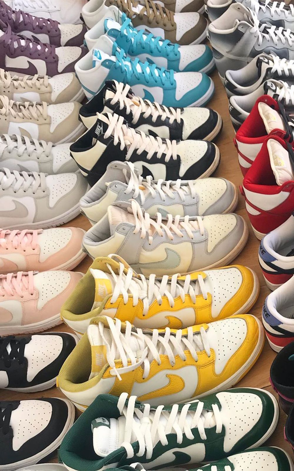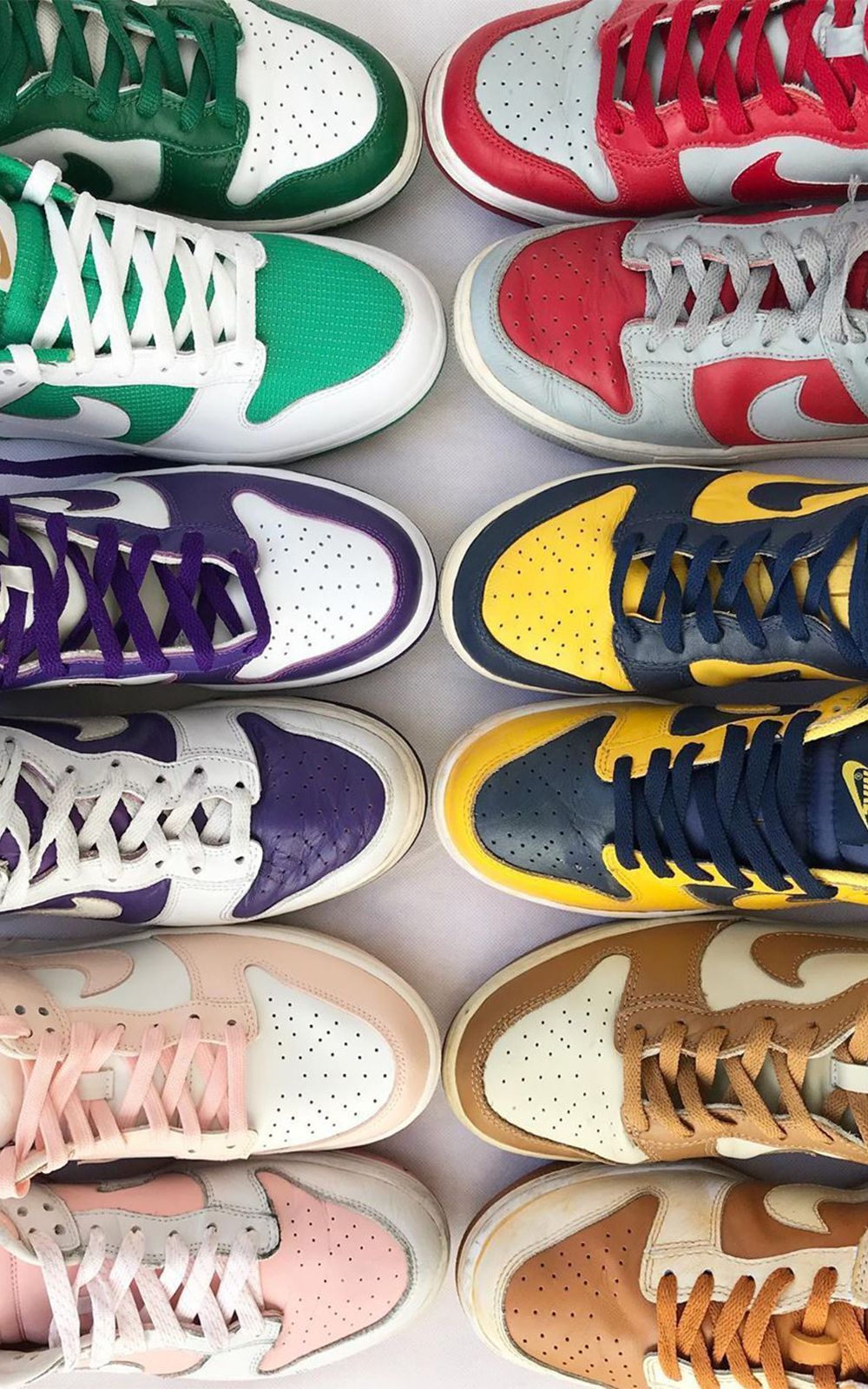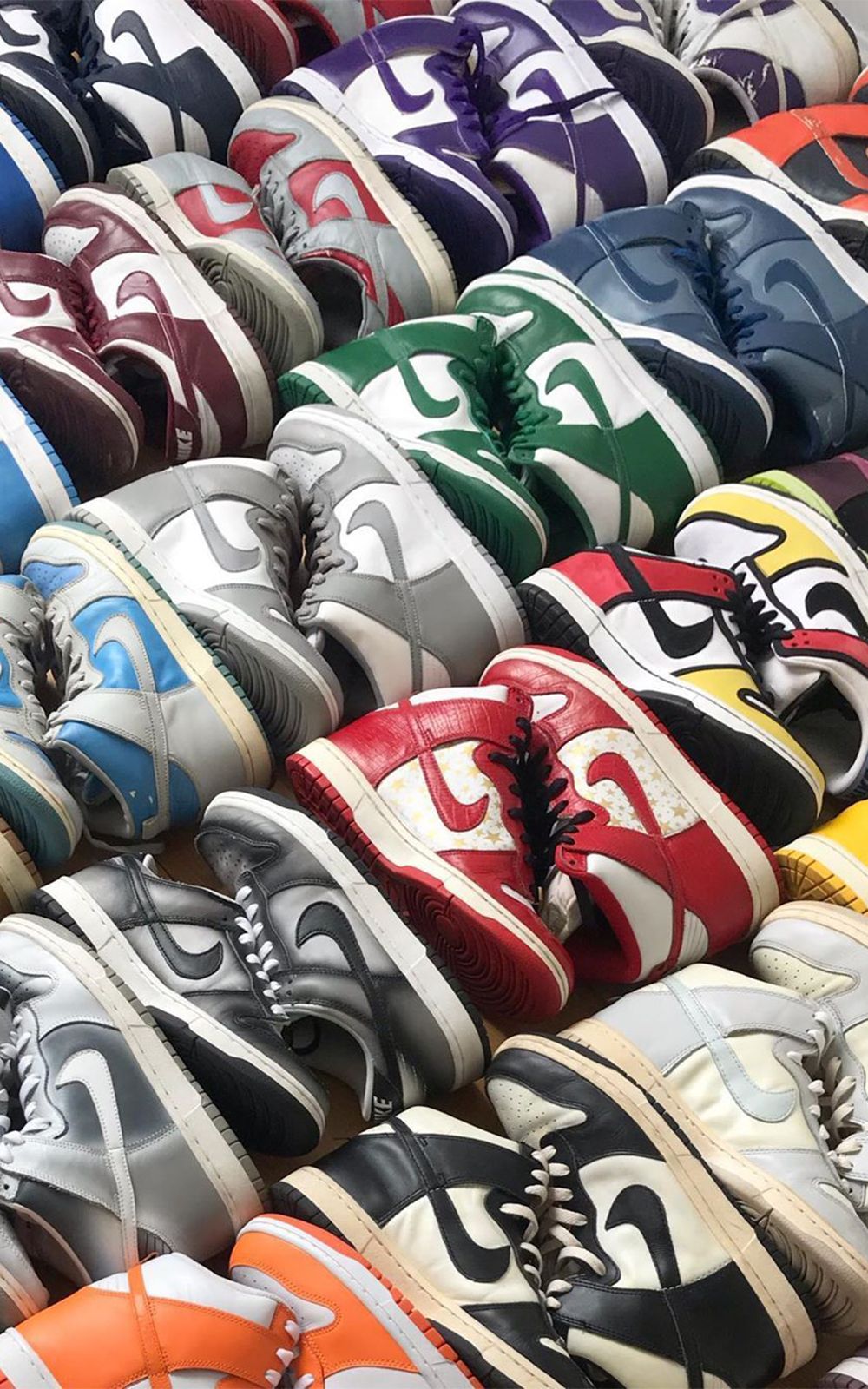 Dalla court alle bowl le Dunk non hanno mai smesso di essere una vera e propria tela su cui sperimentare differenti combinazioni di colore e pattern. Le diverse collaborazioni che negli anni le hanno viste protagoniste hanno aggiunto nuovi colori, materiali, tessuti e dettagli rendendo omaggio a svariati artisti, città, store, cartoon, film ecc...