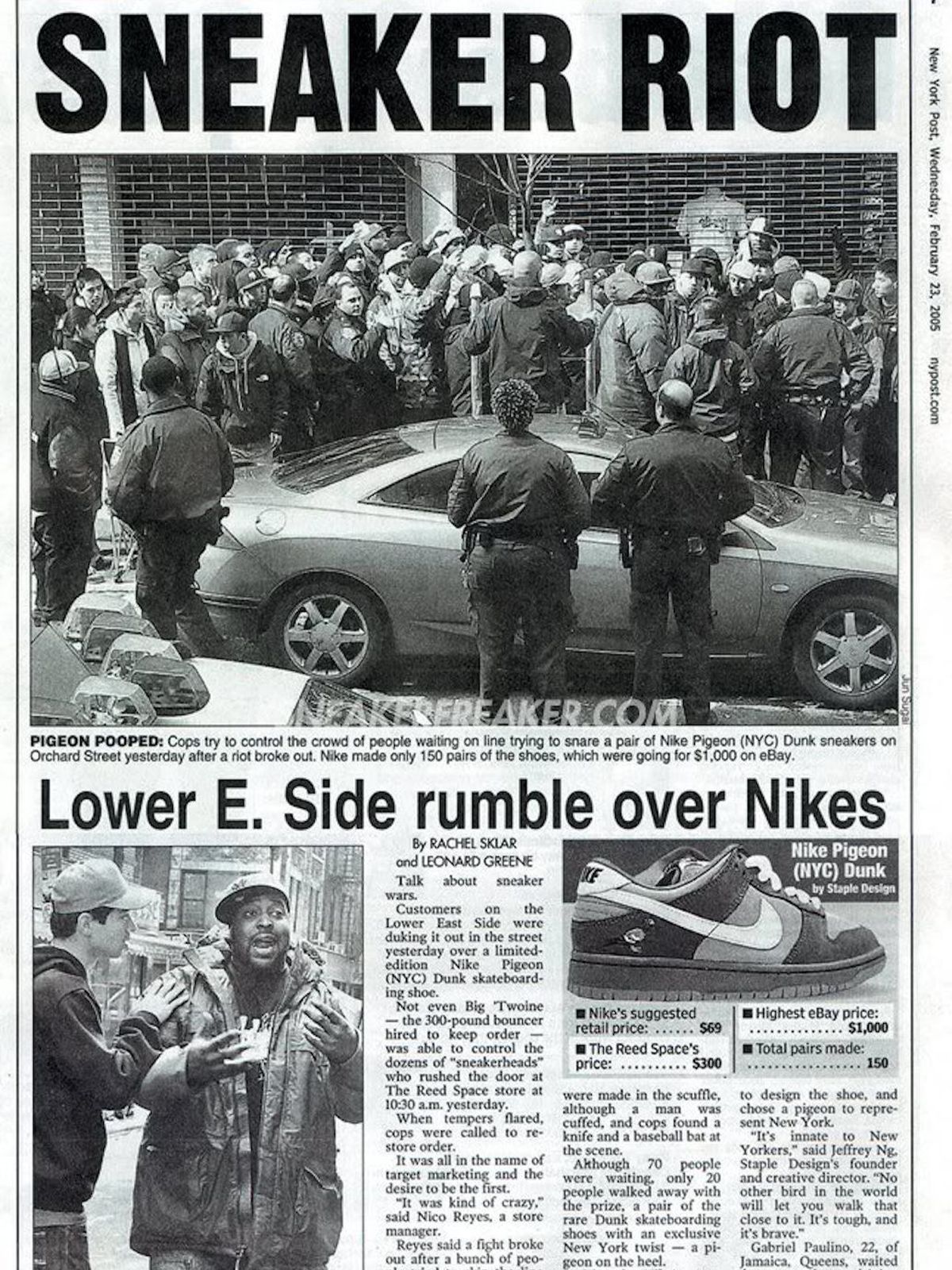 Ed è qui che ha origine il mito: le diverse collaborazioni che nacquero in quegli anni e che vedevano le Dunk SB protagoniste, divennero oggetto del desiderio di tantissimi appassionati sparsi per il mondo. In particolare è con la Nike Dunk SB Staple Pigeon che la sneaker culture finisce sulle pagine di giornale e sui notiziari, in seguito ai diversi incedenti avvenuti per il lancio della sneaker.