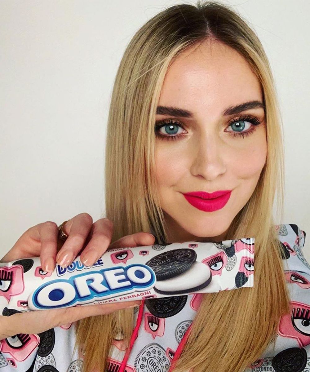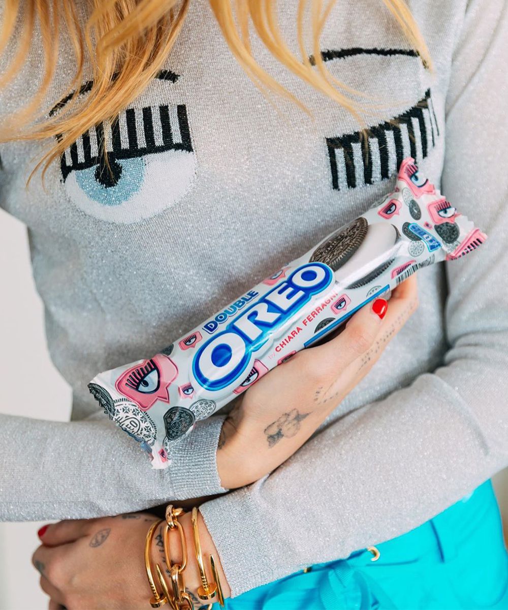 Oreo è celeberrima per le sue collaborazioni stagionali in America, con cui lancia gusti unici e speciali. In Italia non era ancora mai successo, finchè la pioniera Chiara Ferragni non si è accaparrata anche questo primato: la sua collezione Chiara Ferragni X Oreo vede il biscotto con doppia crema protagonista all’interno di un packaging rosa tempestato di eyelikes, logo iconico della Ferragni. Chiara ha lanciato con i biscotti anche una Capsule Collection Limited Edition dedicata ed il concorso “Libera il tuo Spirito Oreo” per vincere due dei quattro capi in questione. L’orgoglio italiano sa come gestire l’hype.