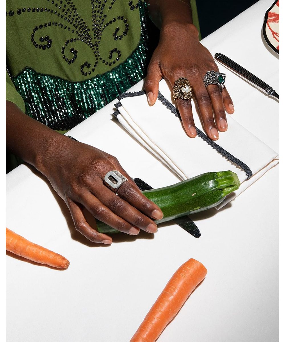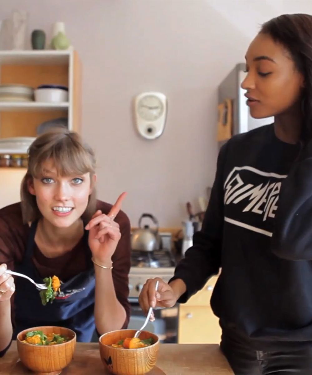 Moda e cibo sono infine indissolubilmente collegate dalle vite delle persone più esposte del sistema moda: le modelle. Il cibo diventa argomento numero uno nei dietro le quinte delle sfilate. La figlia di Isabella Rossellini, Elettra Wiedemann, nonchè autrice del libro “Impatient Foodie”, paragona il valore di una borsa Birkin di Hèrmes a quello di un pomodoro cresciuto biologicamente nelle fattorie locali: “Entrambi raccontano una storia di lavoro artigiano e amore che connettono il consumatore con l’artigiano e la tradizione, ecco cosa tiene ancorato al cibo l’interesse dello staff del mondo della moda.” Wiedemann è inoltre una tra le tante modelle ad avere un canale Youtube dove cucina, esprimendo tutto il suo amore per l’arte culinaria. Anche Jourdan Dunn tiene una rubrica di cucina, così come Romee Strjid e Sanne Vloet che con i loro “Cosa mangio in un giorno come modella di Victoria’s Secret” hanno incuriosito tutto il web.
