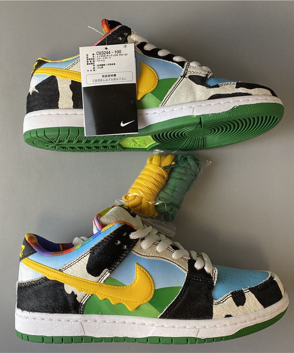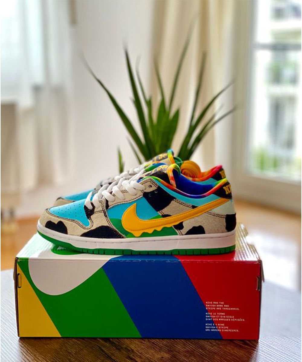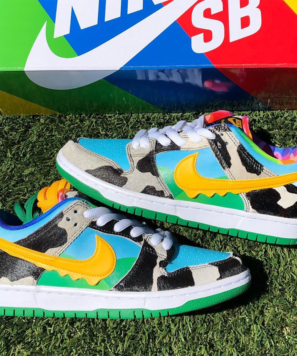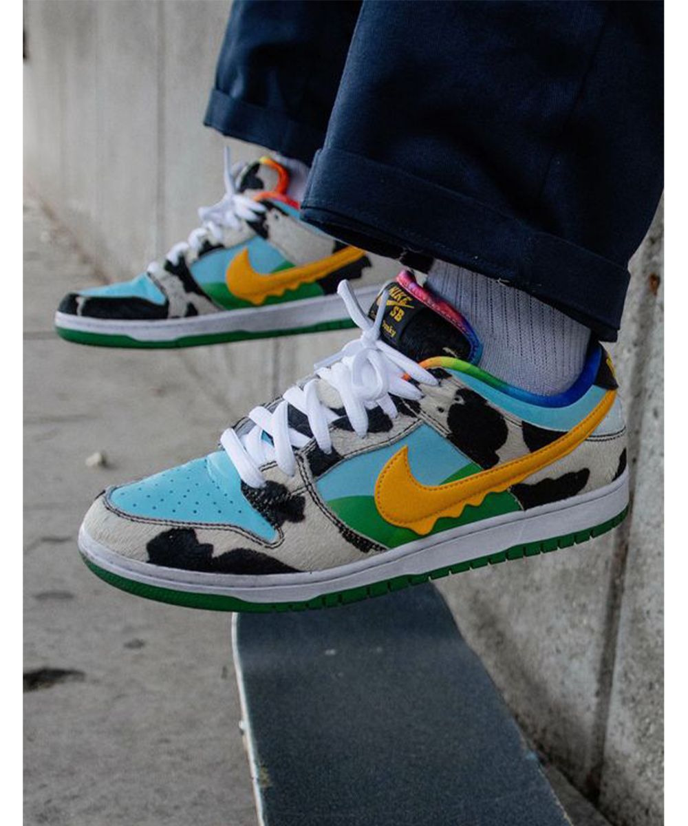 “From Licks to Kicks”, è lo slogan della coloratissima e introvabile collaborazione tra Nike SB ed il marchio di gelati americano Ben & Jerry. Le scarpe sono ispirate alla confezione del gelato Chunky Monkey e rievocano il cielo blu, le mucche da latte e i prati verdi da cui viene prodotto il gelato americano. “Sono la cosa più euforica che puoi metterti ai piedi”, afferma il comunicato di Ben & Jerry. L’euforia in effetti c’è stata, in quanto le scarpe sono ad ora disponibili sono in resell al modico prezzo di 6,500$.