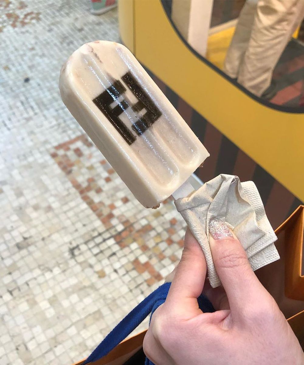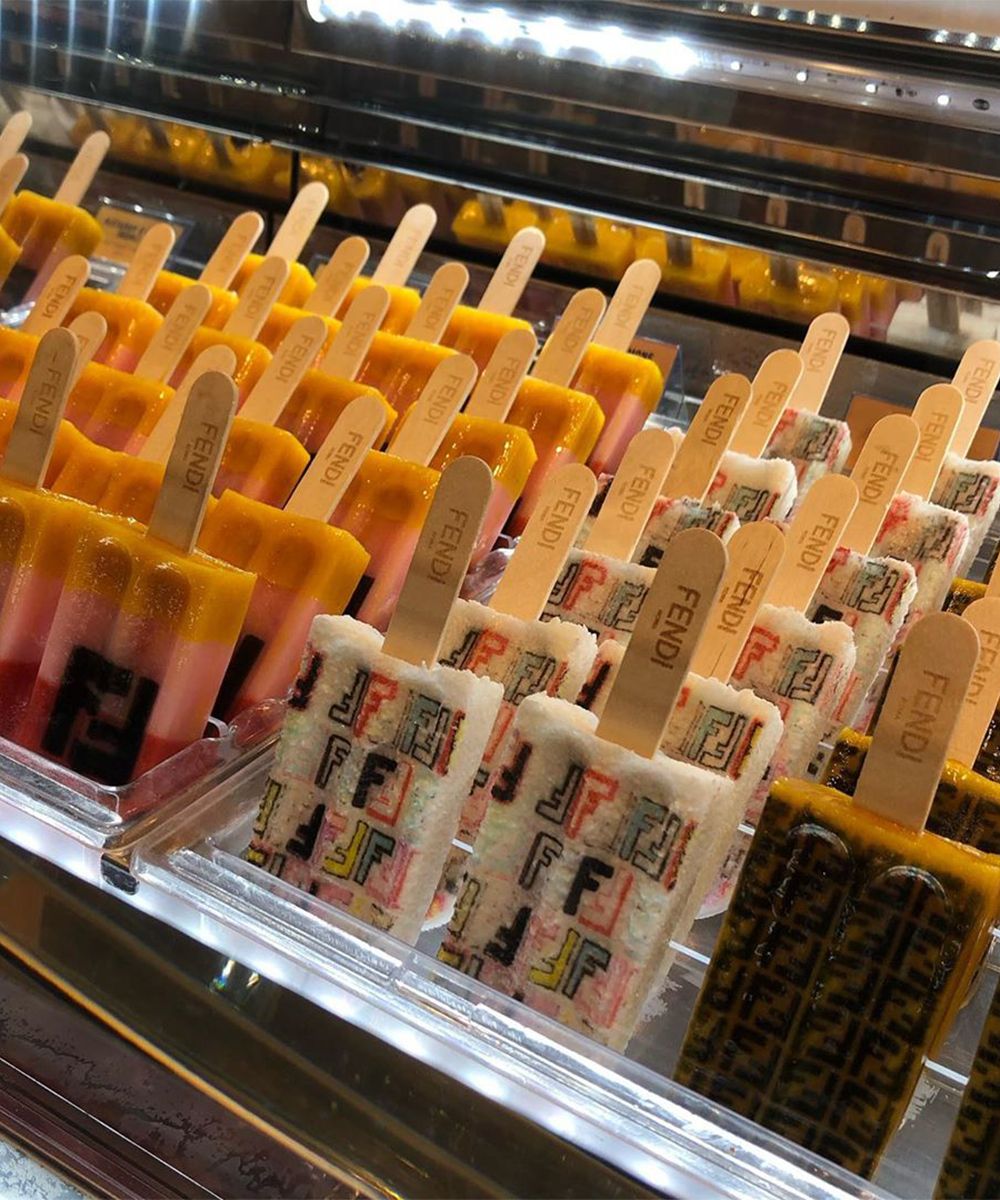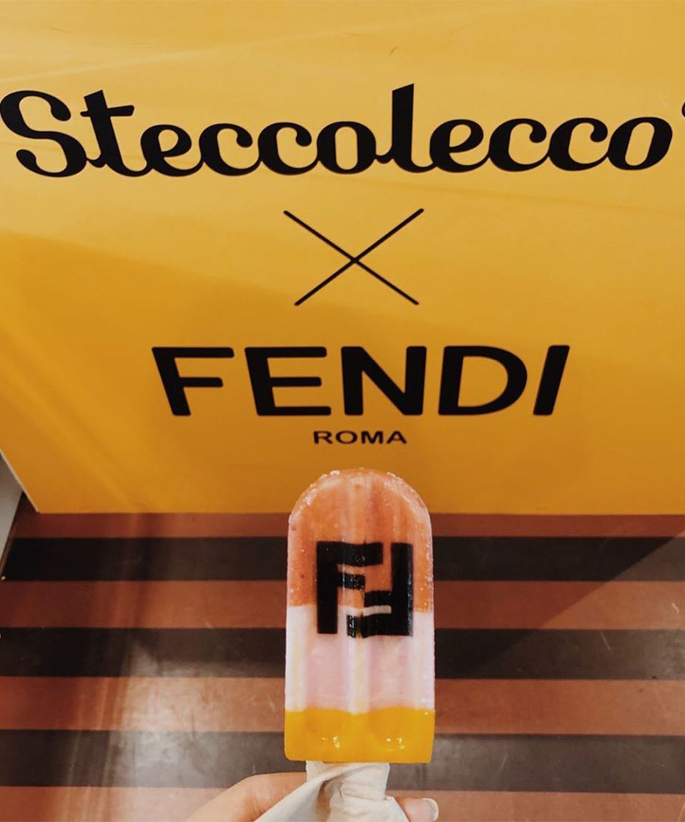 I due colossi romani si uniscono per una collaborazione a base di gelati artigianali su stecco, colorati e in monogram Fendi, disponibili all'interno di un pop-up store, posizionato nella strategica via di passaggio alla Stazione Centrale di Milano per più di un mese, in occasione della Milano Fashion Week 2019. Impossibile non fermarsi per provarne uno, ed avere un morso dell’allure di Fendi, per la durata di un ghiacciolo.