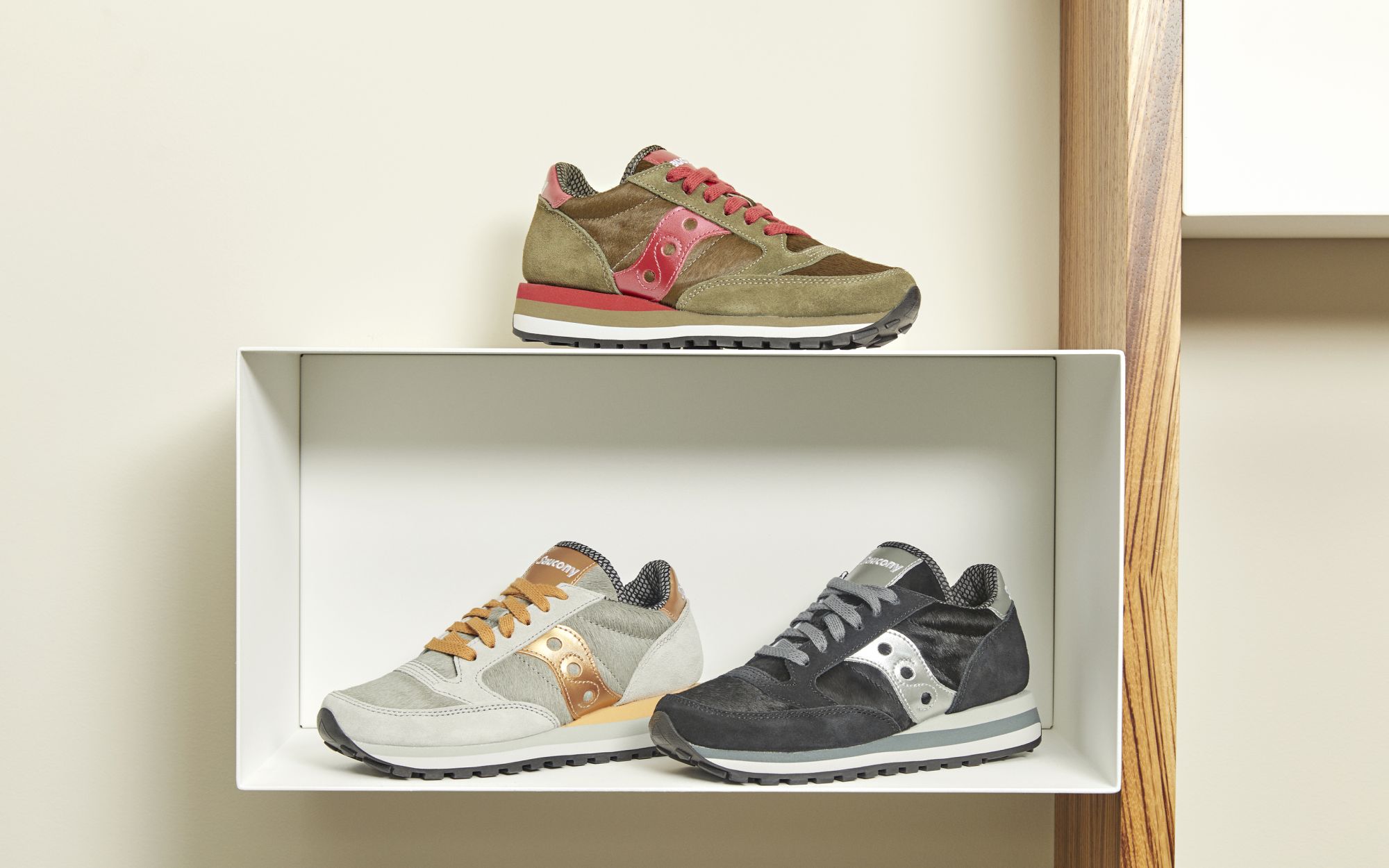 Mentre la Triple Jazz, silhouette in edizione limitata pensata esclusivamente per il pubblico femminile, presenta un'intersuola più alta rispetto alla classica Jazz O’ candidandosi come sneaker del cuore per tutte le ragazze che vogliono acquistare qualche centimetro in più senza rinunciare ad indossare le sneaker.