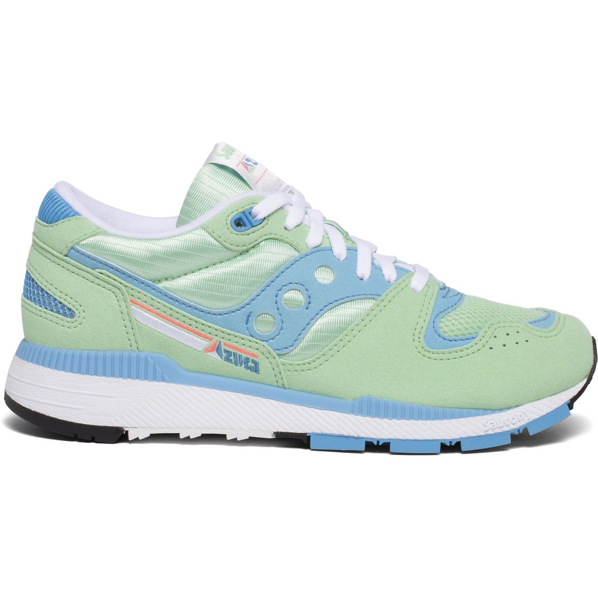 La storia del brand affonda le radici nell’elemento acqua. È dall'acqua che il nome e il logo del brand traggono ispirazione, rimanendo negli anni pressoché invariati e diventando caratteristica fondante di Saucony.