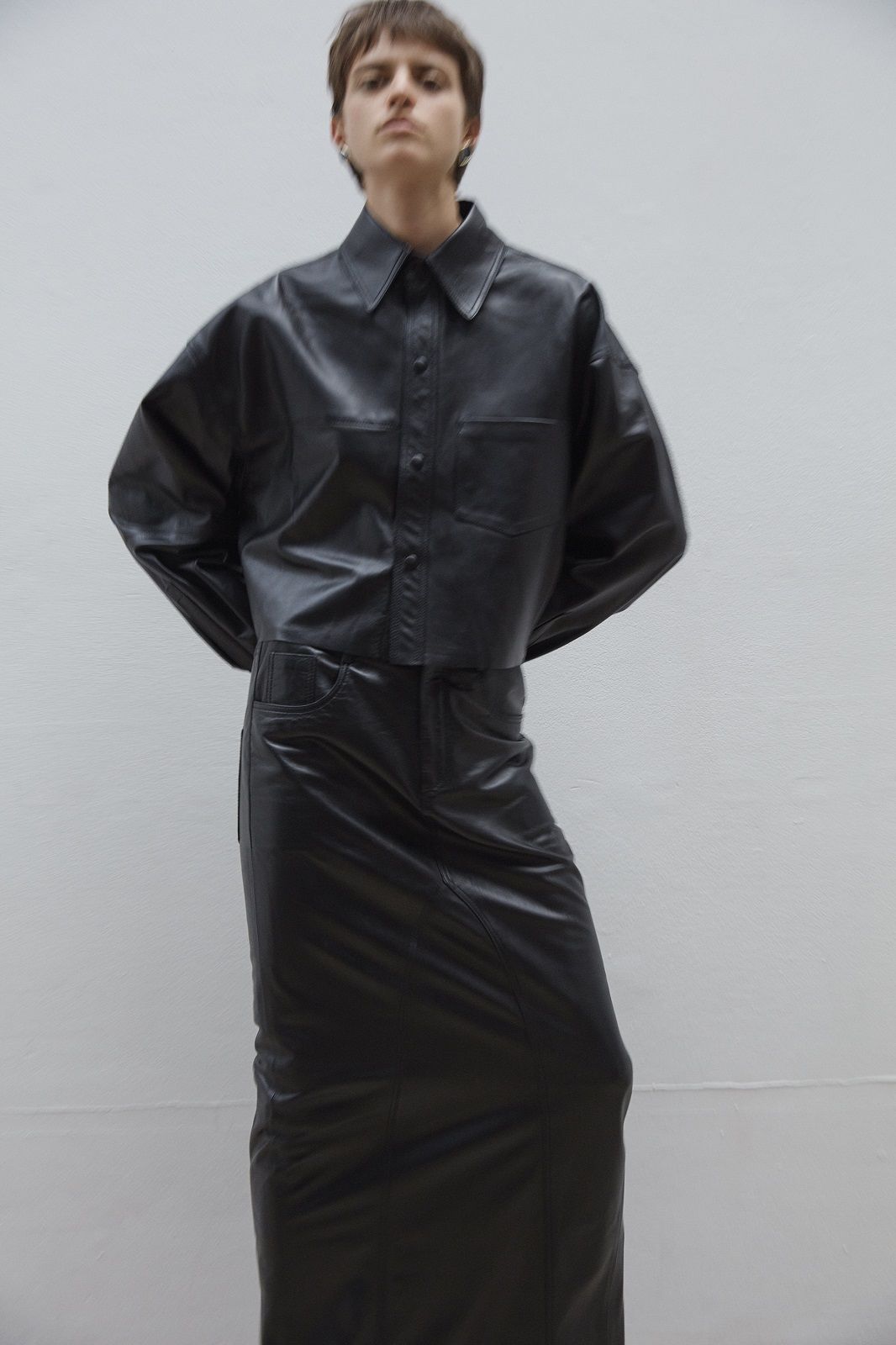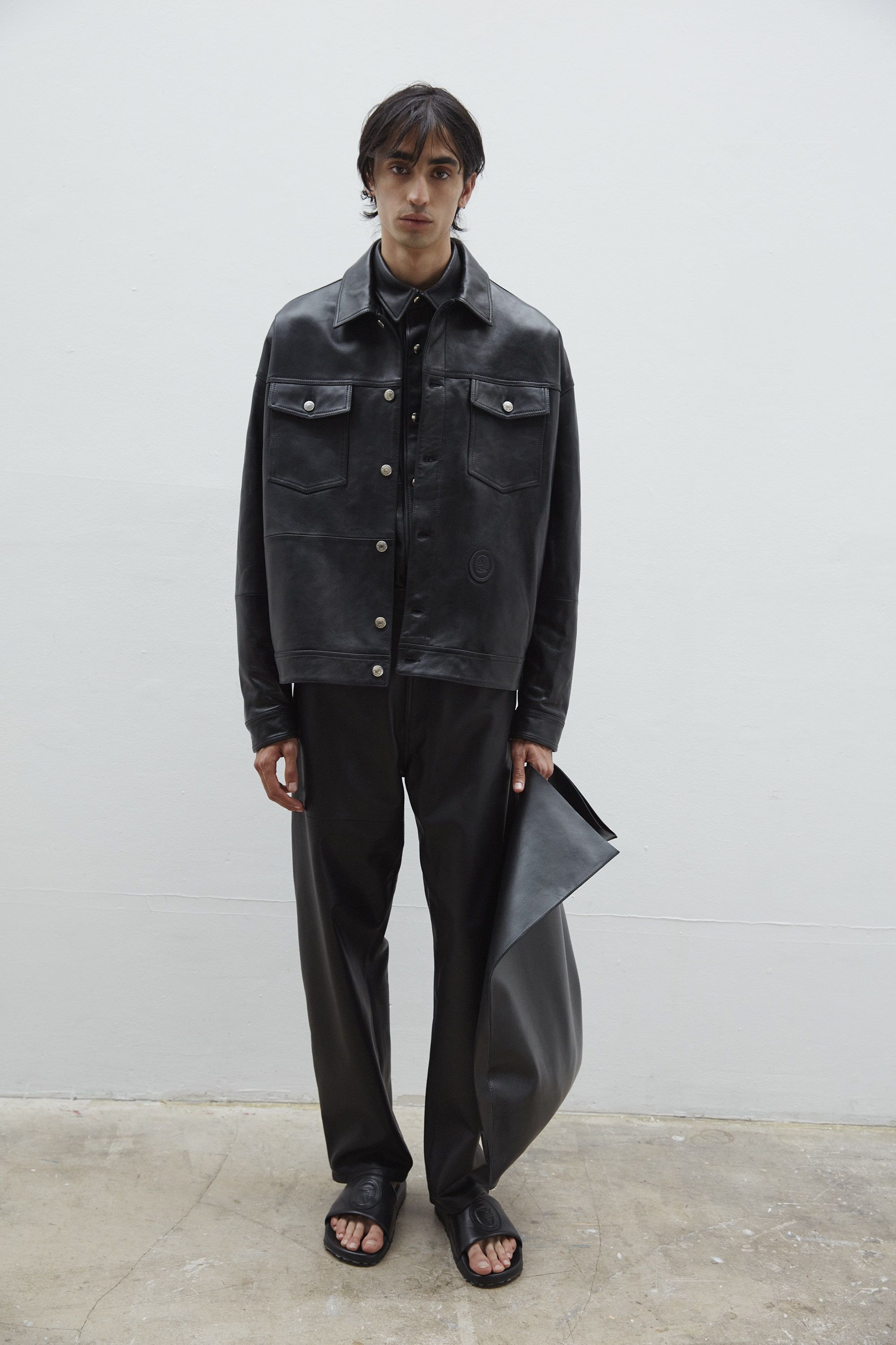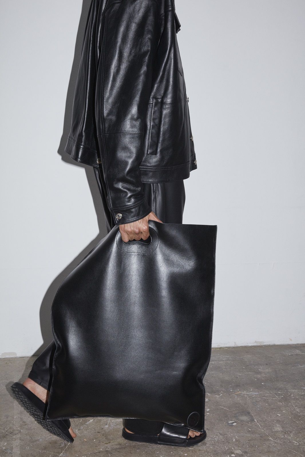 La collezione, intitolata NUWEV, si ispira alle contro-culture italiane degli anni ‘80 e ‘90, al periodo del post-punk e new wave, rievocando il mood e lo stile dei ragazzi del mondo del clubbing e dei video-bar di Napoli e Roma. Il risultato è un guardaroba essenziale, urbano e minimal, fatto di capi in pelle, denim e pattern in tartan. Le silhouettes sono oversize, le giacche in morbida pelle si alternano a capispalla in nylon, maglie super leggere in lino effetto rete, slip dress, maxi trench, felpe cropped, shirt dress e jeans dal fit rilassato. Il dettaglio sovversivo? Elementi iconografici e loghi storici Trussardi sono rovesciati. Completano i look maxi shopper minimal, clutch effetto nuvola e slides in pelle.