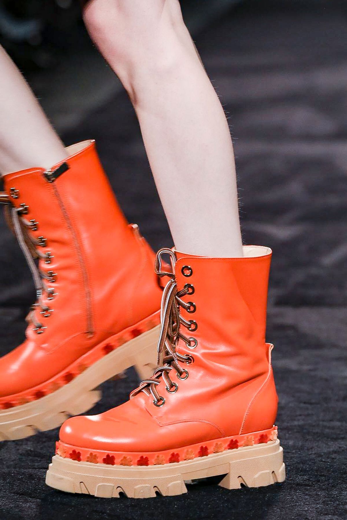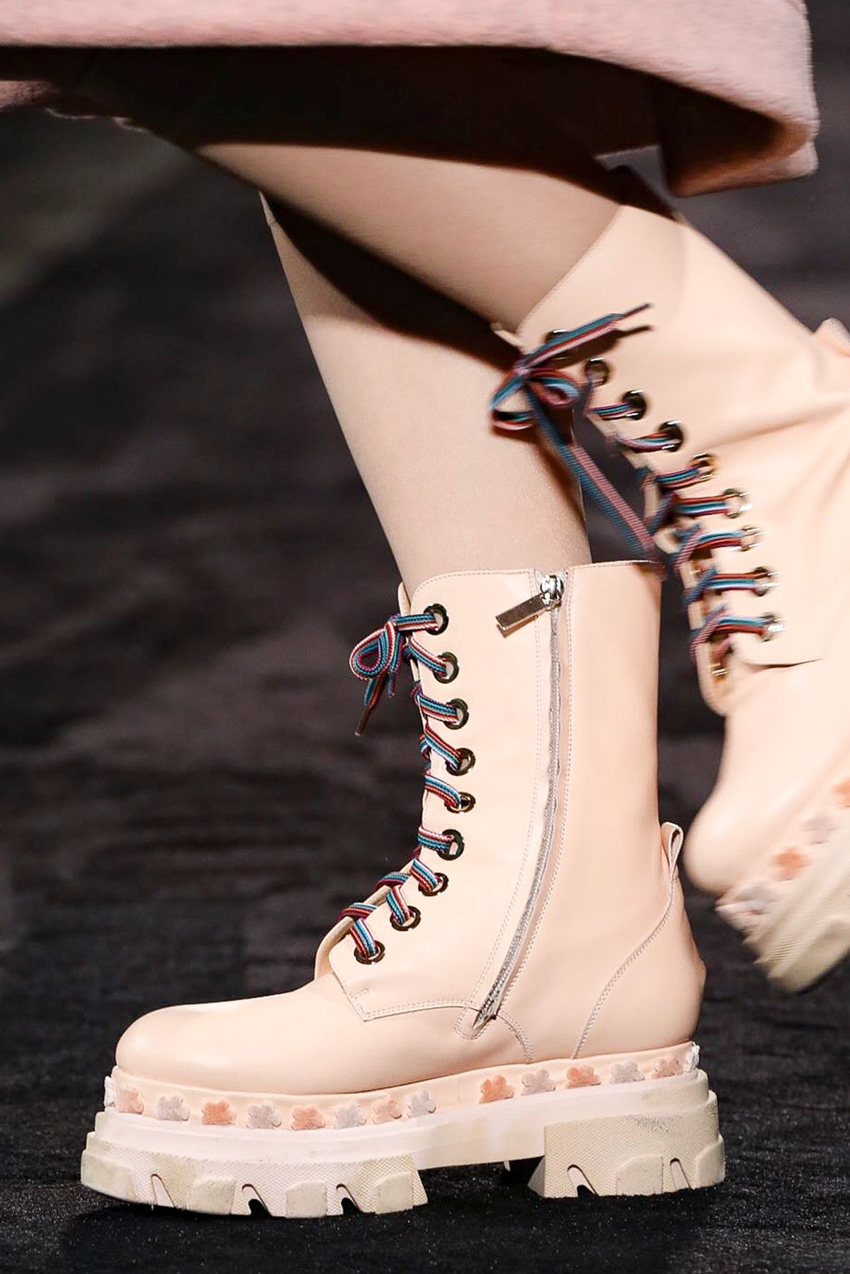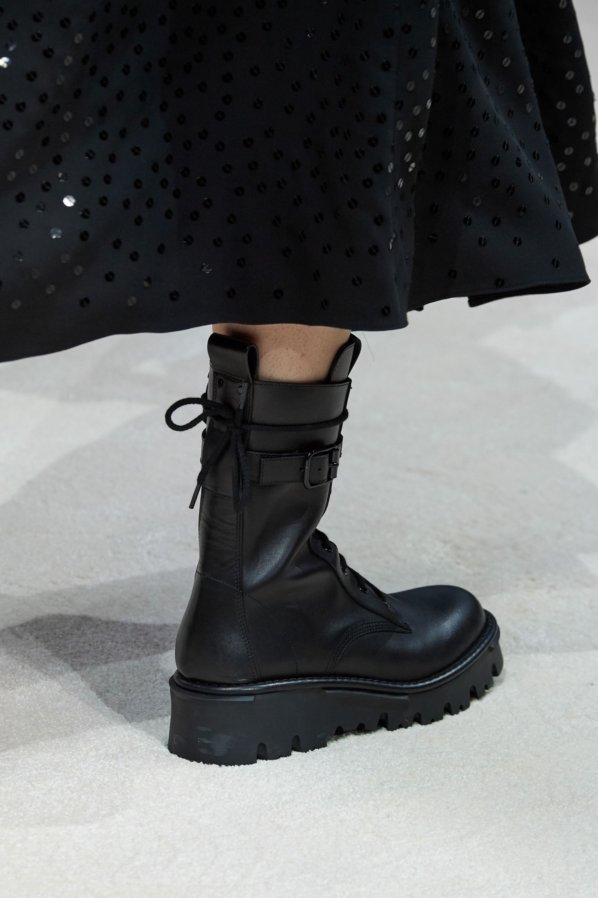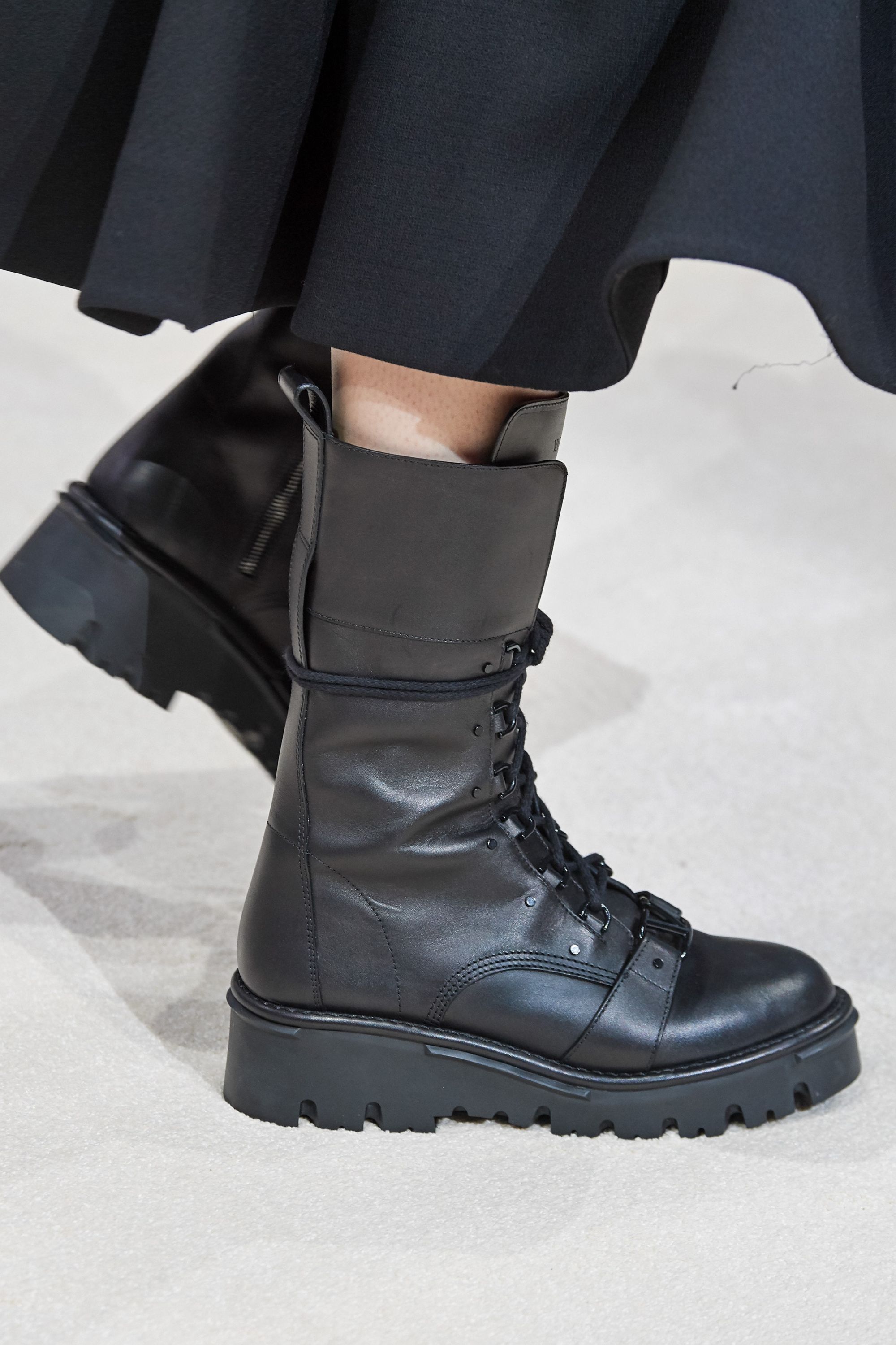 Le chunky sneakers hanno fatto scuola e ci hanno abituato alle suole più disparate e a quell’aiuto che a differenza dei tacchi, ci fa soffrire un po’ meno e che dona ugualmente grinta e qualche centimetro di altezza. Il combat boot è stato protagonista dei fashion shows Autunno-Inverno 2020/21 più inaspettati, abbinato ai romantici abiti di Vivetta e sotto le gonne della maison Valentino. Ad aver rubato il cuore di tutte le influencer, ma veramente tutte, è il combat boot Monolith di Prada, andato in passerella lo scorso anno, che si riconferma un gran successo, anche nella sua variante più bassa. La differenza la fanno sicuramente gli "astucci" con zip nell’iconico nylon nero (che sono anche staccabili) e il logo ben in vista, a prova di zoom fotografico in tutti gli scatti di streetstyle.