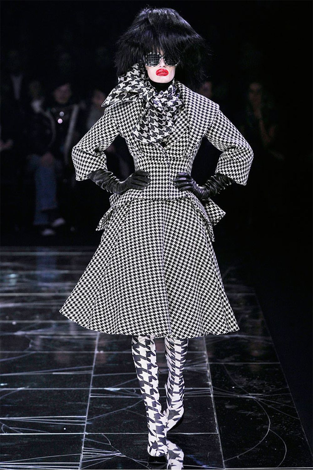 Corre l’anno 1950 ed il pied-de-poule diventa principale decorazione del primo profumo della maison francese Miss Dior. Christian Dior è il primo couturier ad utilizzarlo, consacrando il fascino della fantasia all’alta moda che da quel momento la adotta sempre più spesso. Negli anni ‘60, il pied-de-poule entra nello scenario della cultura pop grazie al del movimento dell’Optical Art, corrente artistica britannica concentrata sulle illusioni ottiche, guadagnando anche posto tra le visioni da passerella di Roberto Capucci. Su tessuti di abbigliamento invernale, sportivo o elegante, come sulle passerelle del 1992 di Oscar de la Renta, il pattern arriva fino agli anni ‘90 avvolto da un’allure bon-ton, che mantiene fino al 2009, anno in cui Alexander McQueen lo stravolge utilizzandolo su tutti i capi indossati dalle modelle, mantenendo l'estetica visionaria tipica delle sue collezioni.