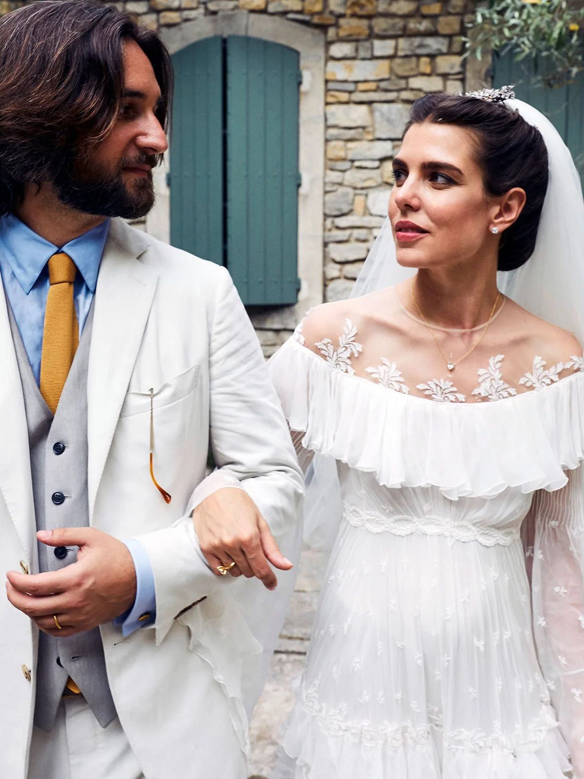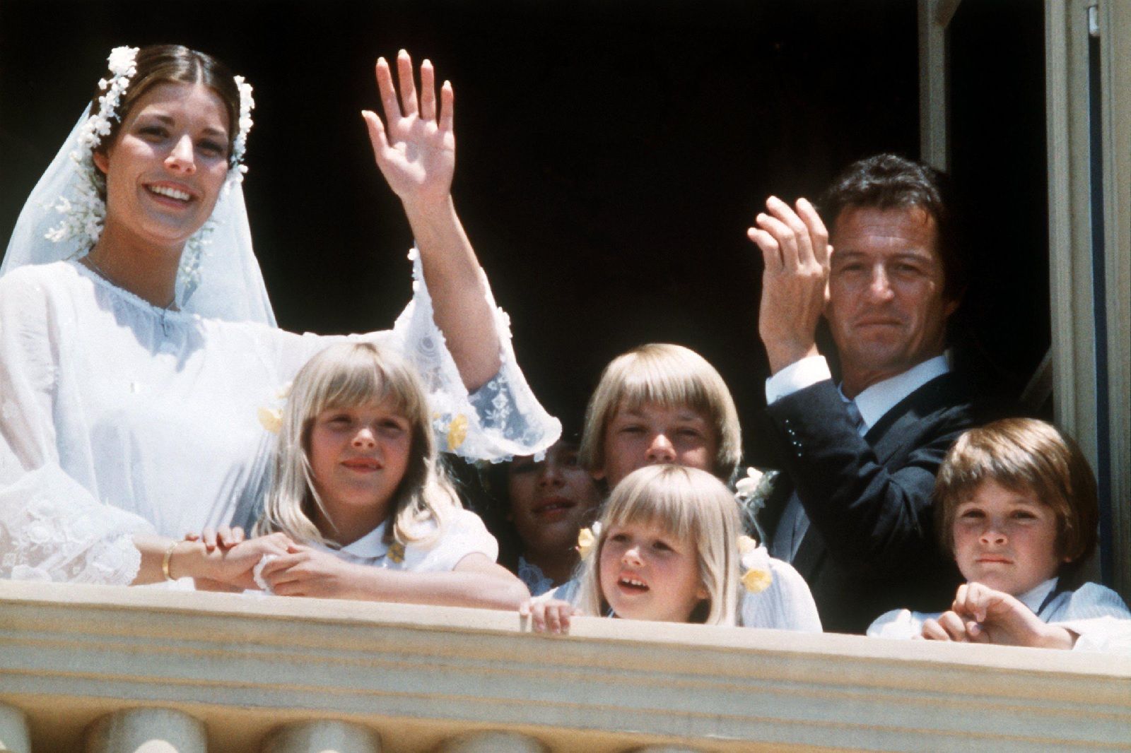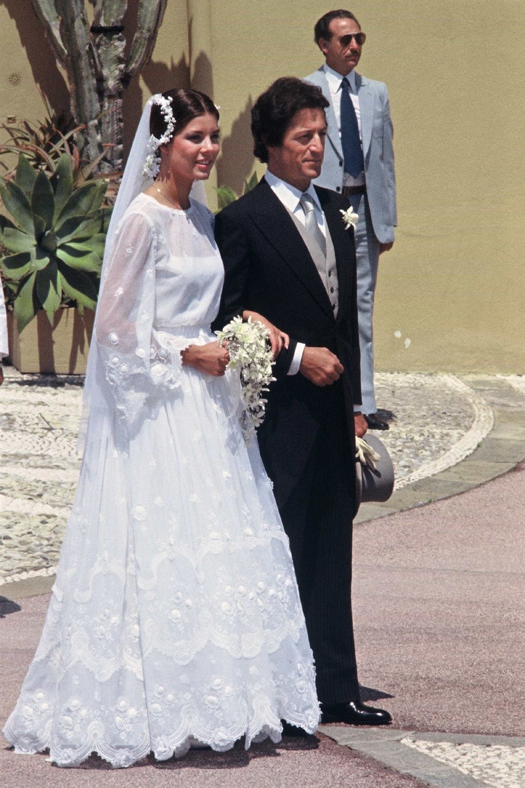 Il vestito: il matrimonio è durato solo un paio d’anni, ma il suo look è indimenticabile. Carolina di Monaco è andata all’altare con un abito boho-chic Dior by Marc Bohan in pizzo francese rifinito da passamaneria e fiori realizzati a mano. I fiori adornavano anche l’acconciatura, un doppio bun che ricordava la Giulietta di Shakespeare.