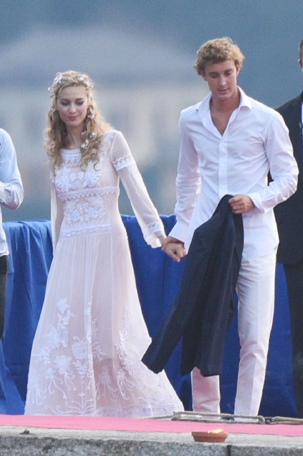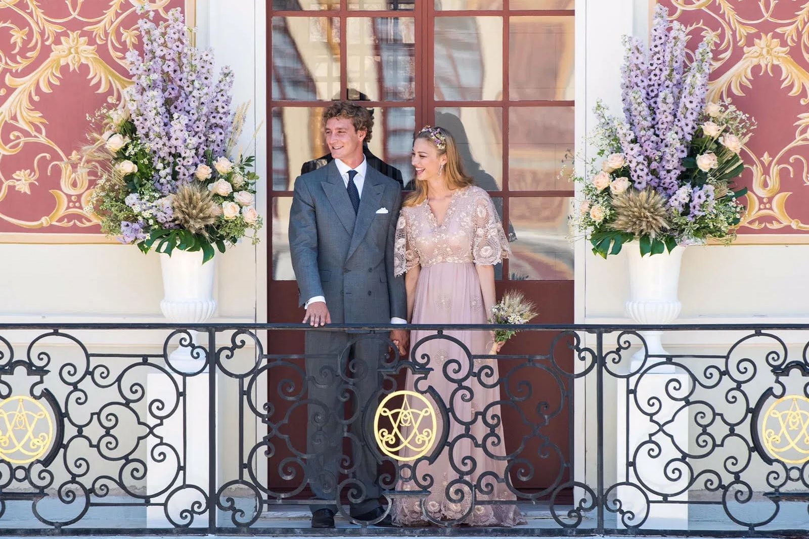 Il vestito: Beatrice Borromeo ha cambiato ben 5 outfits per il suo matrimonio. Per la cerimonia civile ha indossato un etereo long dress color malva di Valentino Haute Couture; seguito da un abito bianco ed argento, sempre della Maison Valentino, per l’evening party all’Hotel de Paris. Nuova location (Stresa) e nuovi look: un abito romantico e boho di Alberta Ferretti per accogliere gli ospiti al pre-party tenutosi il giorno prima delle nozze; un modello di Armani Privè in pizzo chantilly color avorio con le maniche a tre quarti e lo scollo tondo per la cerimonia religiosa; mentre per l’after party ha optato per un altro Armani bianco in tulle di seta, con profonda scollatura a V, impreziosito da micro drappeggi sul corpetto e da un lungo strascico in tulle di seta plissé.
