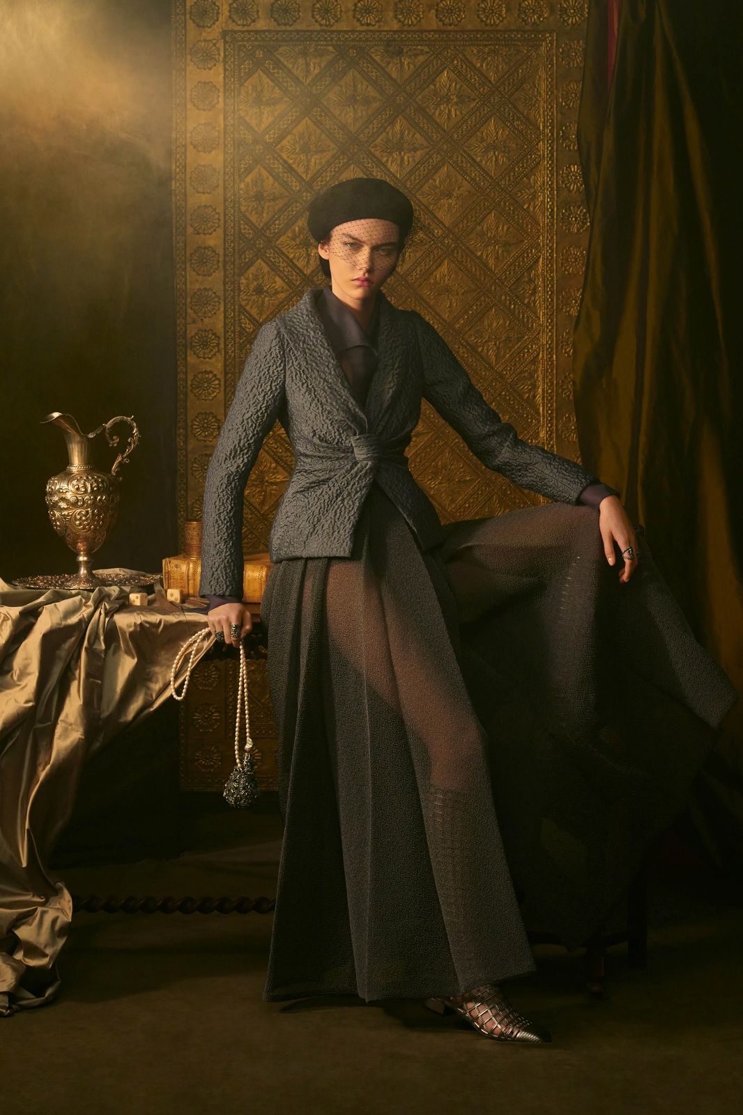 Spiega Maria Grazia Chiuri, paragonando i sentimenti di paura e incertezza verso il futuro che proviamo in questo periodo con l’esperienza avuta da Christian Dior durante la Seconda Guerra Mondiale, quando si affidava alla divinazione per avere notizie della sorella Catherine, membro della Resistenza francese, deportata nel campo di concentramento di Ravensbrück.