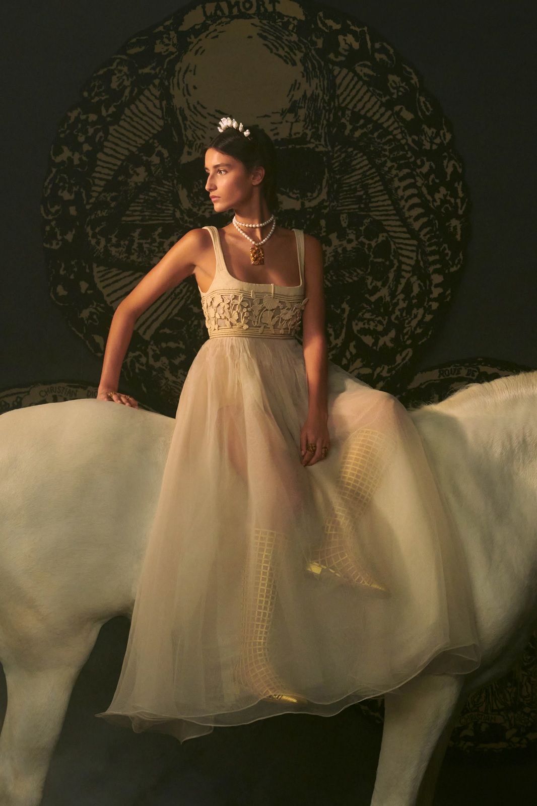 Si racconta che Monsieur Christian Dior fosse un uomo molto superstizioso, tanto da prediligere il numero 8 perché ritenuto beneaugurante o da avere l’abitudine di cucire rami di mughetto nei nuovi vestiti di ogni sfilata per assicurarsi il successo delle sue creazioni. Queste piccole pratiche scaramantiche quotidiane si aggiungevano ad una passione più profonda per l’occultismo e per il mondo dei tarocchi che ha ispirato la collezione Haute Couture SS21 di Dior.