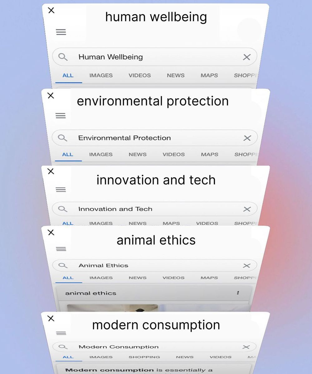 "È importante per il consumatore conoscere i valori dietro i marchi che acquista, e farsi delle domande come: Cosa c’è all’interno del prodotto? Da dove arriva? Quali sono la filosofia e i valori di questo marchio? Bisogna essere curiosi. Le possibilità ci sono, si possono trovare tante alternative. Bisogna scoprirle e poi provare.”