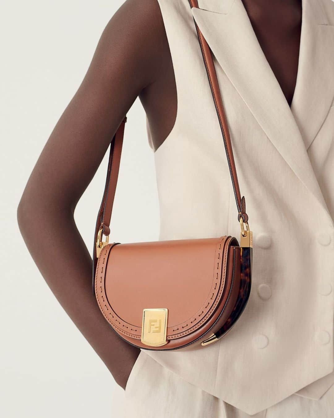 Silvia Venturini Fendi l’aveva portata per la prima volta in passerella durante la sfilata della collezione SS21, ed ora la Moonlight Bag è finalmente arrivata nei negozi. Sicuramente la nuova borsa satchel, con la sua silhouette versatile, perfetta per ogni outfit, sarà un must-have della prossima stagione. Le caratteristiche? Tracolla regolabile; struttura rotonda, impreziosita sui lati da dettagli rigidi effetto tartaruga; patta frontale decorata con impunture a mano e chiusura metallica con l’iconico logo FF. Su Instagram le influencer sfoggiano già la Moonlight Bag in tutti i suoi colori, dall’azzurro pastello al verde oliva, ma, soprattutto, nella versione marrone.