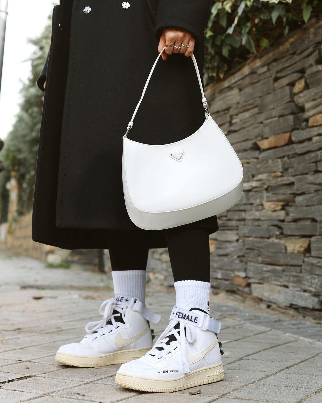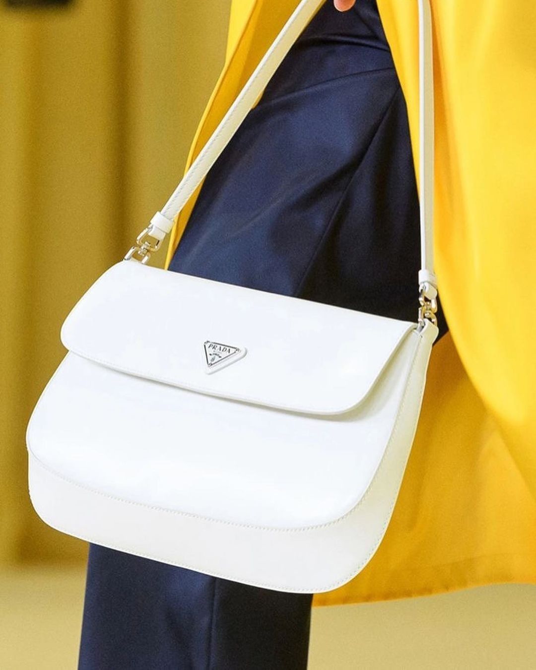 Dopo aver spopolato negli ultimi mesi con Re-Nylon, Prada ha presentato durante la sfilata Multiple Views un nuovo accessorio destinato a diventare must-have della stagione calda. La Cleo Bag è già tra le preferite di influencers come Chiara Ferragni, Gilda Ambrosio e Caro Daur che la hanno scelta per le sue linee pulite e minimali. Nata come reinterpretazione del design di Prada negli anni ’90 e definita una perfetta "sintesi di classicismo e futurismo", la hobo è caratterizzato da una forma leggermente arrotondata sul fondo e ai lati. Pensata per essere indossata in modi diversi, appoggia sopra la spalla o come fosse una pochette, è declinata non solo nei classici bianco e nero, ma anche in rosa pastello e verde acqua.