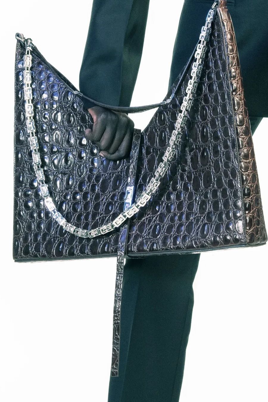 La prima collezione di Matthew Williams come direttore creativo di Givenchy nasconde una delle it-bag della prossima stagione. Si chiama Cut-Out ed è caratterizzata da linee affilate, spezzate, che ripropongono la forma di una "V" nella parte superiore. Completano il look aggressivo dell’accessorio la tracolla a catena formata da tante "G" intrecciate tra loro. La nuova bag è declinata in un’ampia gamma di colori: dal marrone al rosa, dal panna al viola.