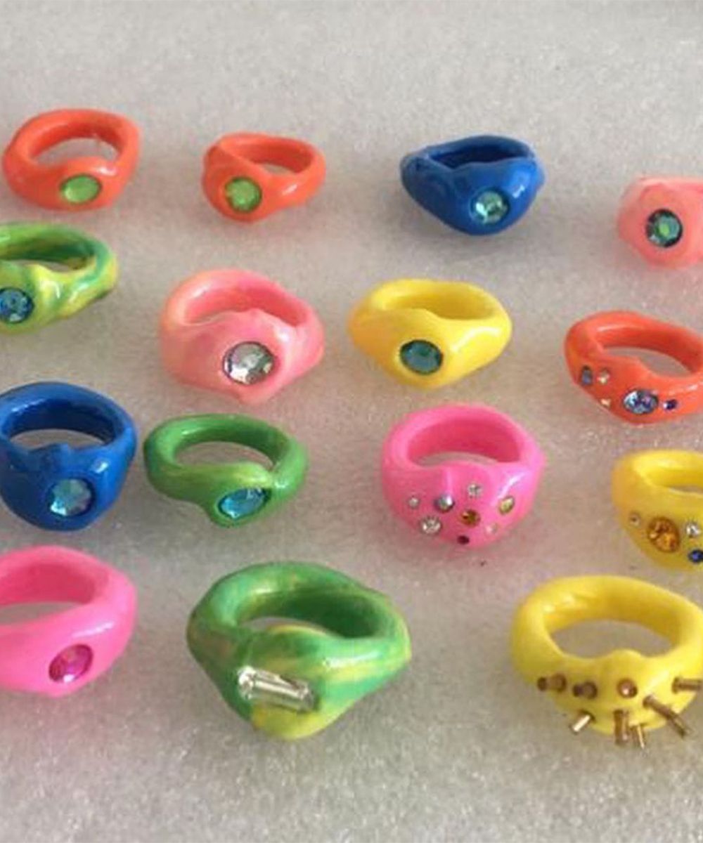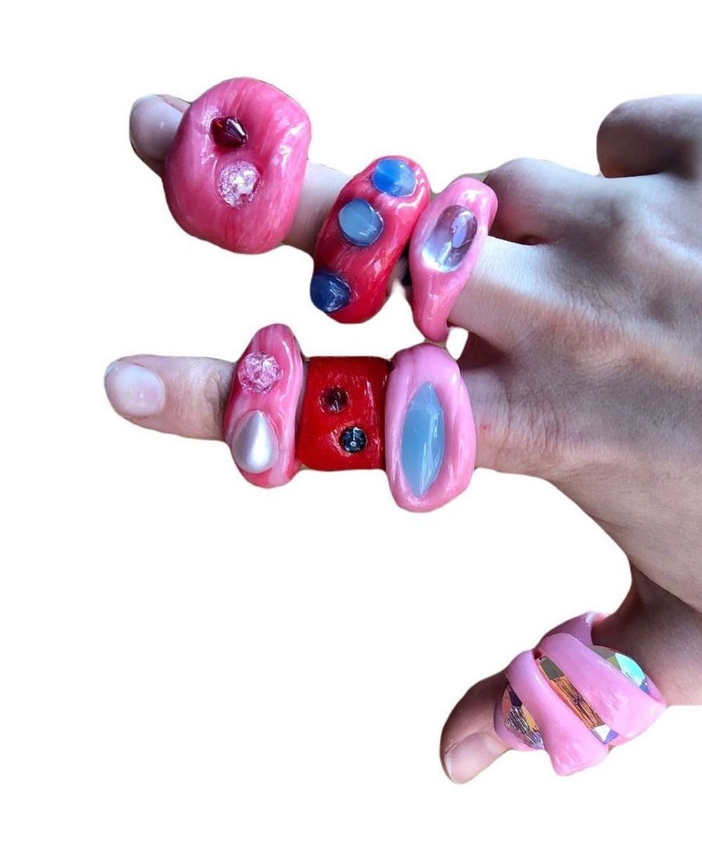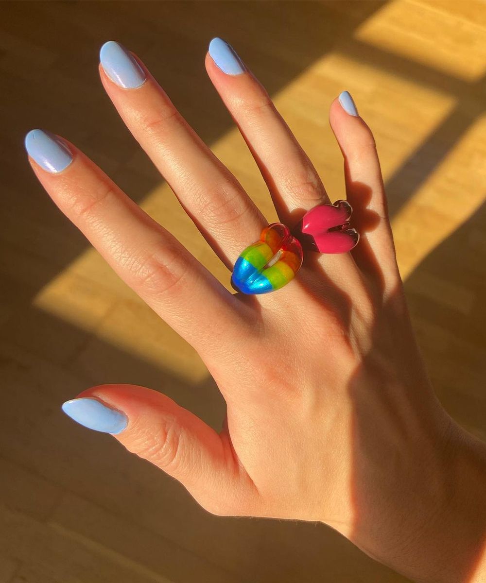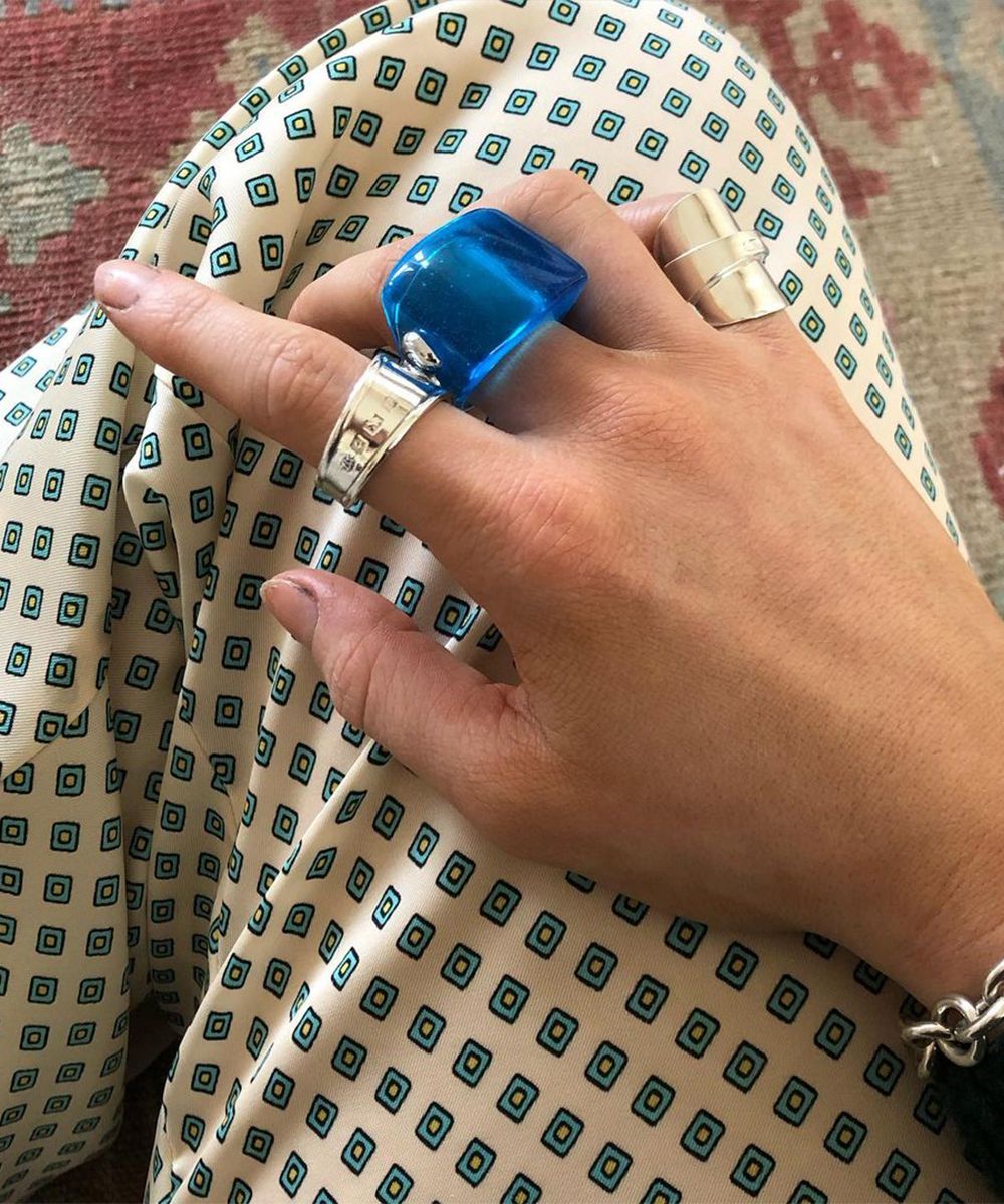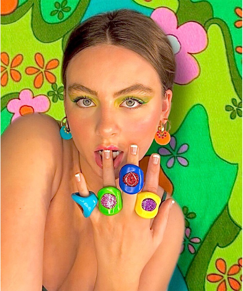 Sono per la maggior parte tutti pezzi unici, realizzati a mano, che spesso nascono dal dialogo tra l’artista e il suo commissionario. In Italia dobbiamo ringraziare Jupiter per averci fatto re-innamorare di questi anelli. Un brand nato nel periodo di lockdown dall'idea di Letizia Bettoni di creare una sintesi ibrida tra design del gioiello e creatività infantile: i suoi anelli si possono ordinare direttamente con un messaggio su Instagram. Rings-à-porter realizzati in un polimero plastico che ricorda la creatività dei bambini sempre con le mani in pasta, alla scoperta di forma e colore. A spopolare, worldwide, anche La Manso, brand amatissimo da Bella Hadid. E per chi storce il naso al pensiero della plastica intorno alle dita, non possiamo promettere un prodotto eco-sostenibile ma che, se acquistato perché piace ed evoca ricordi gioiosi, rimarrà con voi per tantissimo tempo. Il loro è un inno al self-care e al self-love, fanno sentire più cool e sì, anche più potenti. Pezzi unici, nati per aggiungere un tocco pop e divertente ad ogni look.
