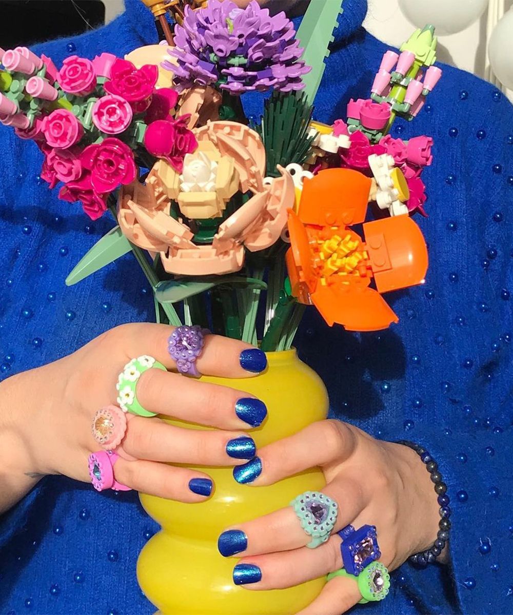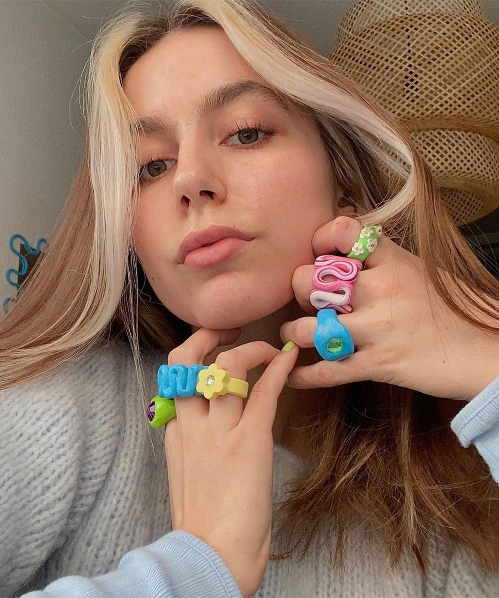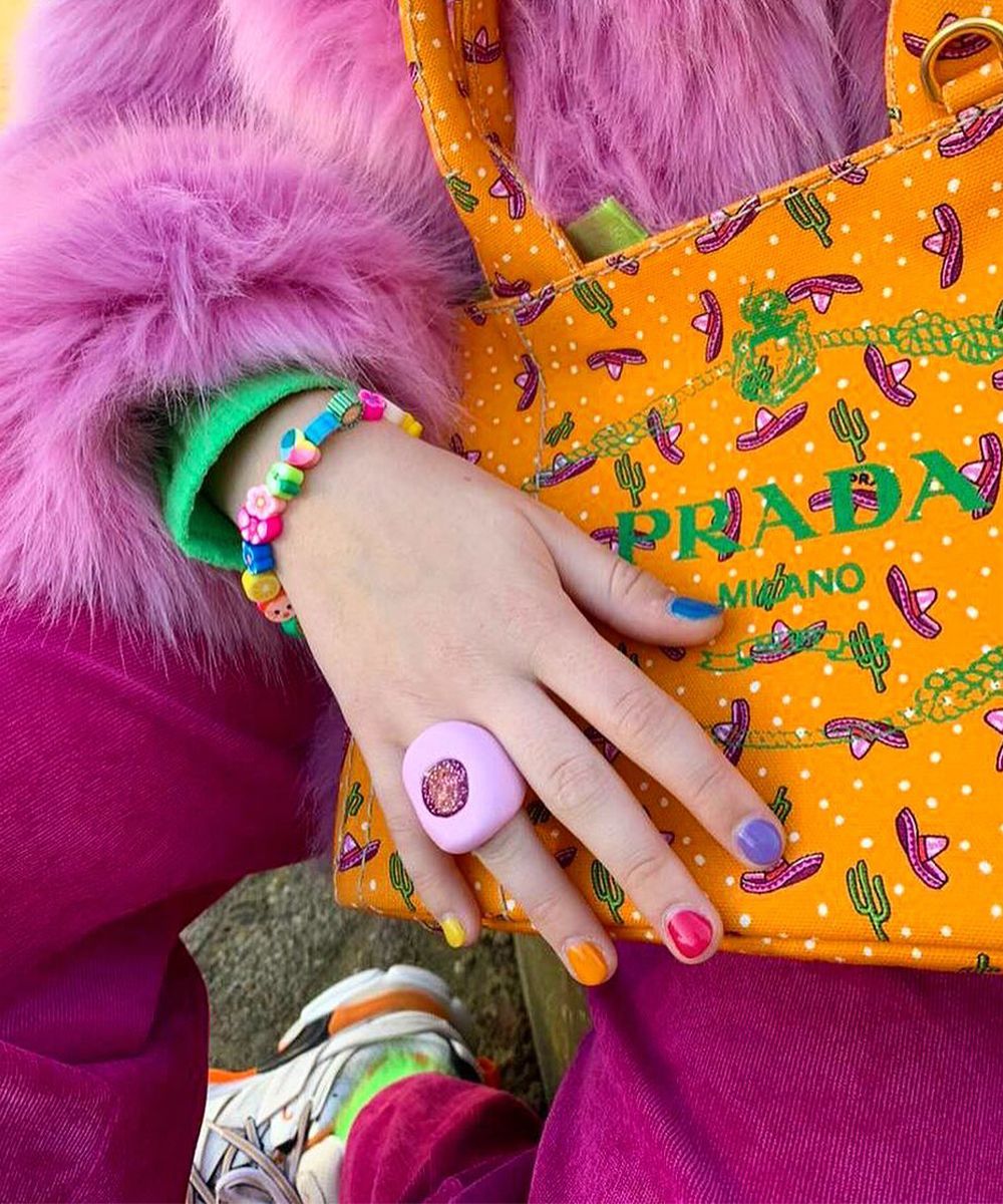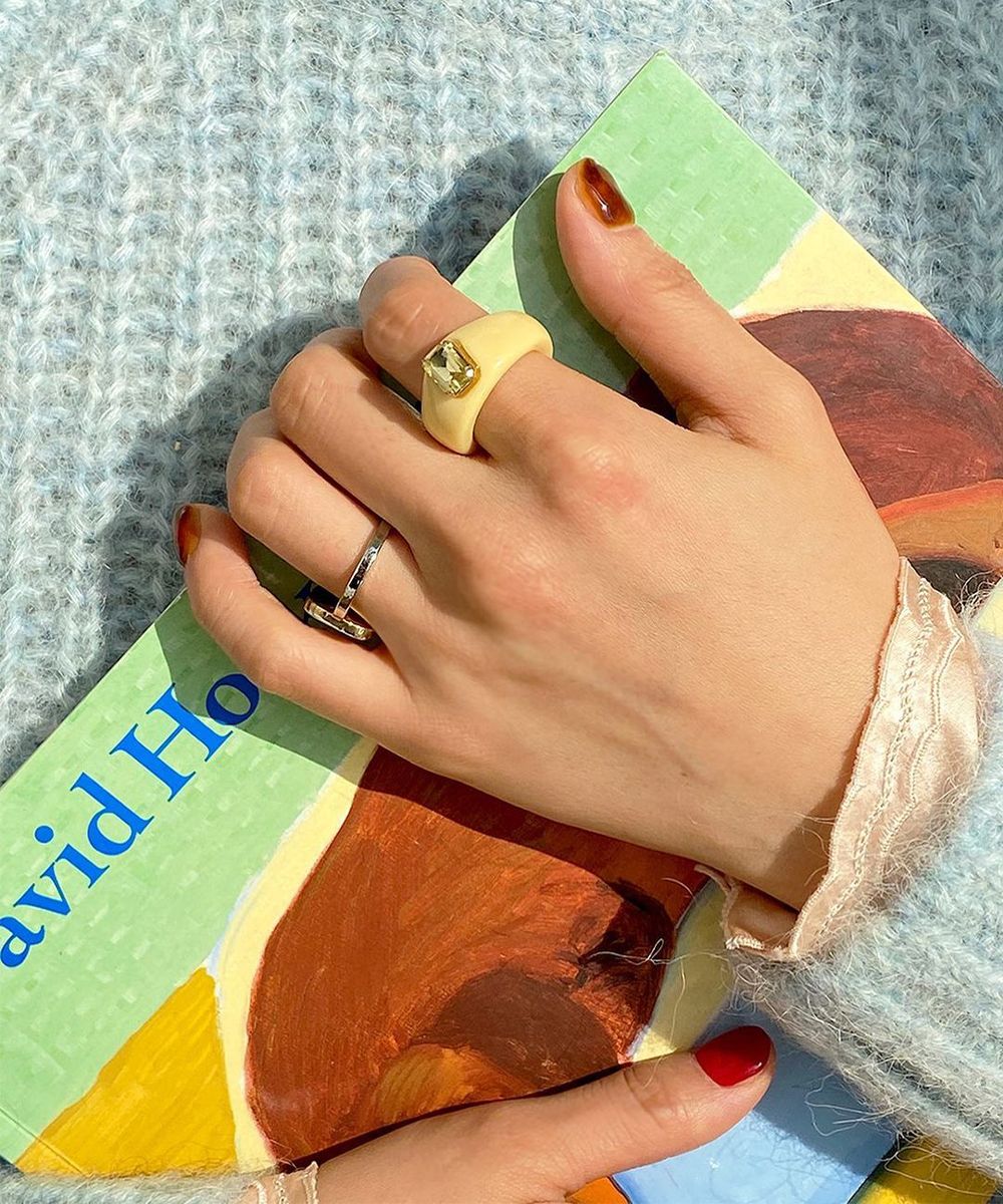 Sono per la maggior parte tutti pezzi unici, realizzati a mano, che spesso nascono dal dialogo tra l’artista e il suo commissionario. In Italia dobbiamo ringraziare Jupiter per averci fatto re-innamorare di questi anelli. Un brand nato nel periodo di lockdown dall'idea di Letizia Bettoni di creare una sintesi ibrida tra design del gioiello e creatività infantile: i suoi anelli si possono ordinare direttamente con un messaggio su Instagram. Rings-à-porter realizzati in un polimero plastico che ricorda la creatività dei bambini sempre con le mani in pasta, alla scoperta di forma e colore. A spopolare, worldwide, anche La Manso, brand amatissimo da Bella Hadid. E per chi storce il naso al pensiero della plastica intorno alle dita, non possiamo promettere un prodotto eco-sostenibile ma che, se acquistato perché piace ed evoca ricordi gioiosi, rimarrà con voi per tantissimo tempo. Il loro è un inno al self-care e al self-love, fanno sentire più cool e sì, anche più potenti. Pezzi unici, nati per aggiungere un tocco pop e divertente ad ogni look.