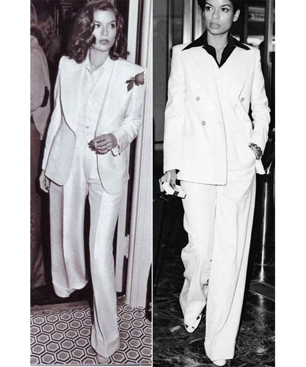 Un capo che Bianca portava in modo impeccabile e timeless erano sicuramente i completi suit (uno dei suoi pezzi preferiti), che ha indossato innumerevoli volte per le strade di New York, in discoteca e, come anticipato, anche al suo matrimonio.