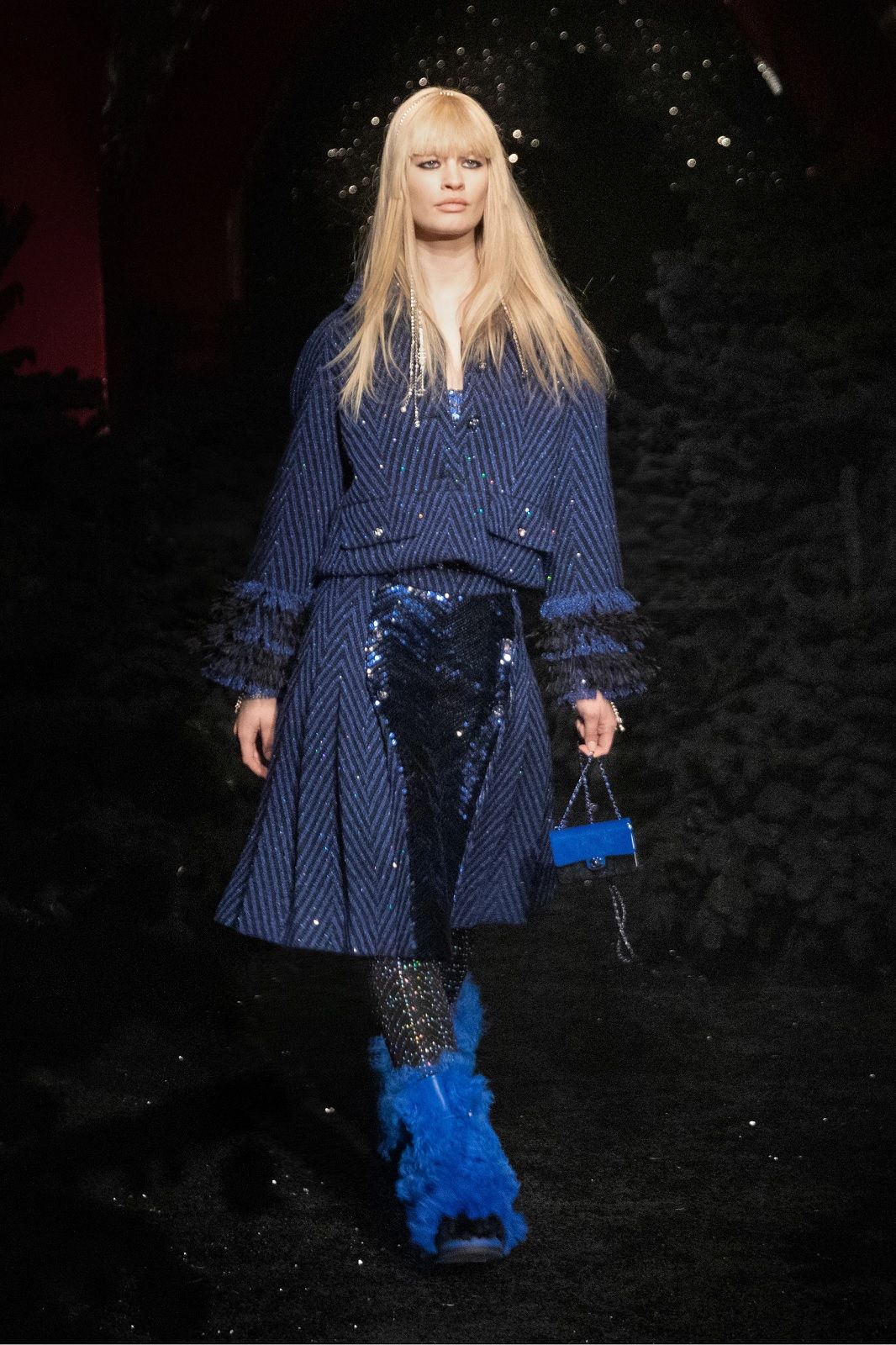 On the catwalk: in blu, declinati in tutte le sue diverse gradazioni che vanno dal tono notte all'elettrico, i raffinati completi di Armani, i piumini di Tods, i mini dress di Coperni o i cappotti a doppio petto di Prada diventano i nuovi essential di stagione. Se volete dargli un twist più luminoso, abbinatelo con accessori e dettagli fucsia e argento o provate l’intramontabile accoppiata tra blu e nero lanciata da Yves Saint Laurent.