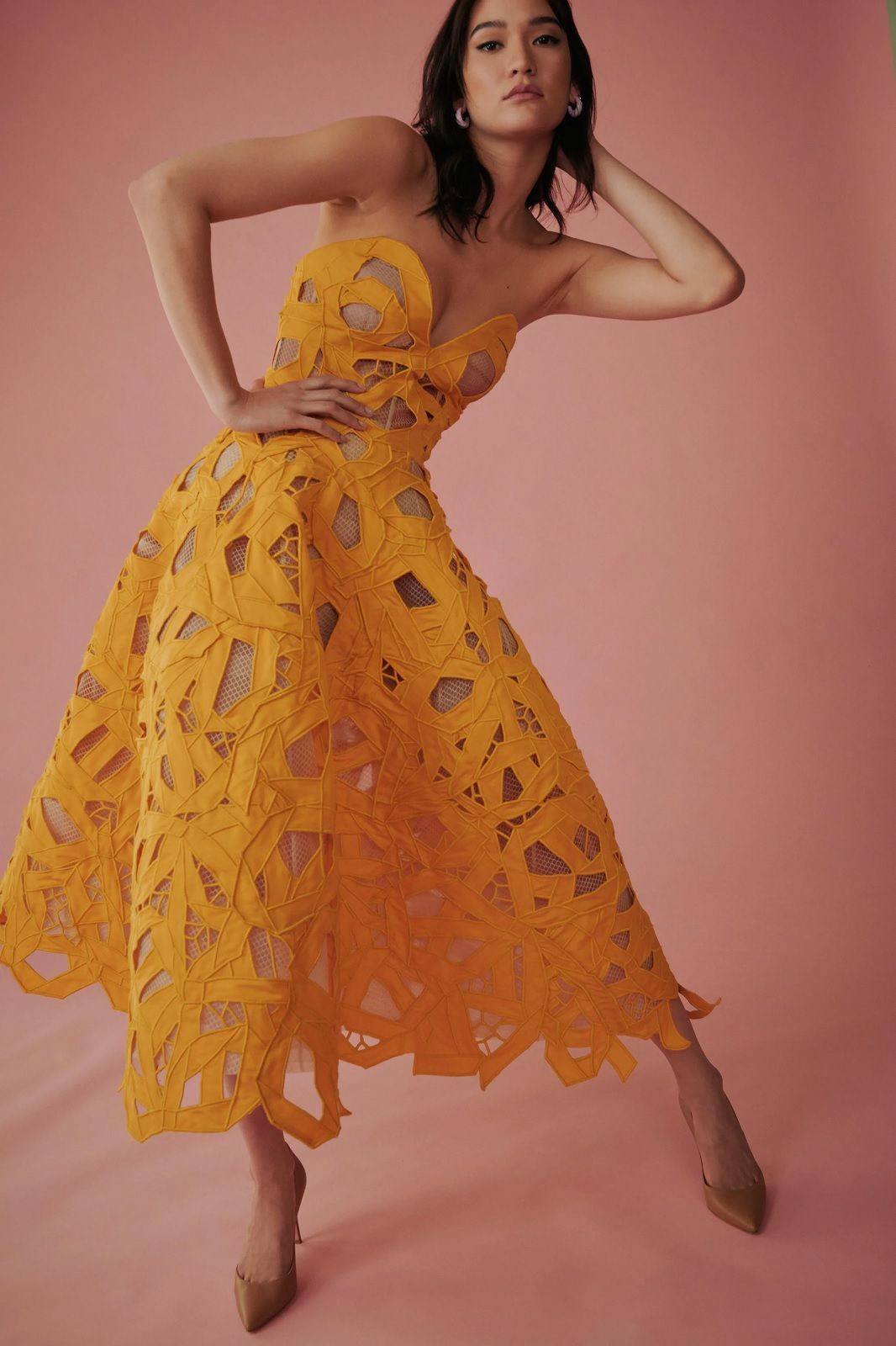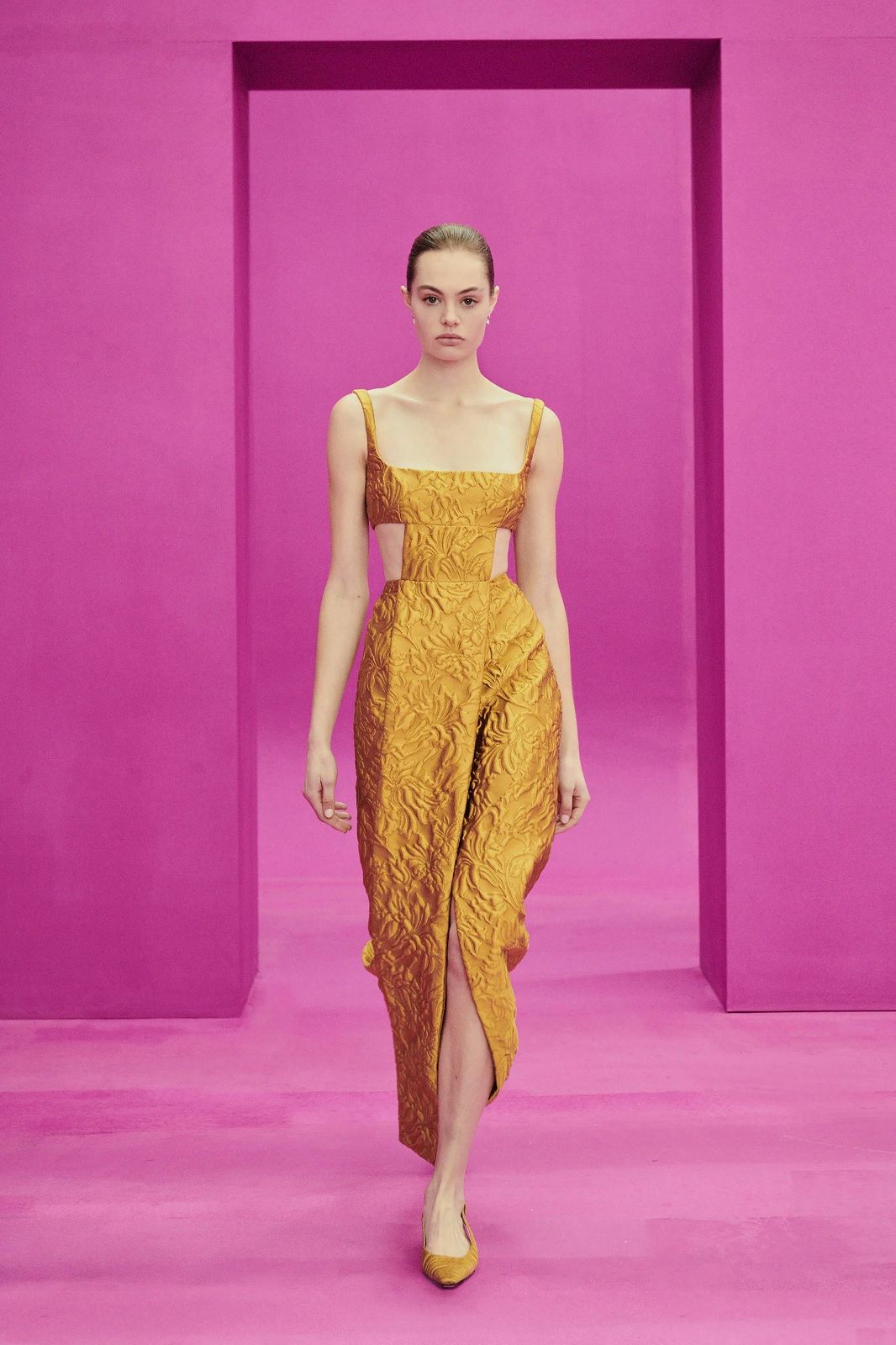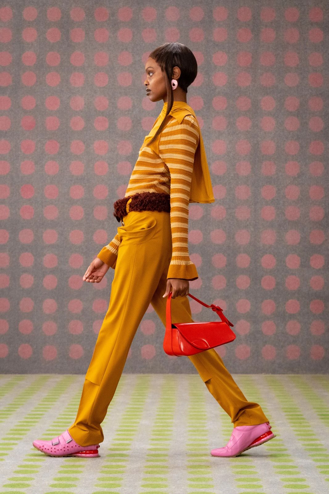 On the catwalk: per le stagioni fredde, il colore protagonista del 2021 acquista una nuova intensità che infonde calore e positività ai maglioni cozy di Max Mara, ai long dress di Ottolinger o ai completi anni ’40 di Moschino, ma può degradare fino alla versione pale scelta da Prada per i suoi cappotti oversized e da Blumarine per i suoi cardigan cropped.