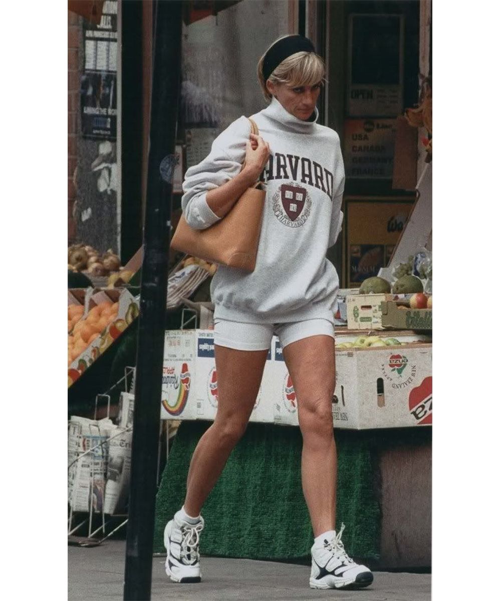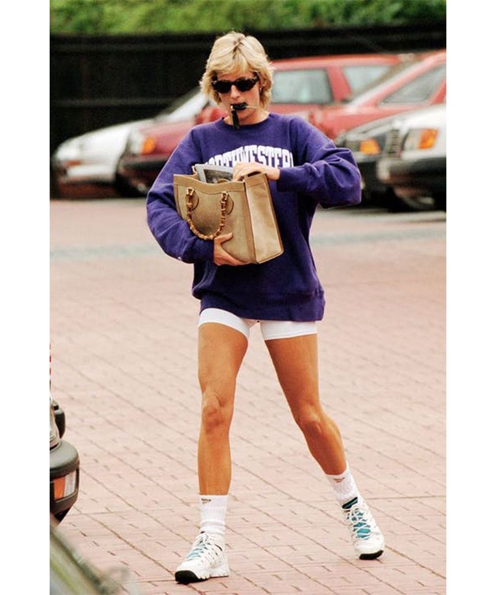 Maestra da seguire: Hailey Bieber, che vi insegnerà come andare a prendere un centrifugato di verdure con lo stesso look che indossereste per andare a Pilates, ma più fashion! Quindi mini-cycling pants, felpa over e sneakers. Aggiungere poi una Gucci vintage se si vuole avere la stessa disinvoltura di Lady D!