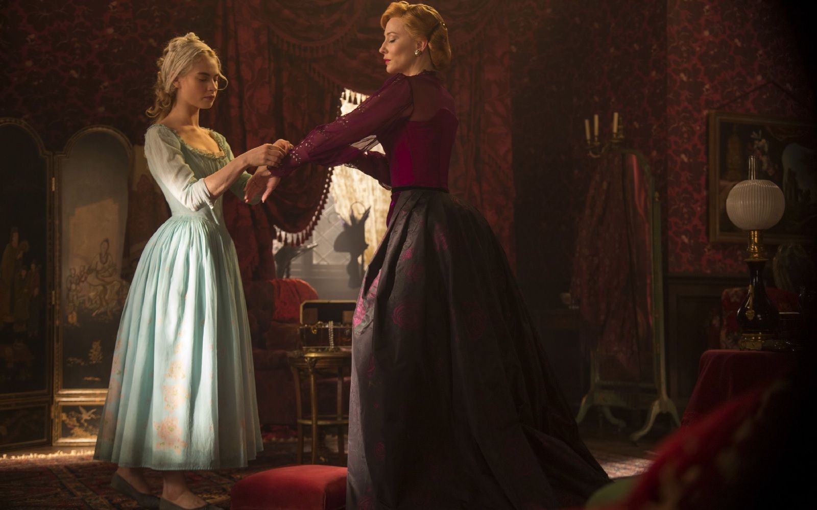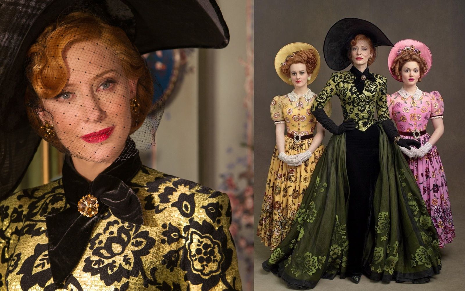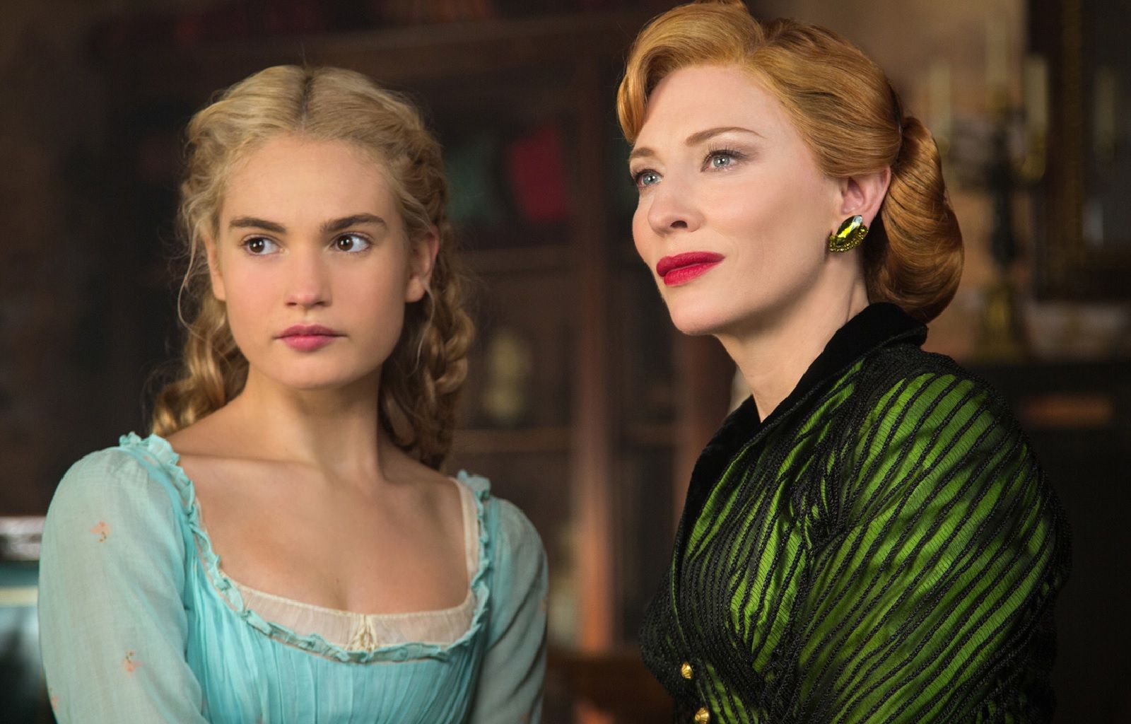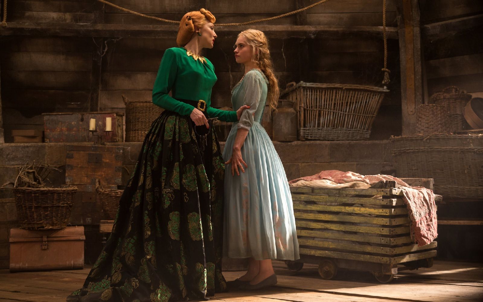 Nella fiaba originale di Perrault, Lady Tremaine è una donna vedova con due figlie, che si risposa con il padre di Cenerentola e tratta la figliastra come una schiava. Maliziosa, crudele, avida, arrogante, vanesia, disposta a tutto pur di favorire le sue Anastasia e Genoveffa, la matrigna più famosa e temibile delle favole si trasforma in una donna matura algida ed elegante nella versione Disney: capelli grigi pettinati a cuore in stile Pompadour; abiti vittoriani, generalmente cremisi o viola, con maniche a palloncino e merletti; orecchini, anello e spilla dello stesso verde dei suoi occhi; bastone per sorreggersi con grazia. La Lady Tremaine interpretata da Cate Blanchett nel live-action di Cenerentola del 2015, invece, è una donna che incarna perfettamente il glamour della Hollywood degli anni ’40 e attrici iconiche come Joan Crawford o Marlene Dietrich. Porta in giro il gatto al guinzaglio, fa colazione in vestaglia animalier, ama tutte le sfumature del verde invidia, indossa cappelli esagerati e leziose velette, pesanti abiti in raso e taffetà declinate in tonalità sature di verde, giallo e rosso, scelti dalla costumista Sandy Powell per suggerire un’idea di veleno e pericolo.