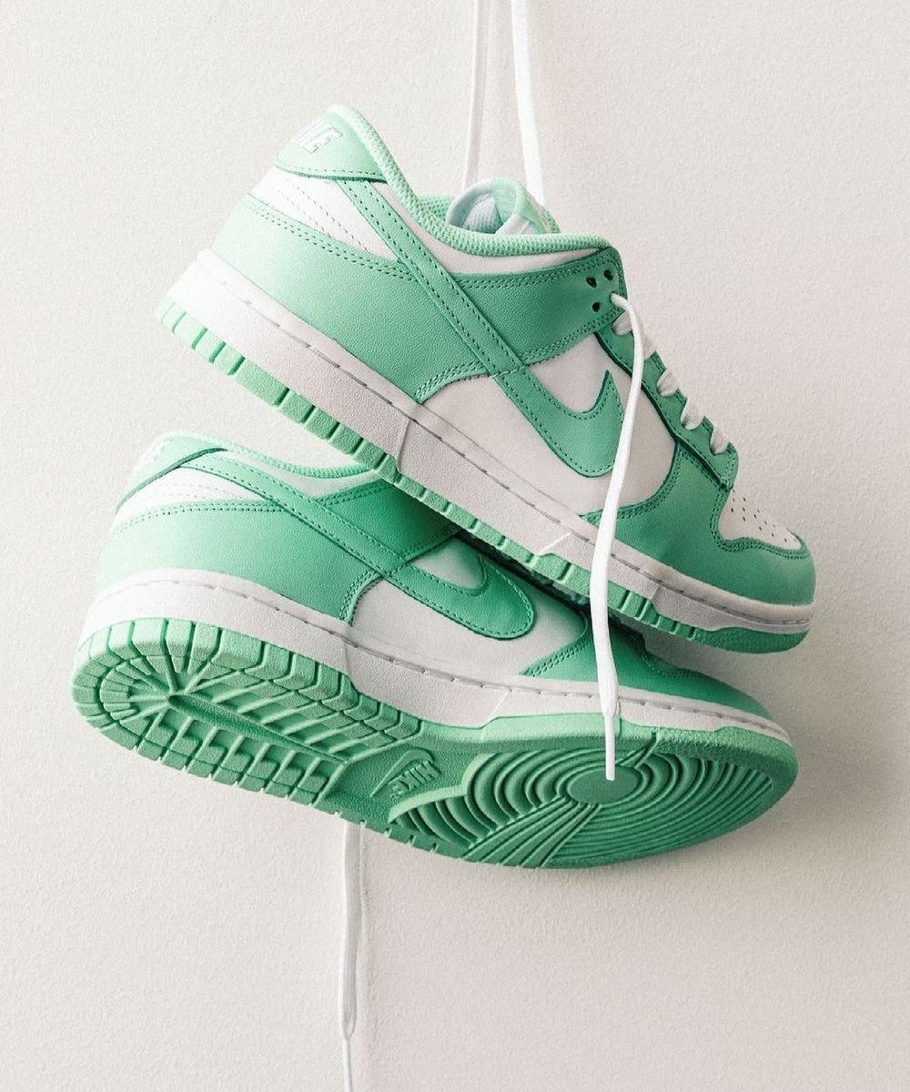 Le Nike Dunk Low "Green Glow" sono forse le più cool in arrivo. Ogni addicted dei colori pastello le vorrà e le abbinerà con tutto: dai pantaloni cargo alle tennis skirt, dai jeans ai mini dress. Il segreto del loro appeal? Un mix di bianco e verde menta, come un gelato che rinfresca dalle prime giornate di sole primaverili.