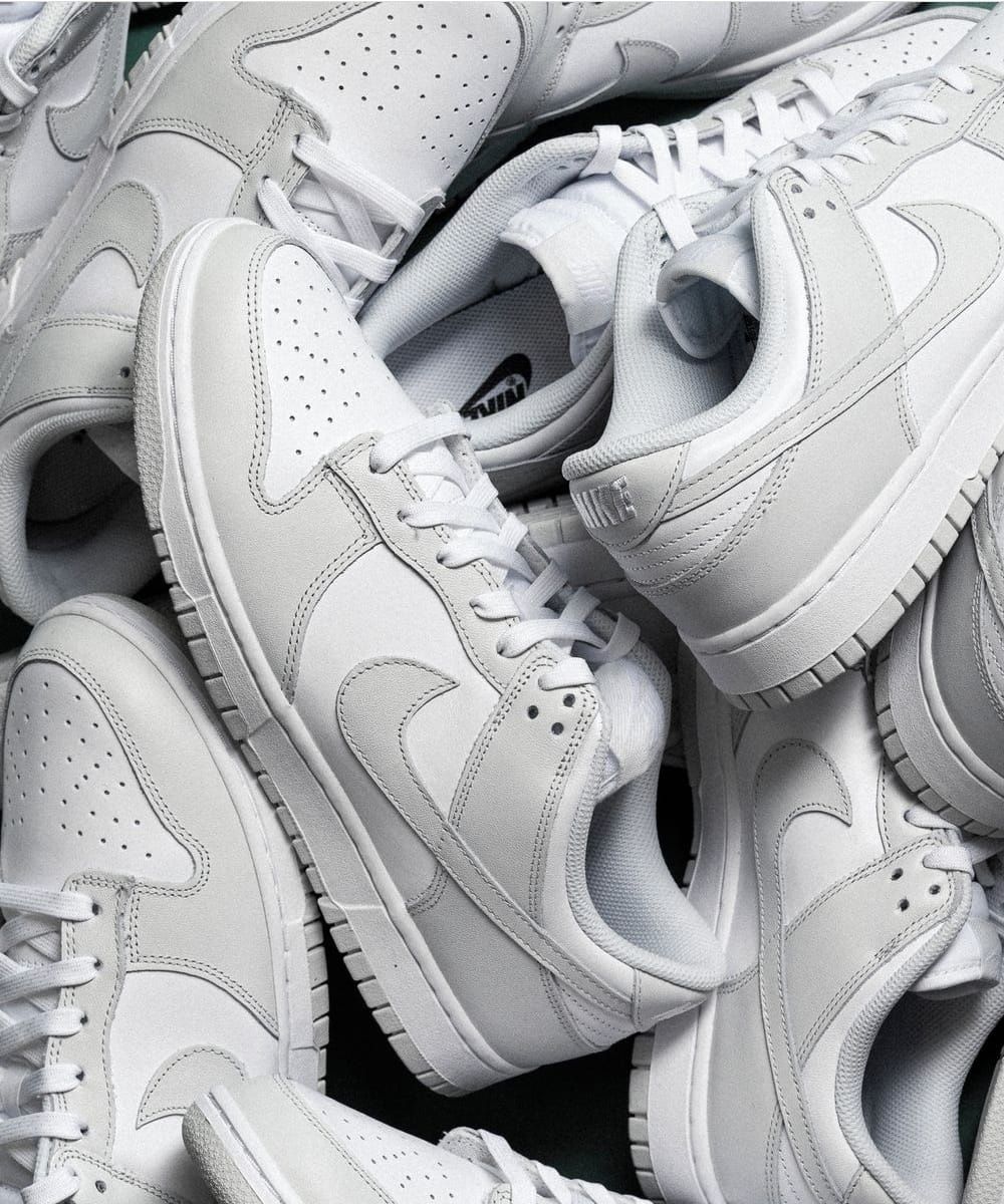 Se preferite i look più basic e minimal, la scelta giusta sono le le Nike Dunk Low "Photon Dust". Nata come riedizione della Vast Grey presentata agli sneakerhead lo scorso gennaio in versione High, la nuova scarpa declina il classico effetto color block in un mix di grigio e bianco che si adatta perfettamente con moltissimi outfit, anche con i più sofisticati.