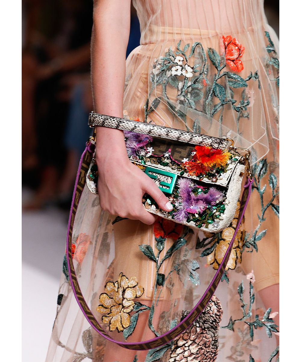 L’iconica borsa fa il suo debutto nella collezione Fall/Winter 1997-98 per ingegno di Silvia Venturini Fendi, all’epoca direttore creativo degli accessori e braccio destro di Karl Lagerfeld, e ad oggi a capo della divisione accessories e abbigliamento maschile. La blasonata griffe di famiglia, fondata nel 1925 dai nonni Adele e Edoardo, ancora lontana dall’orbita dei conglomerati d’Oltralpe, le aveva chiesto di disegnare un accessorio che rispecchiasse non solo il DNA della maison ma anche lo spirito minimale dell’alta moda anni ’90. La creativa in un atto di disobbedienza, come definito da lei stessa tempo dopo, decide invece di creare questa borsa vistosa, giocosa, e unica, perché ogni versione è diversa dalla precedente. Una sfida, ma anche un’intuizione, perché la Baguette che fa l’occhiolino al cliché francese del filone di pane sotto al braccio, destinata ad apparire indosso alle celebrità più glamour degli ultimi 24 anni.