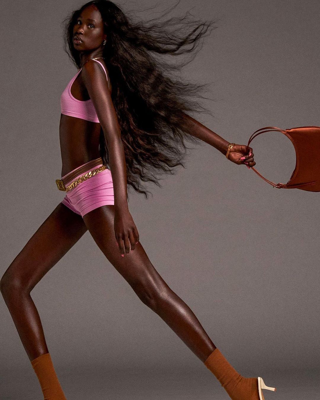La collezione comprende 9 pezzi: felpe cropped col cappuccio, joggers, top a maniche lunghe, t-shirt, shorts, costumi da bagno dalle vibes anni ’90, body e top a costine senza cuciture. Tutti, ovviamente, declinati in rosa pastello, con tocchi di pesca e bianco.