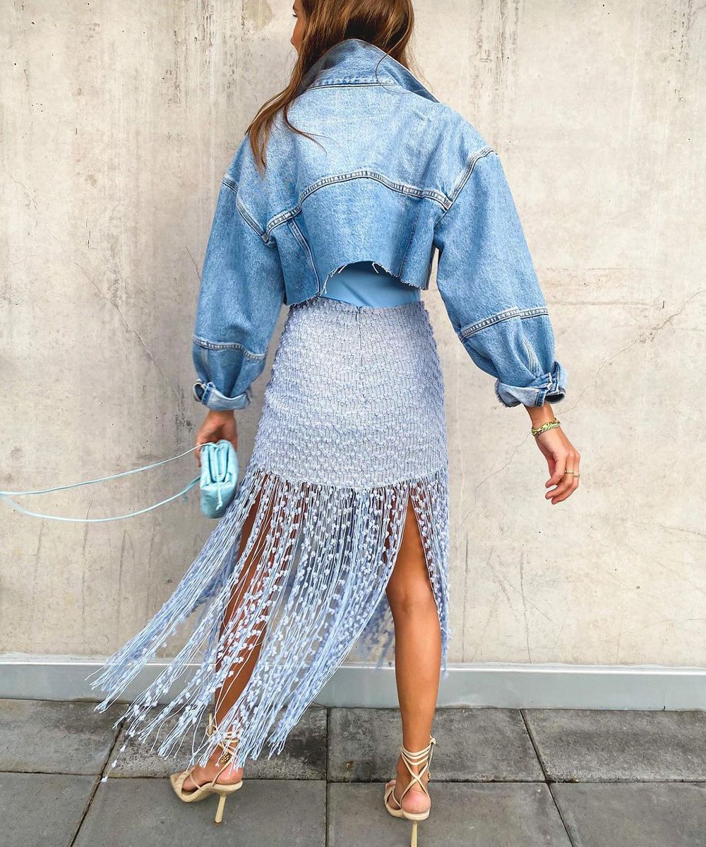 È già iniziata la primavera e siamo in quella fase per cui ogni giorno ci domandiamo "come mi vesto?" e "sarò troppo coperta? o è meglio portarsi una giacca?", vista l'incertezza di questo clima di mezza stagione. C'è chi ha già gonne e shorts in primo piano nell'armadio, pronti per essere indossati, e chi ancora non vuole ritirare maglioni e felpe per le giornate più fresche o quelle nuvolose. La soluzione sta nel combinare e mixare capi delle diverse stagioni e vestirsi a strati. Uno degli item perfetti per questo periodo è la giacca in denim, che ogni anno torna in nuove versioni, con tagli, forme e abbinamenti diversi. Quindi, con quali capi e accessori abbinarla? nss G-Club ha preparato una guida al perfetto match della giacca di jeans, in tre versioni diverse: giacca cropped, oversized e outfit denim all over.