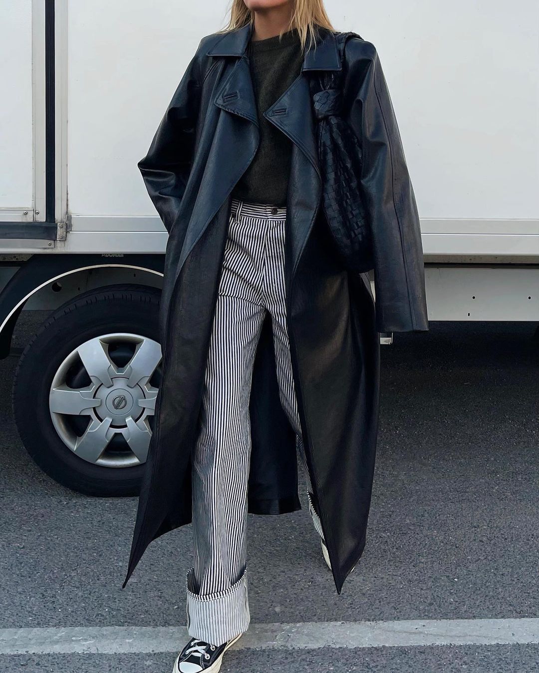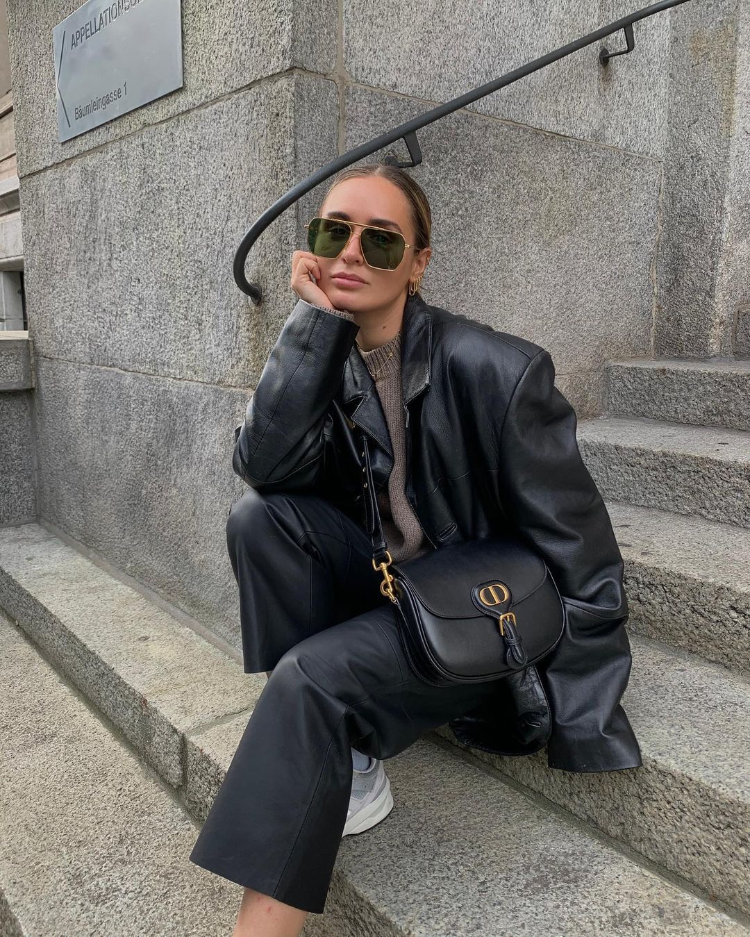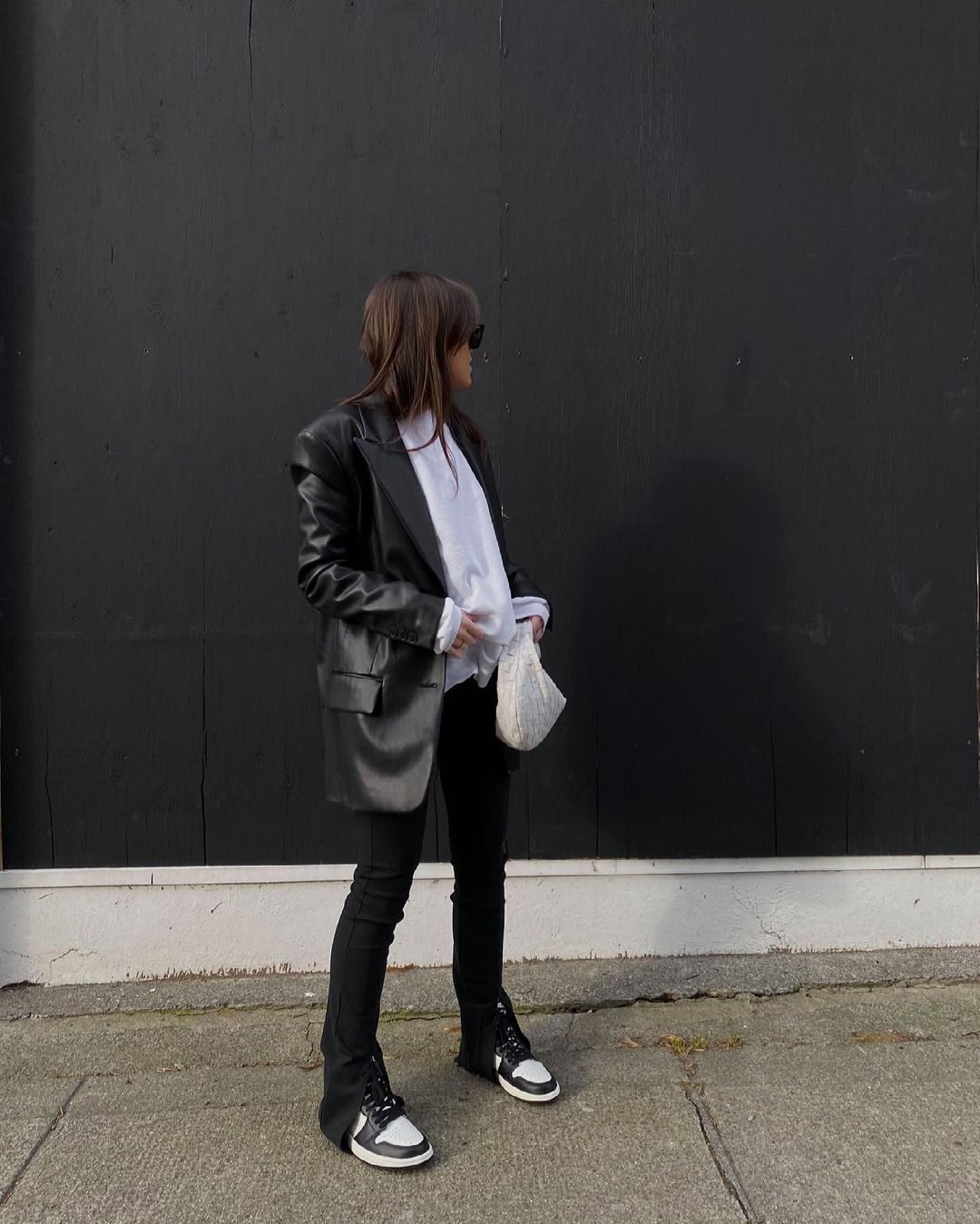 Non passa molto tempo e la giacca di pelle inizia a comparire anche in passerella: pioniere è stato Yves Saint Laurent che per primo fece della biker jacket un capo di haute couture come direttore artistico di Christian Dior. Ai tempi questa scelta non fu apprezzata, e Saint Laurent fu licenziato. Oggi invece la biker jacket e le diverse declinazioni della giacca di pelle sono parte integrante delle collezioni di alta moda - da Chanel a Versace, da Celine a Saint Laurent - così come dei brand emergenti e più commerciali. Questa primavera torna in diverse varianti: dal leather coat alla classica biker jacket, fino alle versioni più sartoriali, e soprattutto anche in materiali riciclati o vegan. Così nss G-Club ha realizzato una guida al perfetto match della giacca in pelle, in tre versioni diverse: biker, blazer e coat.