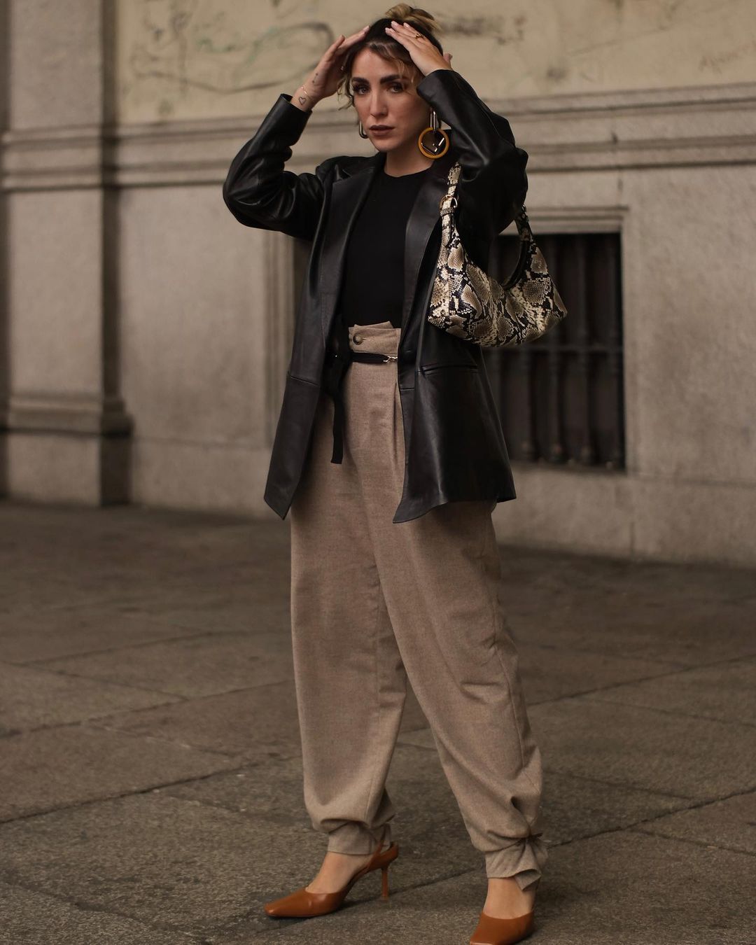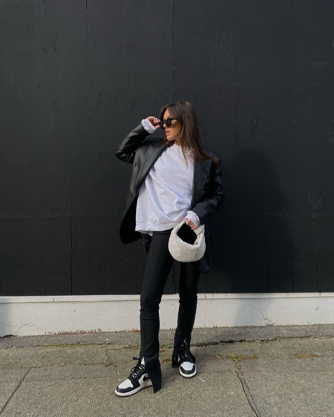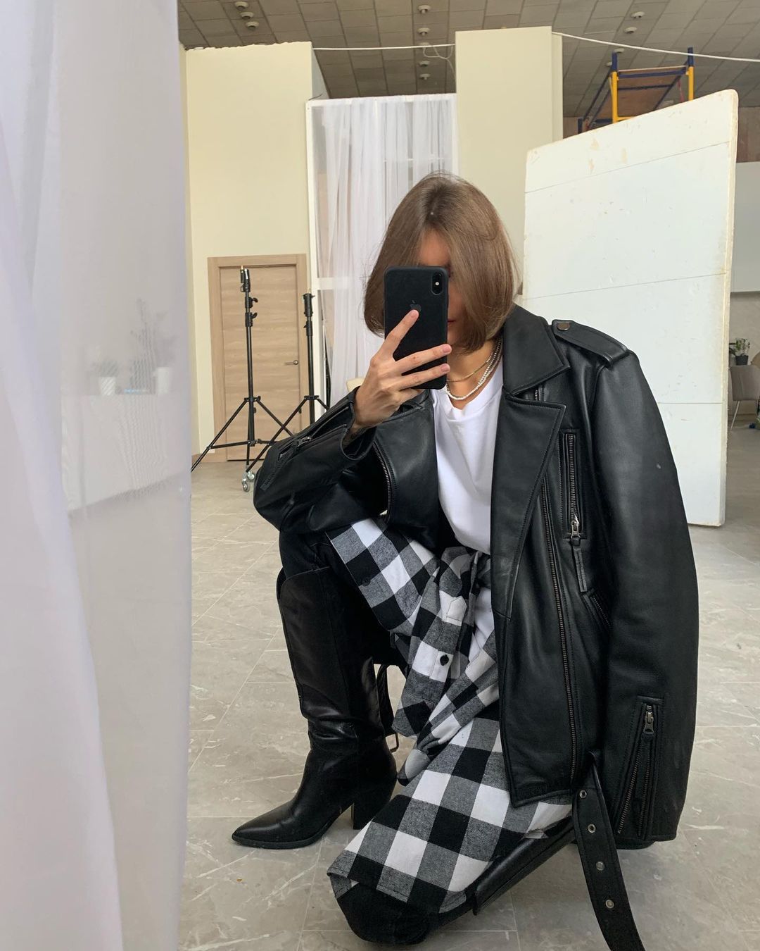 Non passa molto tempo e la giacca di pelle inizia a comparire anche in passerella: pioniere è stato Yves Saint Laurent che per primo fece della biker jacket un capo di haute couture come direttore artistico di Christian Dior. Ai tempi questa scelta non fu apprezzata, e Saint Laurent fu licenziato. Oggi invece la biker jacket e le diverse declinazioni della giacca di pelle sono parte integrante delle collezioni di alta moda - da Chanel a Versace, da Celine a Saint Laurent - così come dei brand emergenti e più commerciali. Questa primavera torna in diverse varianti: dal leather coat alla classica biker jacket, fino alle versioni più sartoriali, e soprattutto anche in materiali riciclati o vegan. Così nss G-Club ha realizzato una guida al perfetto match della giacca in pelle, in tre versioni diverse: biker, blazer e coat.