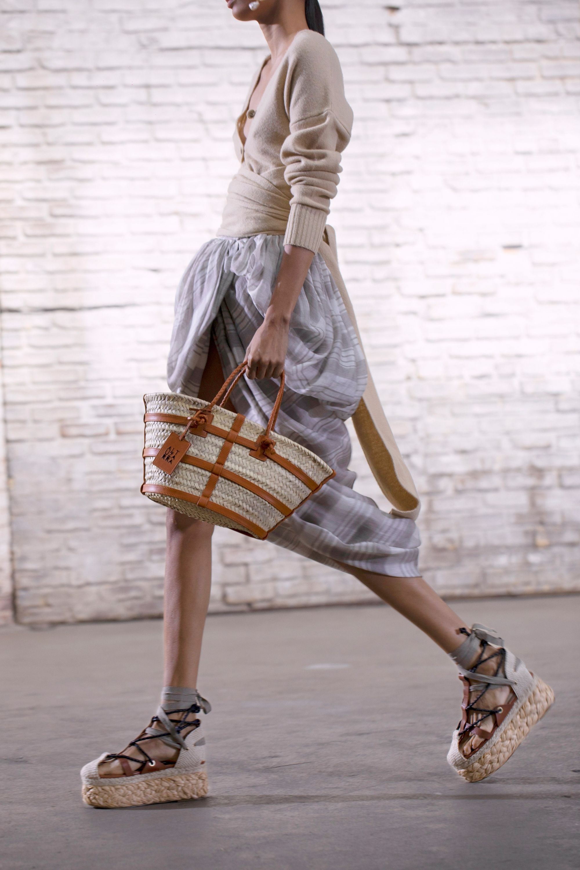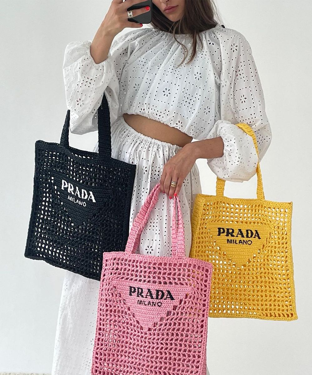 Eternamente presenti all’appello delle borse estive, per il mare e non, come insegnava Jane Birkin, le borse in paglia. Nate come sporte per cibo addosso agli animali da soma in Sicilia, diventate un simbolo dell’arte povera di quella regione, ad oggi hanno sfoggiato innumerevoli vesti. La veste che più le si addice è quella di speciale souvenir della meta scelta per le proprie vacanze, con sopra vari gingilli o ricami. Quest’anno si fa anche più city-style con dettagli in pelle, come la tracolla o la tasca esterna viste da Loewe e Chloè. Ma anche il modello tote bag può essere realizzato in paglia e lo dimostra Fendi, con il suo modello dai manici in plexiglass e il maxi logo ricamato. Ormai un best seller confermato la tote di Dior che porta con se un altro trend ovvero la tela, a cui cedono anche Valentino e Saint Laurent. Un'altra tote che lascia il segno da qualche estate è quella della linea On the go di Louis Vuitton, in vendita esclusivamente in mete come Portofino, Capri e Porto Cervo, a cui la borsa è dedicata.