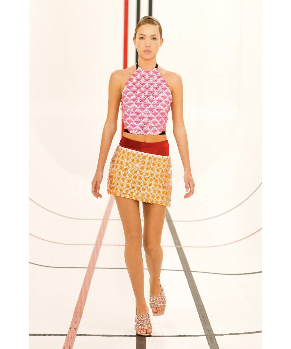 100% ethically made in Italy, questo brand di costumi da bagno sostiene l'economia locale e la sostenibilità. Dua ha indossato il suo modello più prezioso, un bikini con reggiseno a triangolo in nuance neon multicolor tempestato di strass che è diventato un modello cult di stagione.