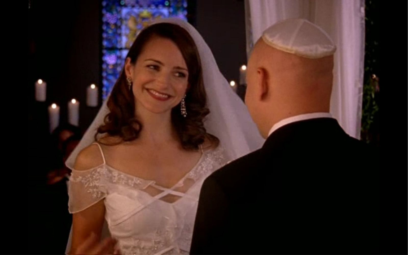 Nel nuovo millennio sale sul podio delle grandi sitcom The O.C., la teen series per eccellenza entrata da poco anche nella gallery di Netflix – organizzate la maratona se ancora non l’avete fatto. E per chi come noi ha amato le vicende dei ragazzi di The Orange County dal primo sguardo tra Ryan e Marissa, non può non ricordare il gran finale, quando Summer Roberts avanza verso l’altare per legarsi a vita all’unico e inimitabile Seth Cohen. E tra singhiozzi e occhi lucidi – sfiderei chiunque a non commuoversi nemmeno un po’ – la bella Summer ci ha fatto sognare con un abito stile impero con fiocco in vita. Niente velo, solo un bellissimo bouquet bianco… semplicemente perfetto.